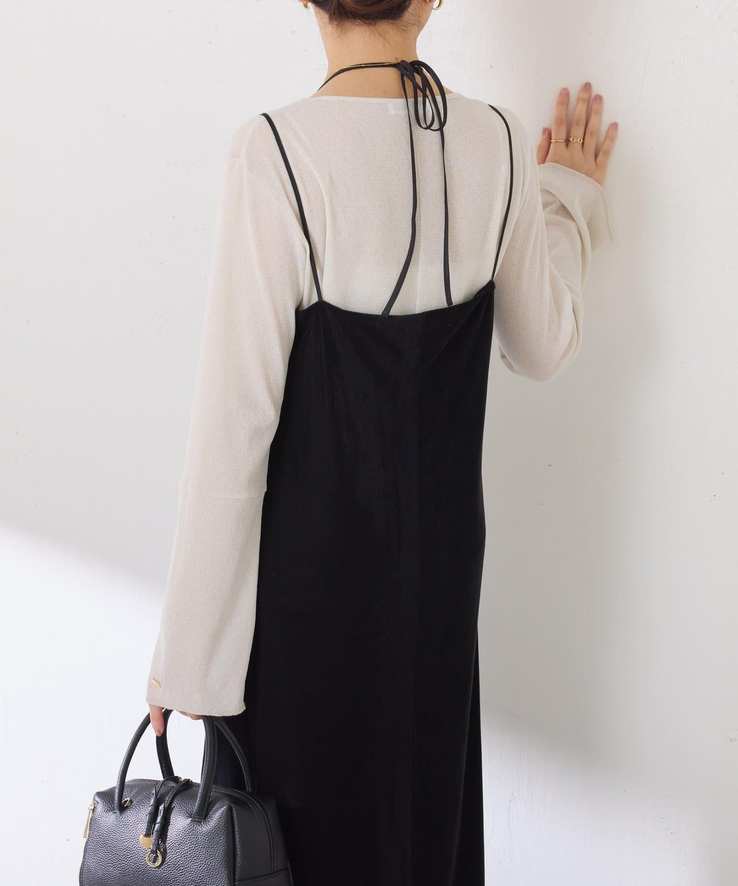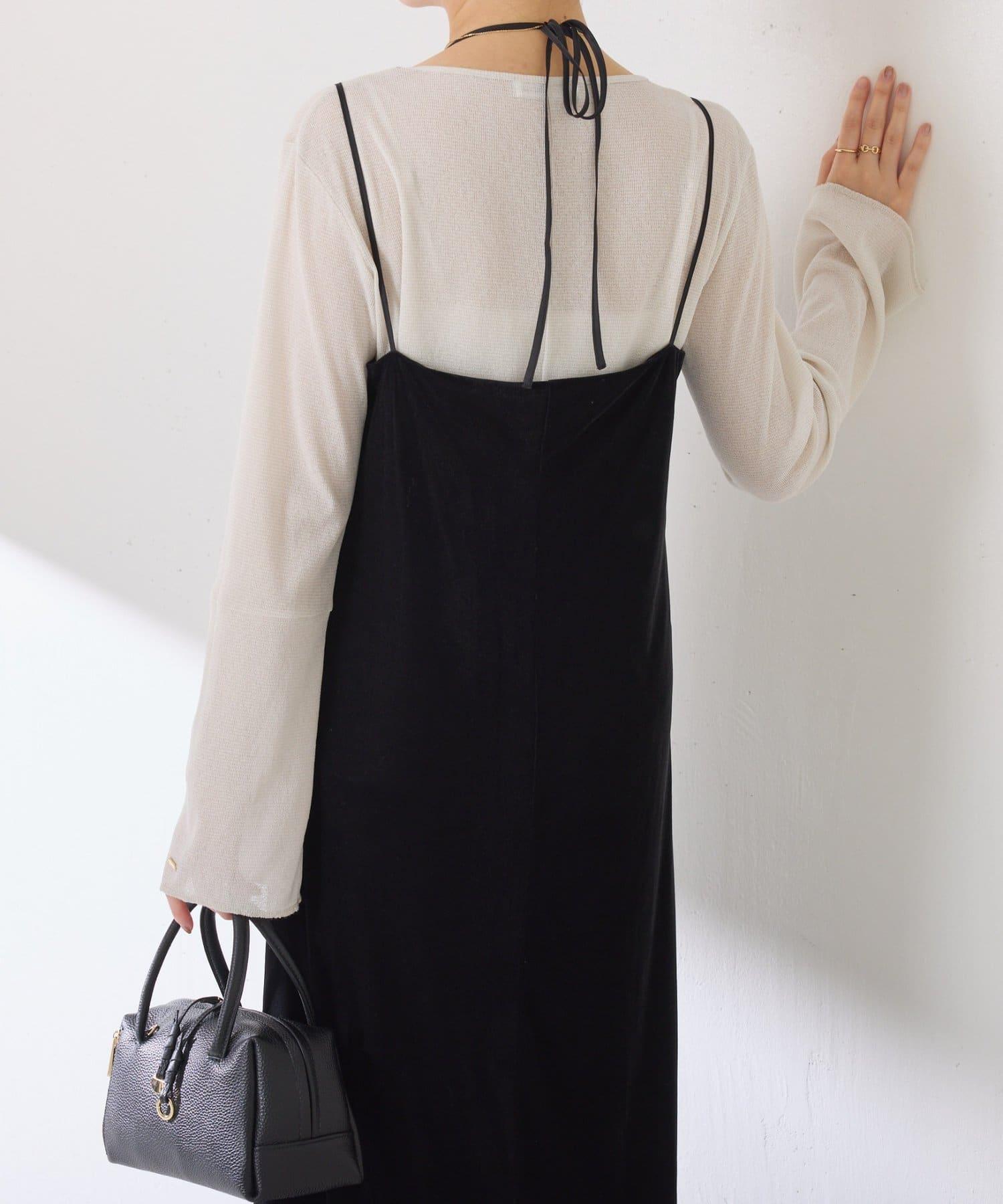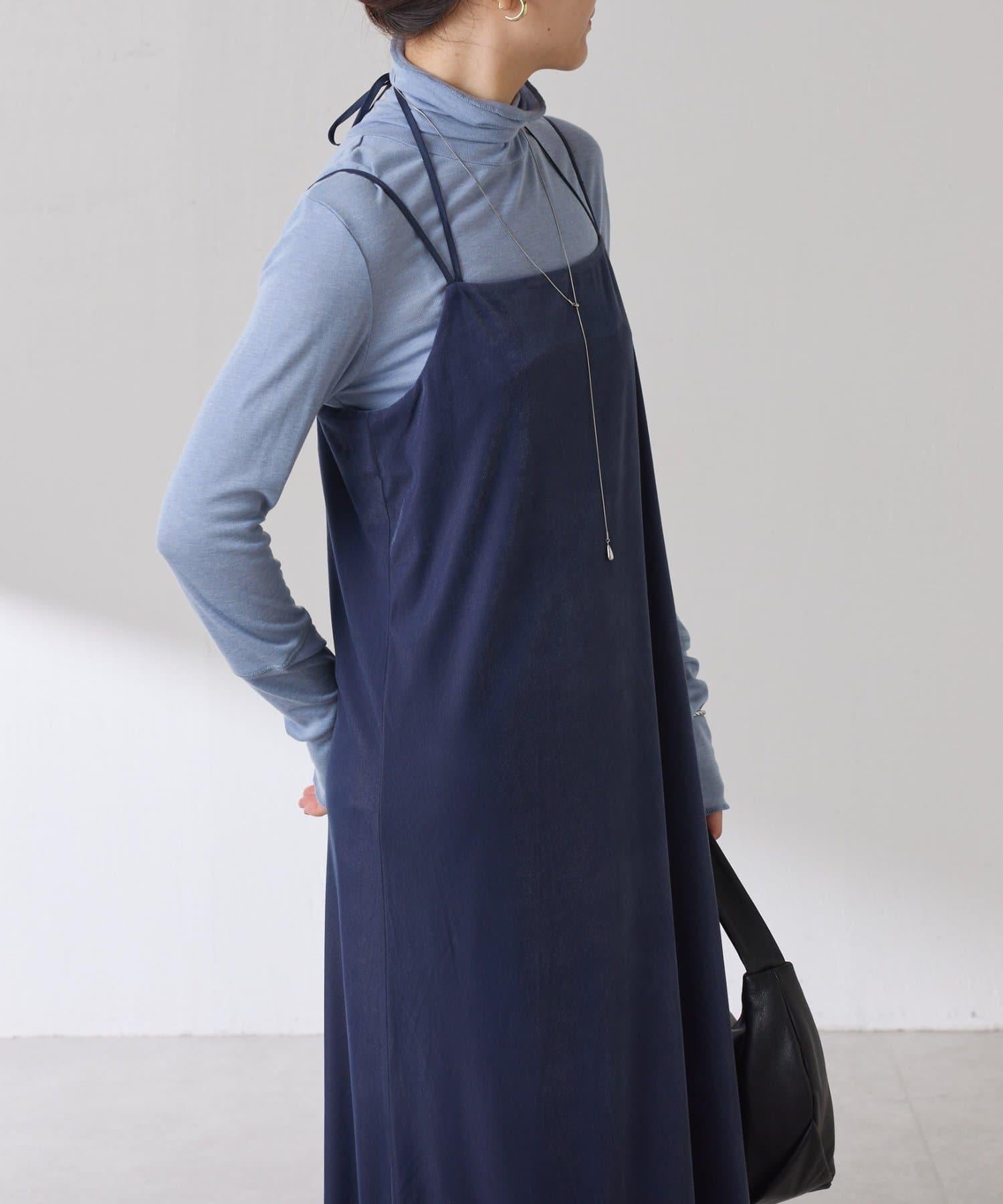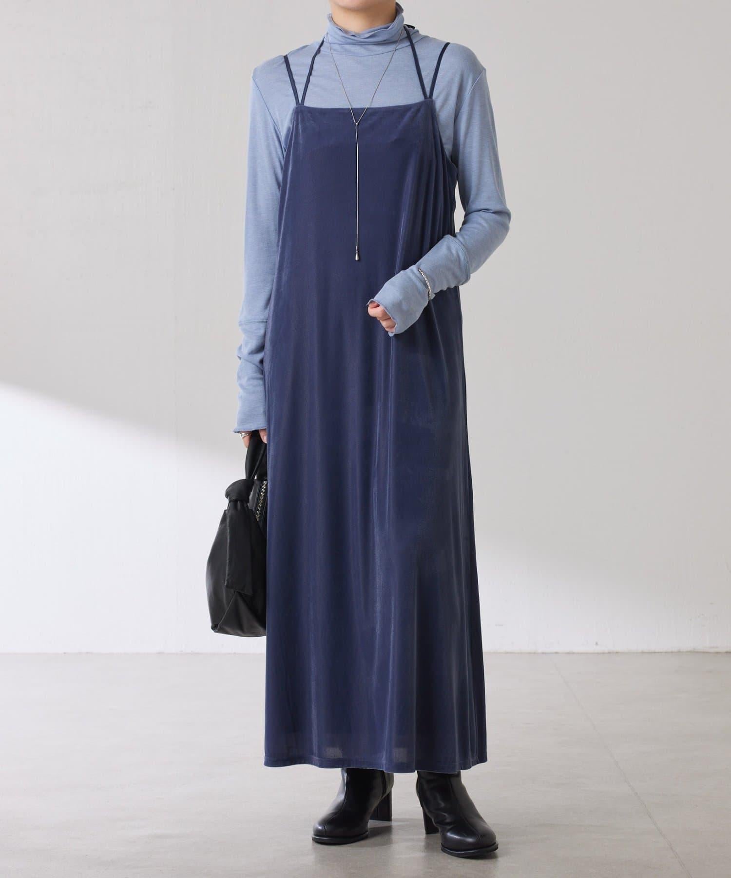 這款天鵝絨吊帶連衣裙採用清新的吊帶設計。