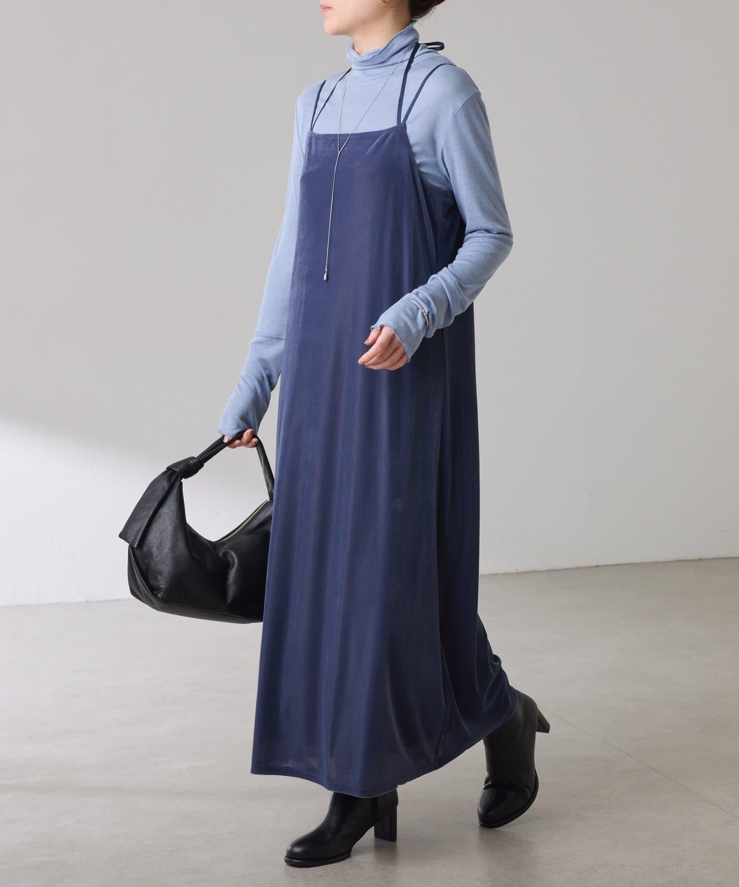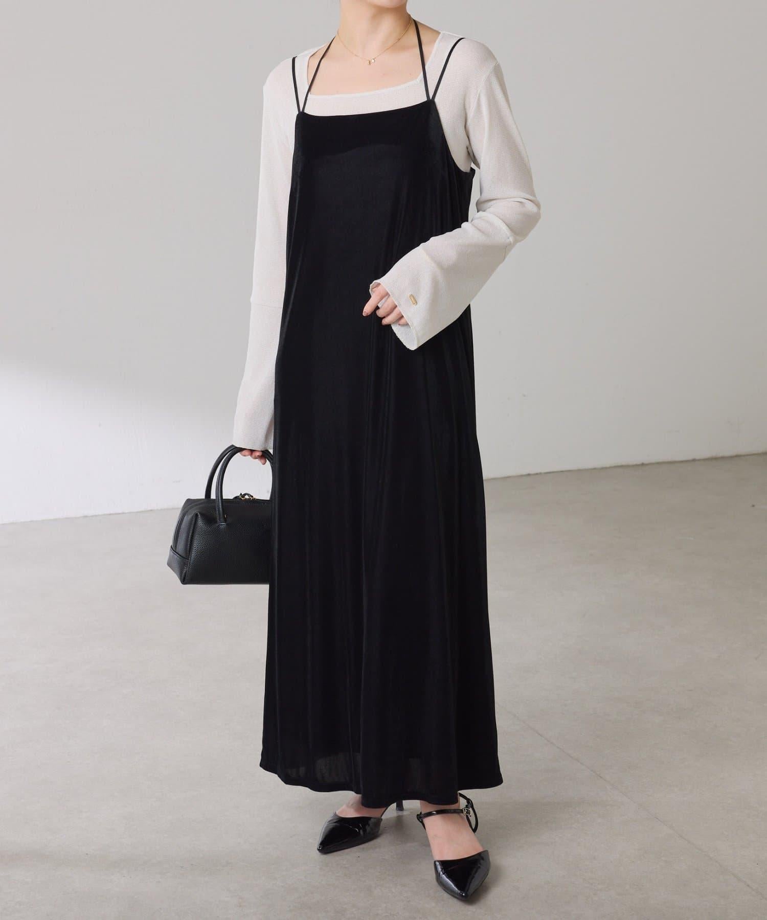肩帶的設計使這款絲絨吊帶連衣裙清新脫俗,盡顯女性的柔美與奢華。