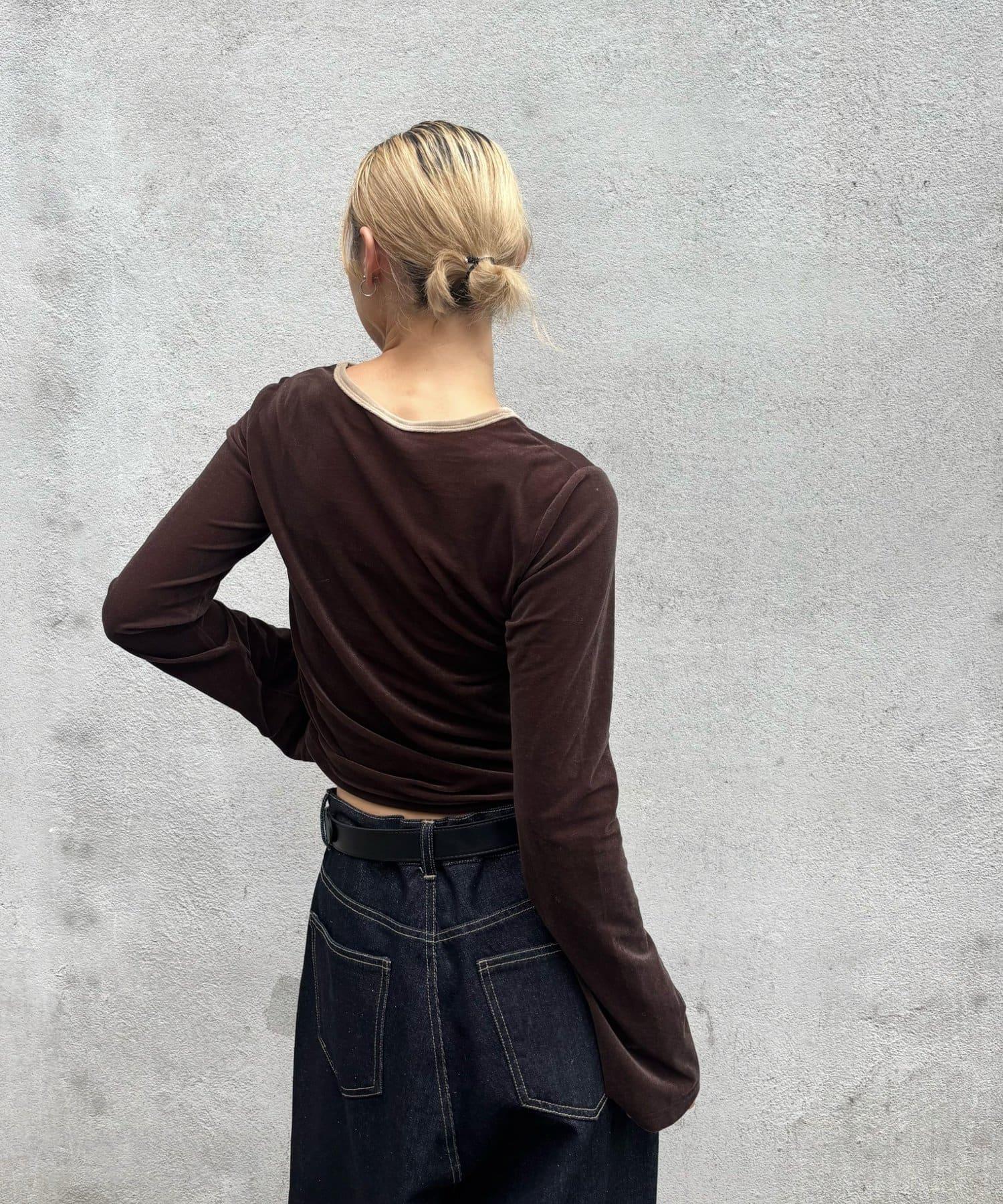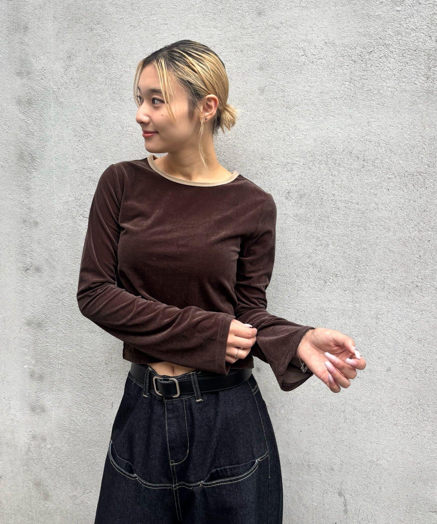天鵝絨材質的 Linger 上衣,閃耀著優雅的光澤。