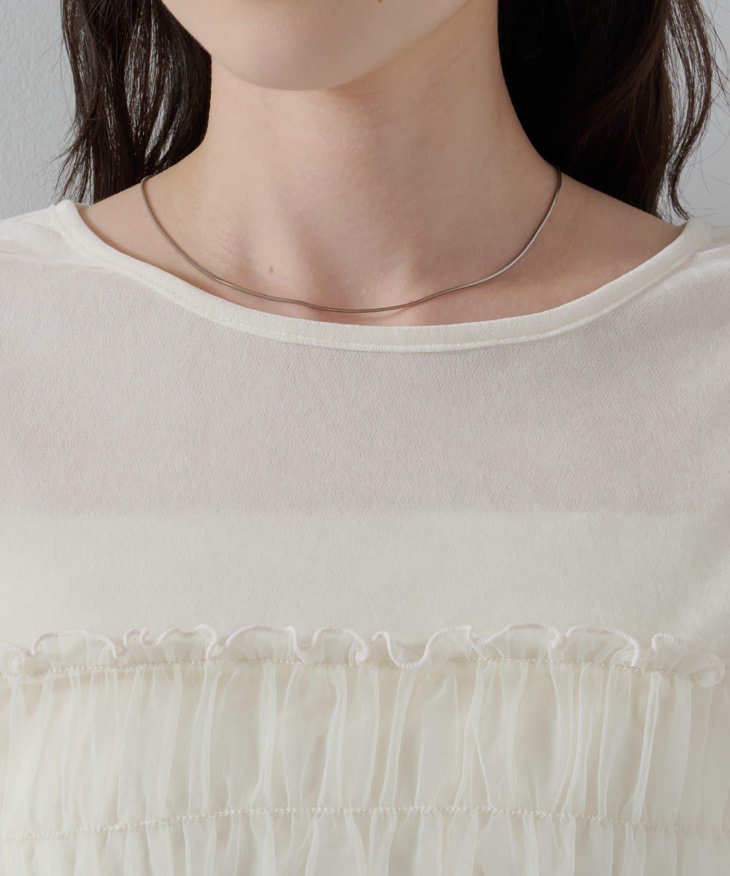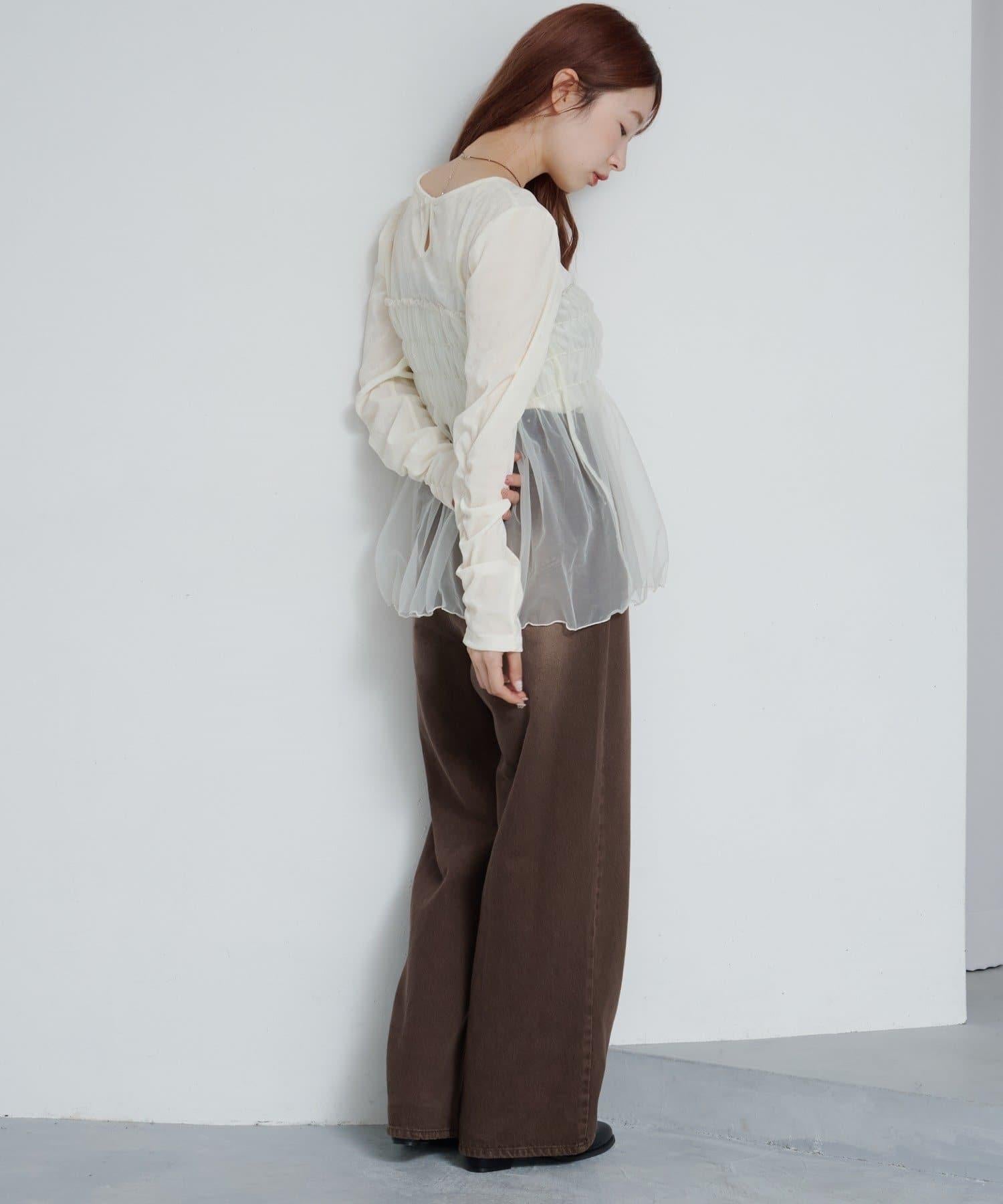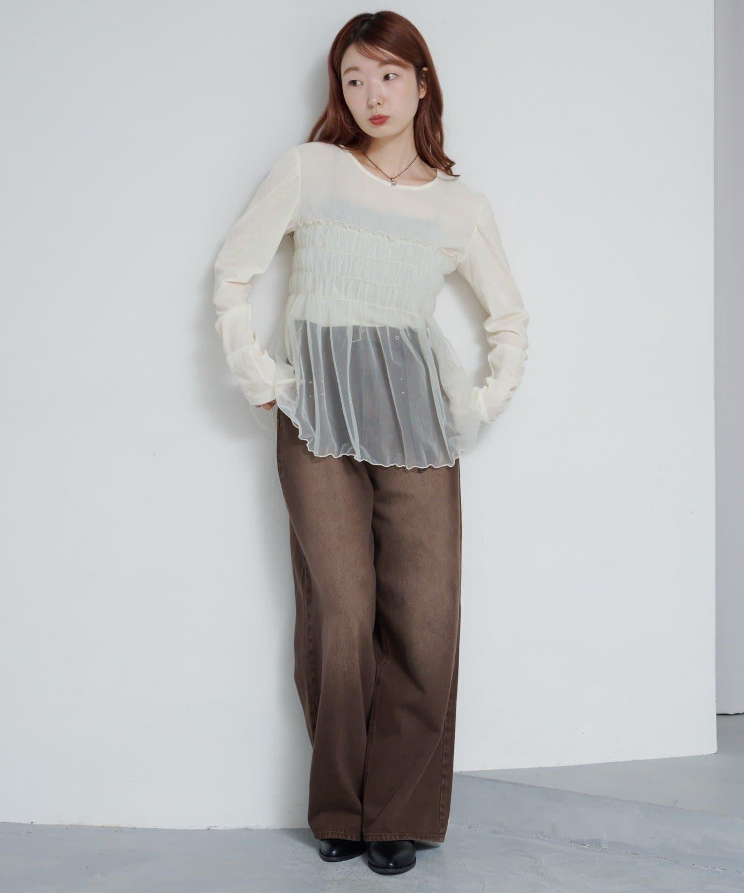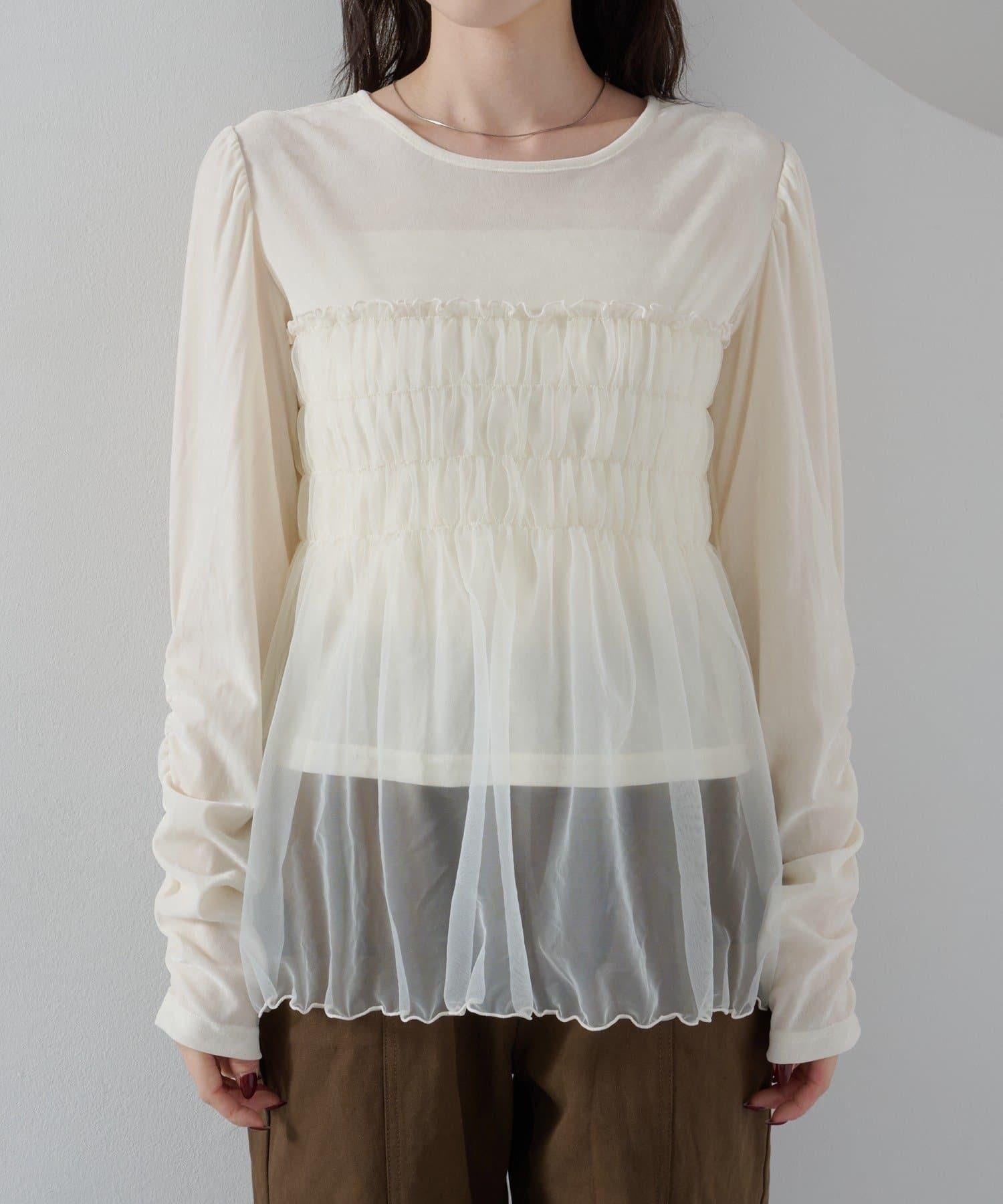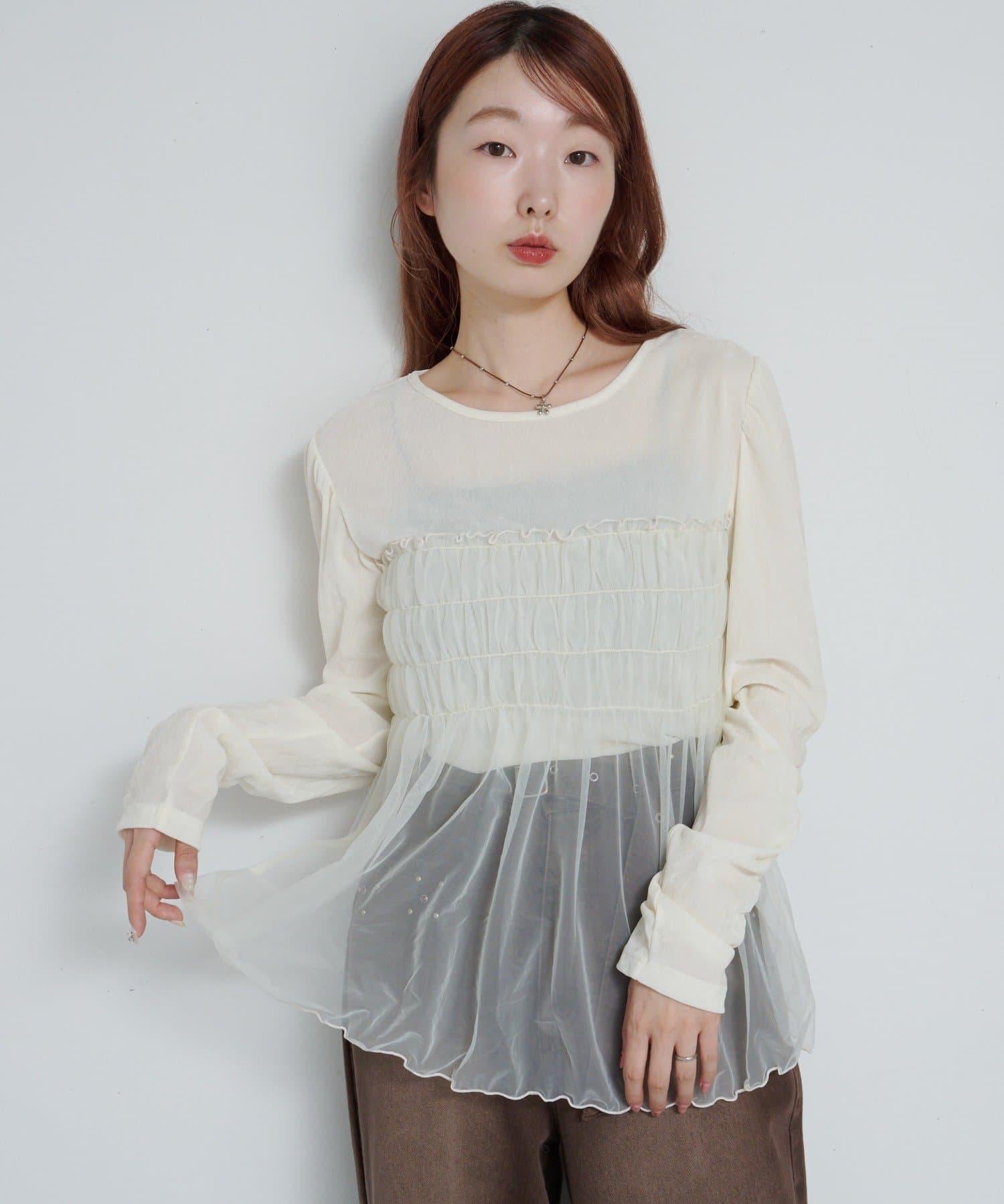 這款迷人的上衣由閃亮的絲絨面料和柔軟透明的薄紗對接而成。