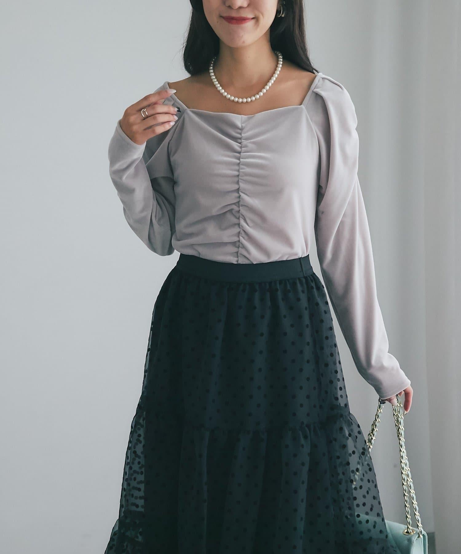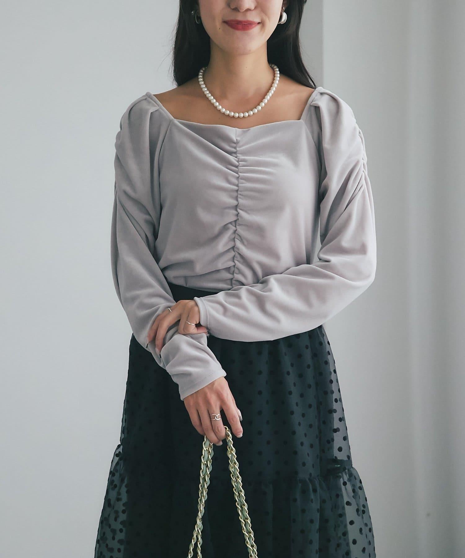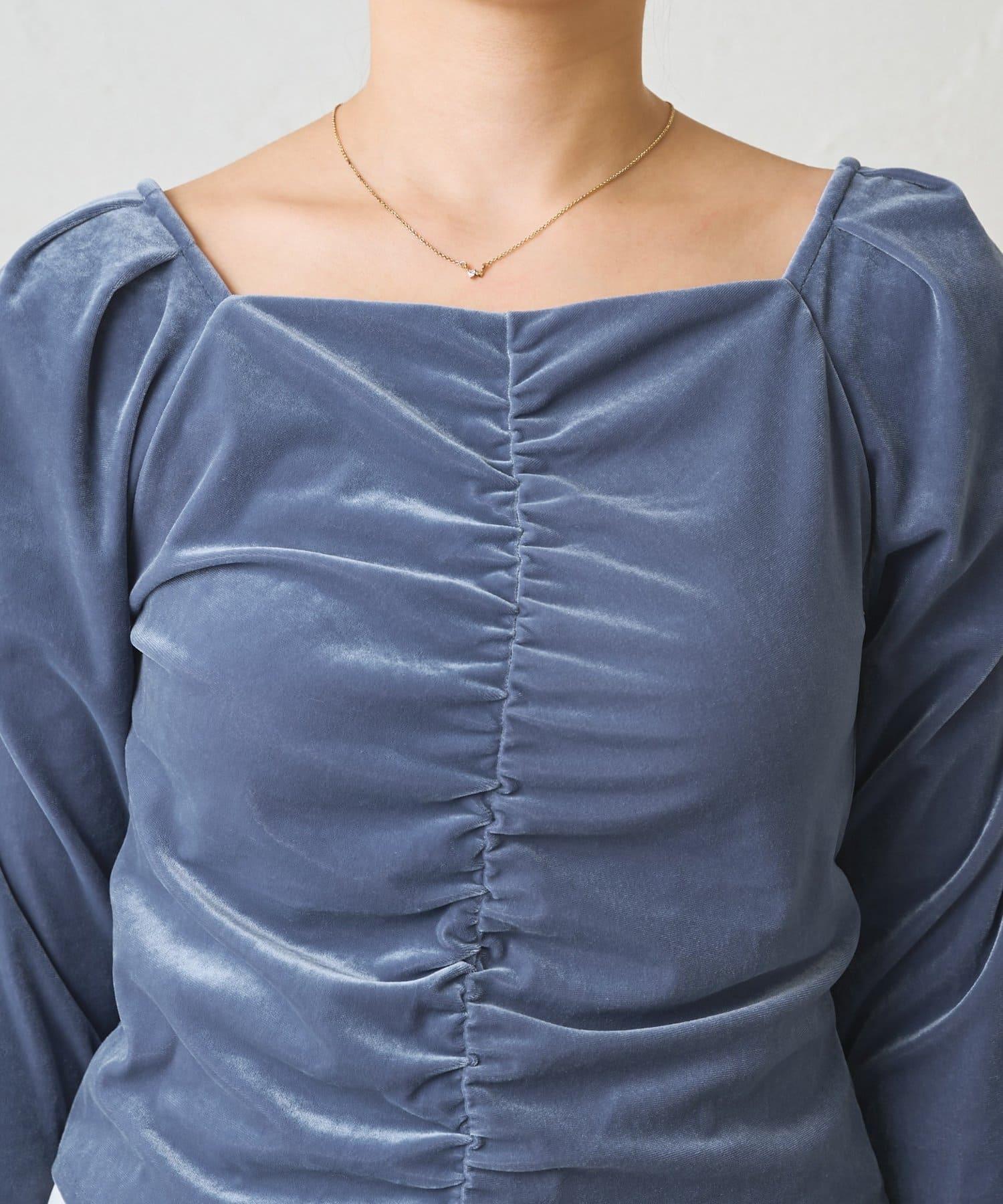 方形領口和褶皺細節讓肩部看起來更美,給臉部周圍留下乾淨利落的印象。