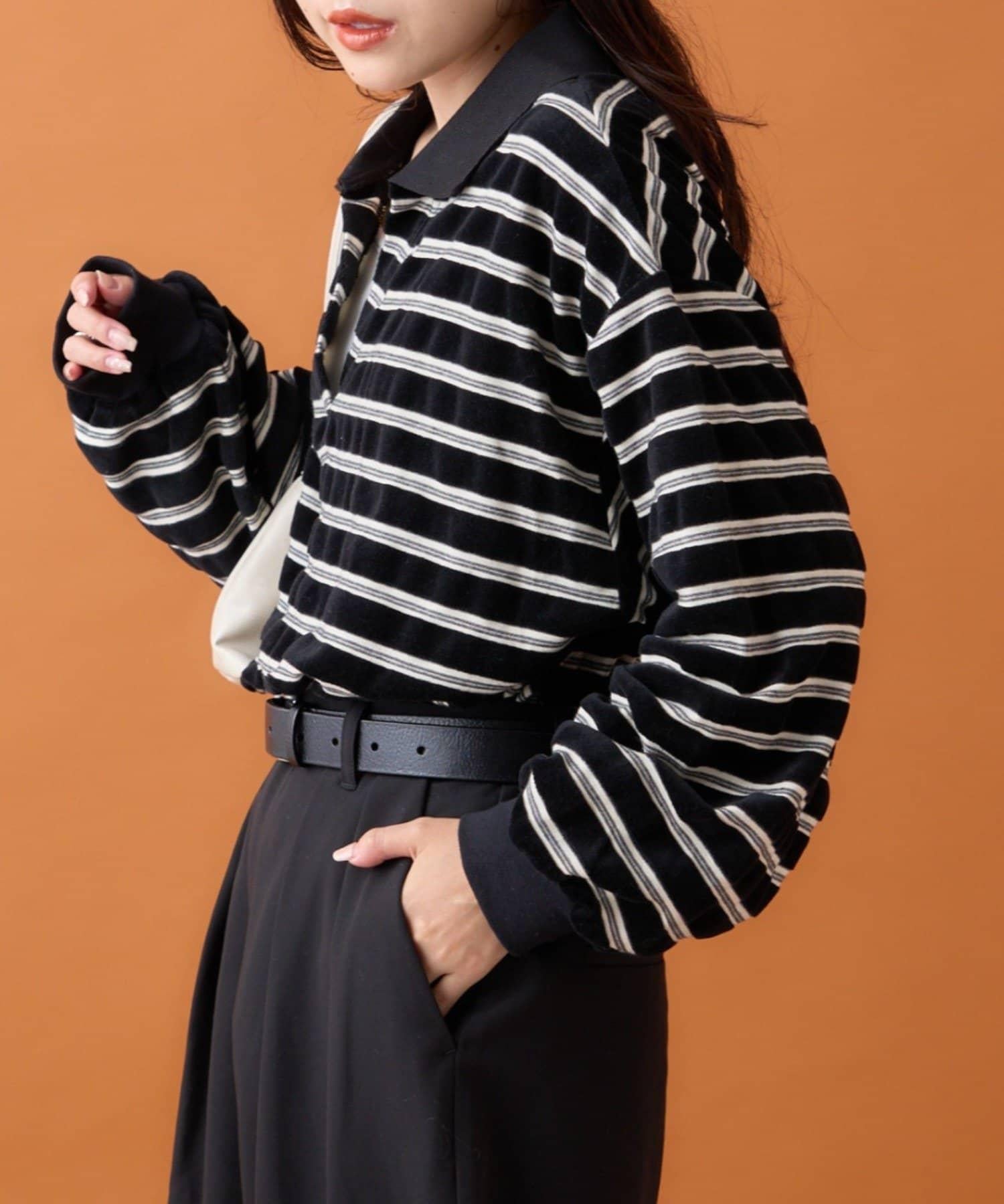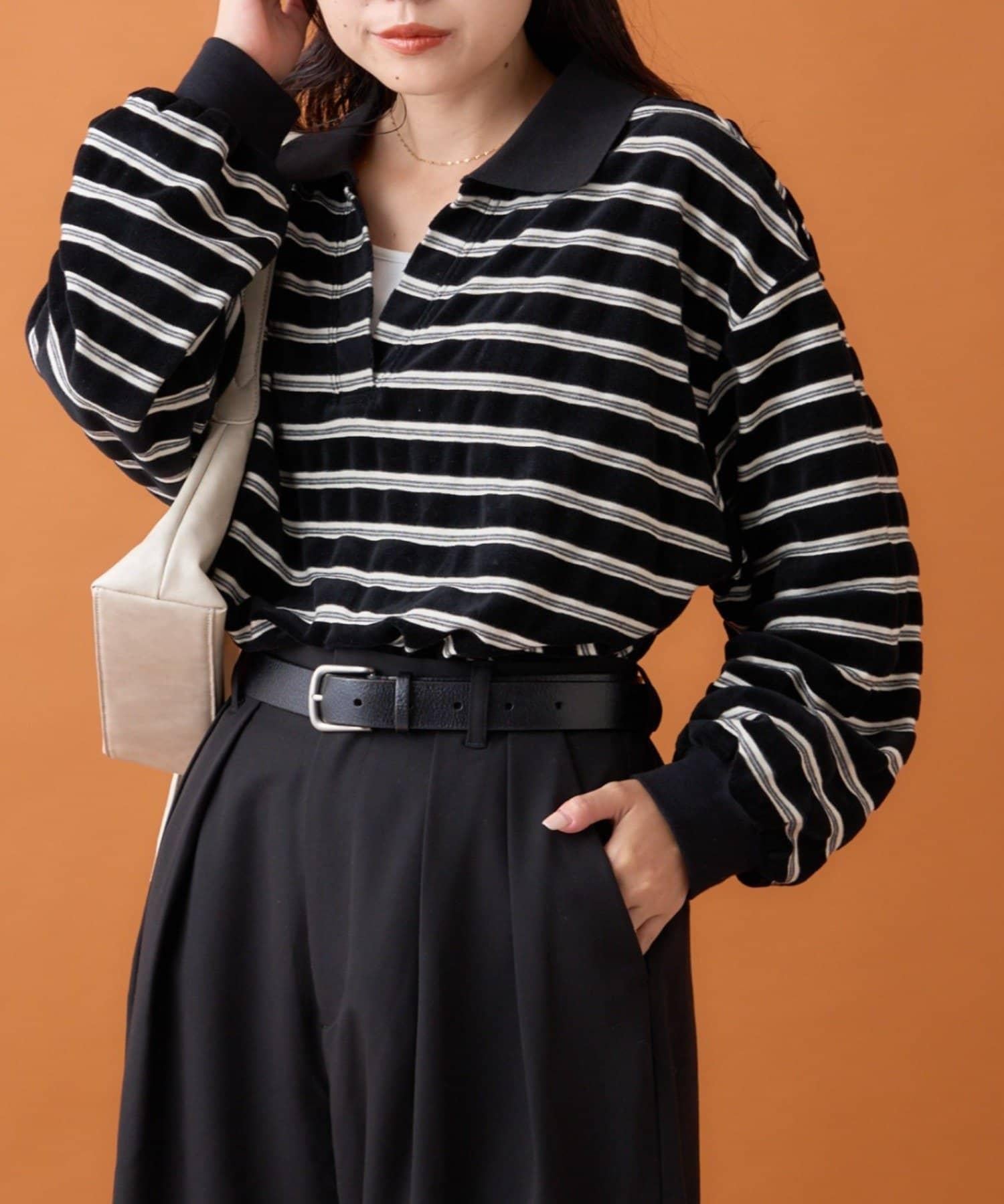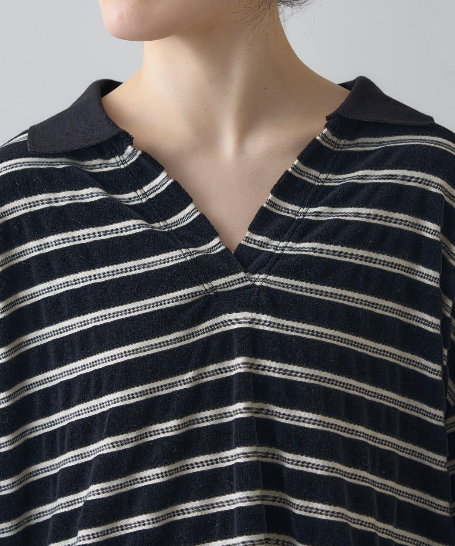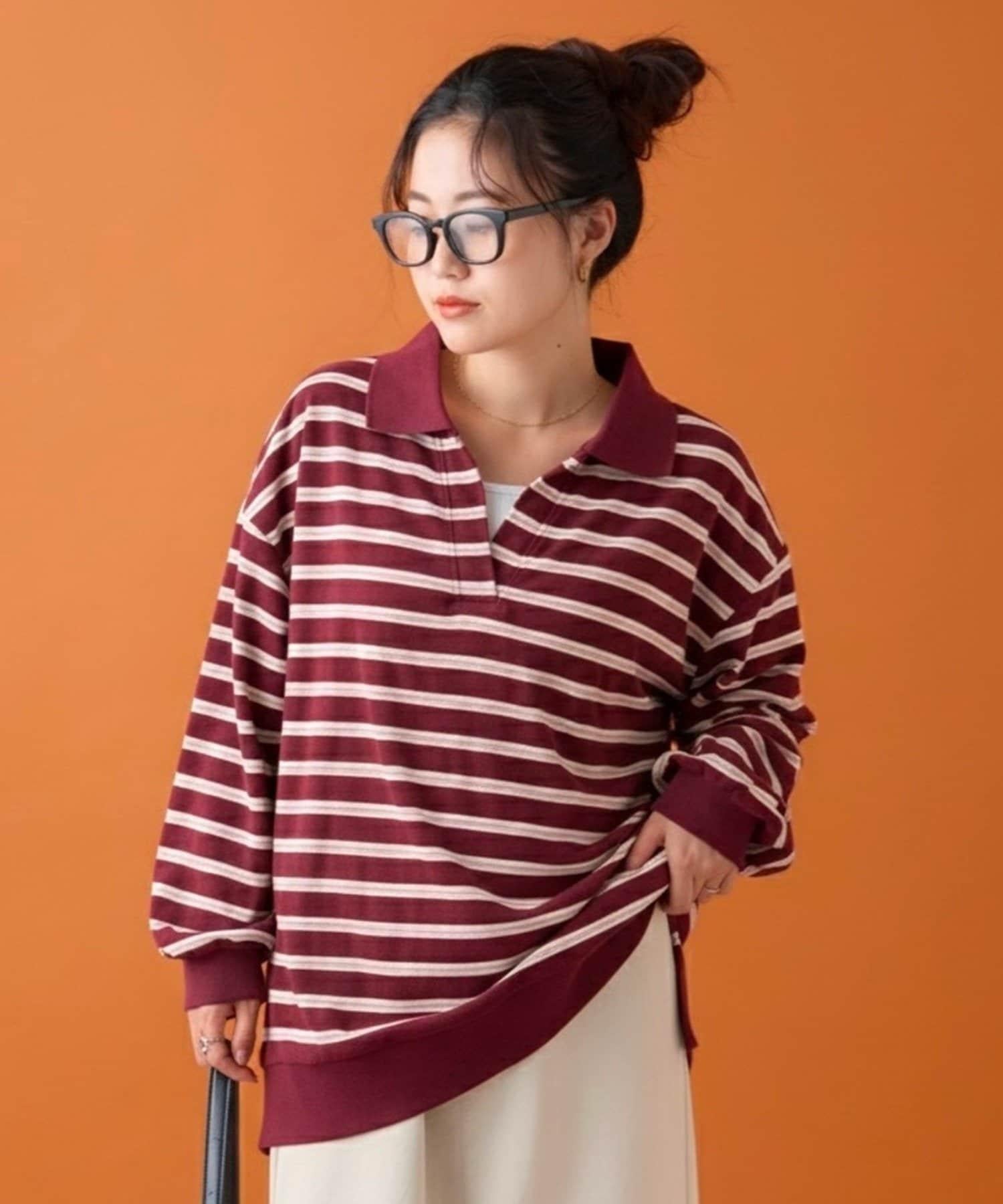 隨機鑲邊 polo 上衣,採用船長設計,寬鬆舒適。