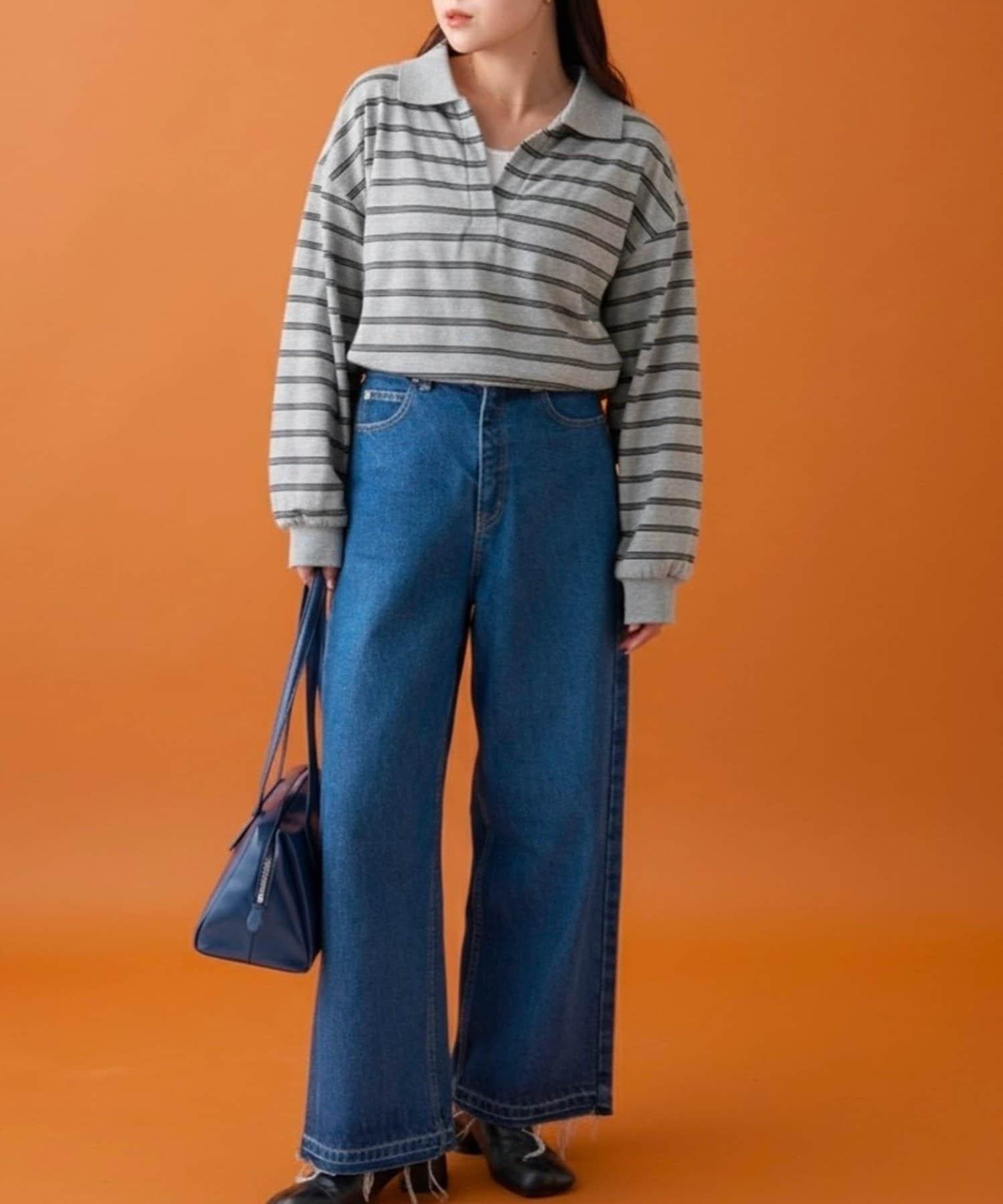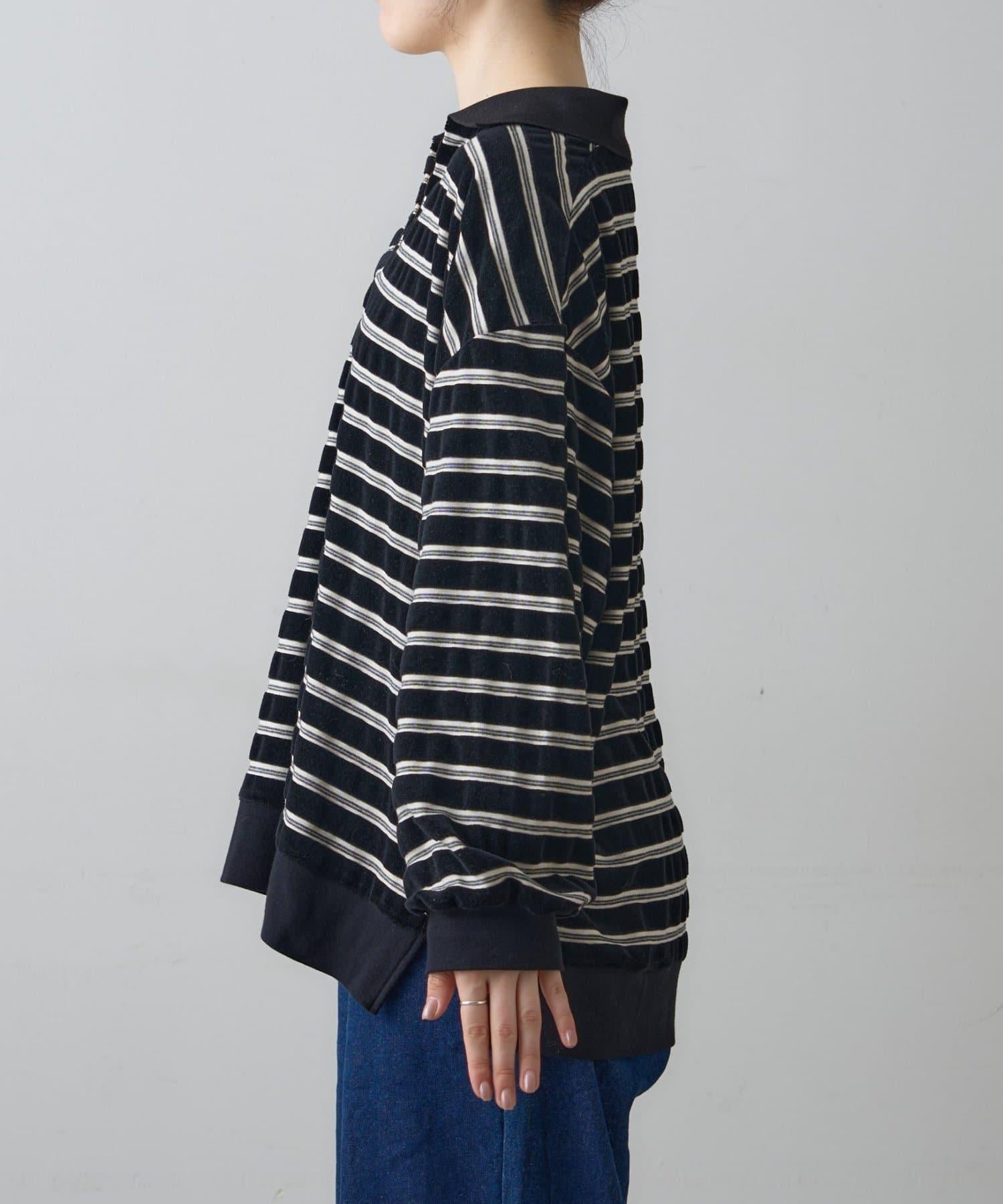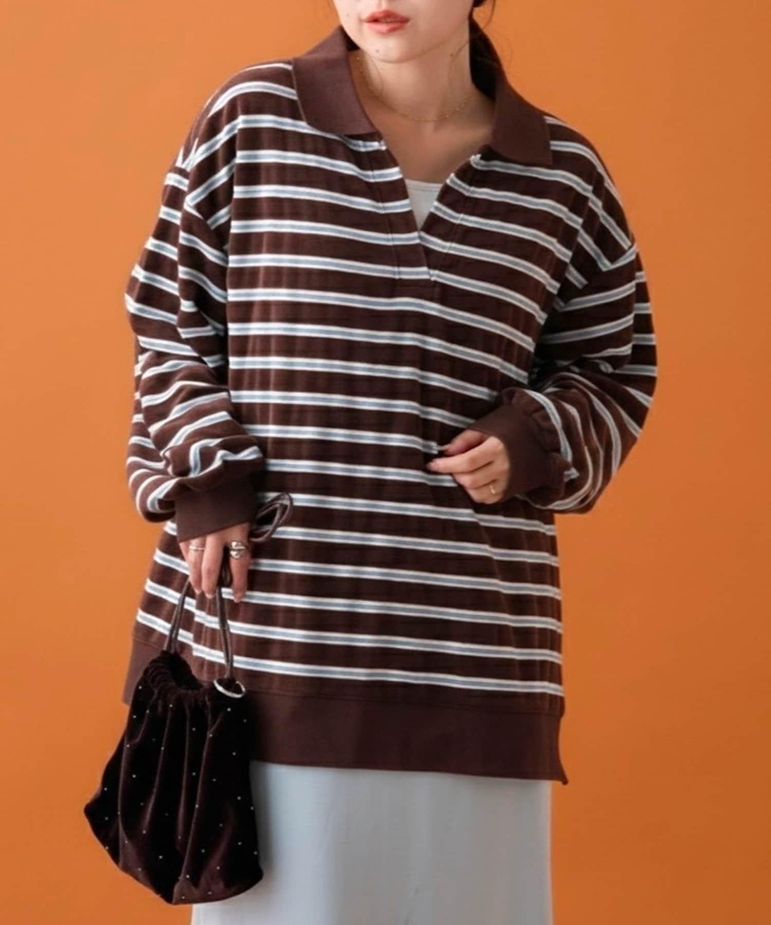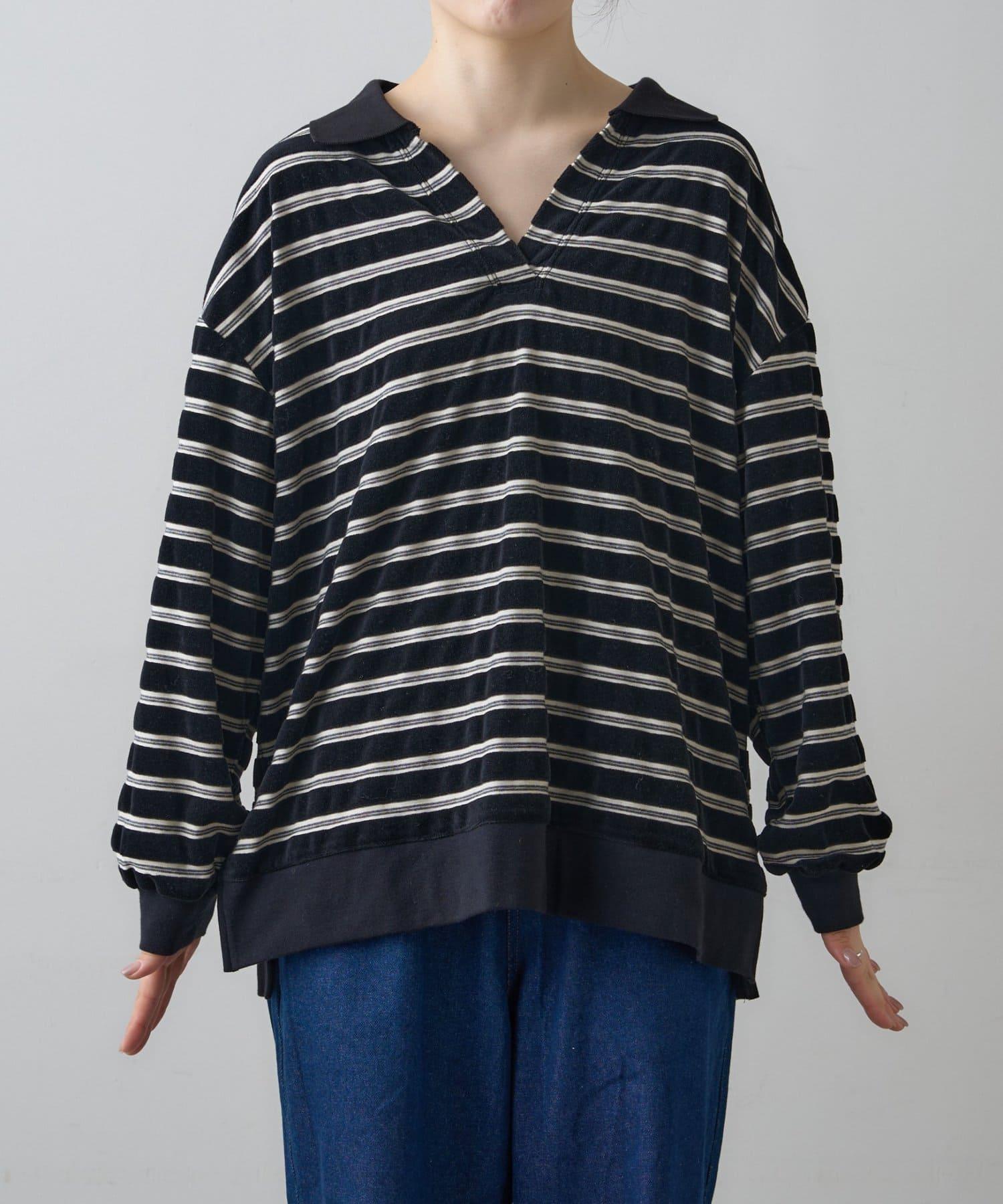 隨機鑲邊 polo 上衣,採用船長設計,寬鬆舒適。