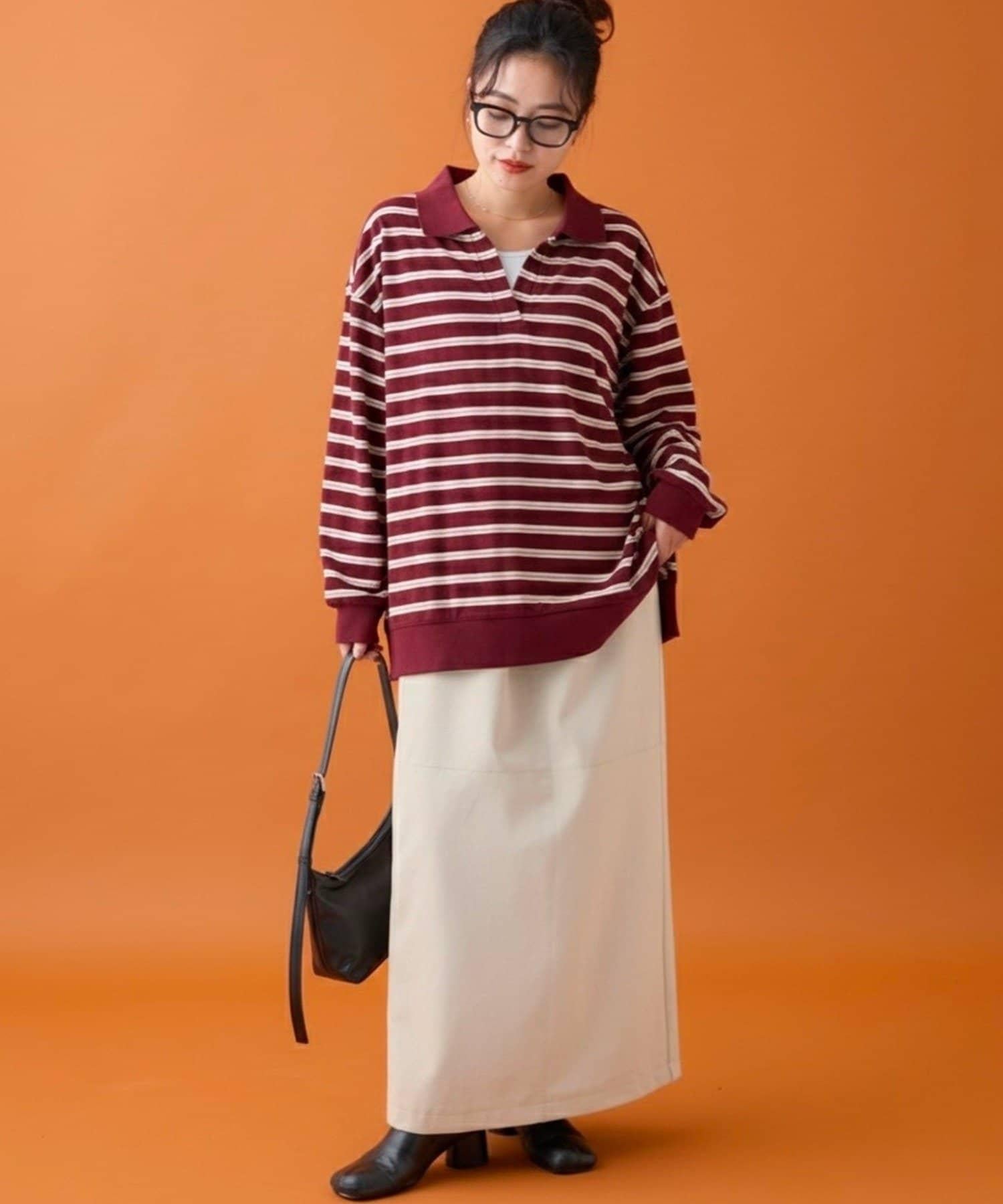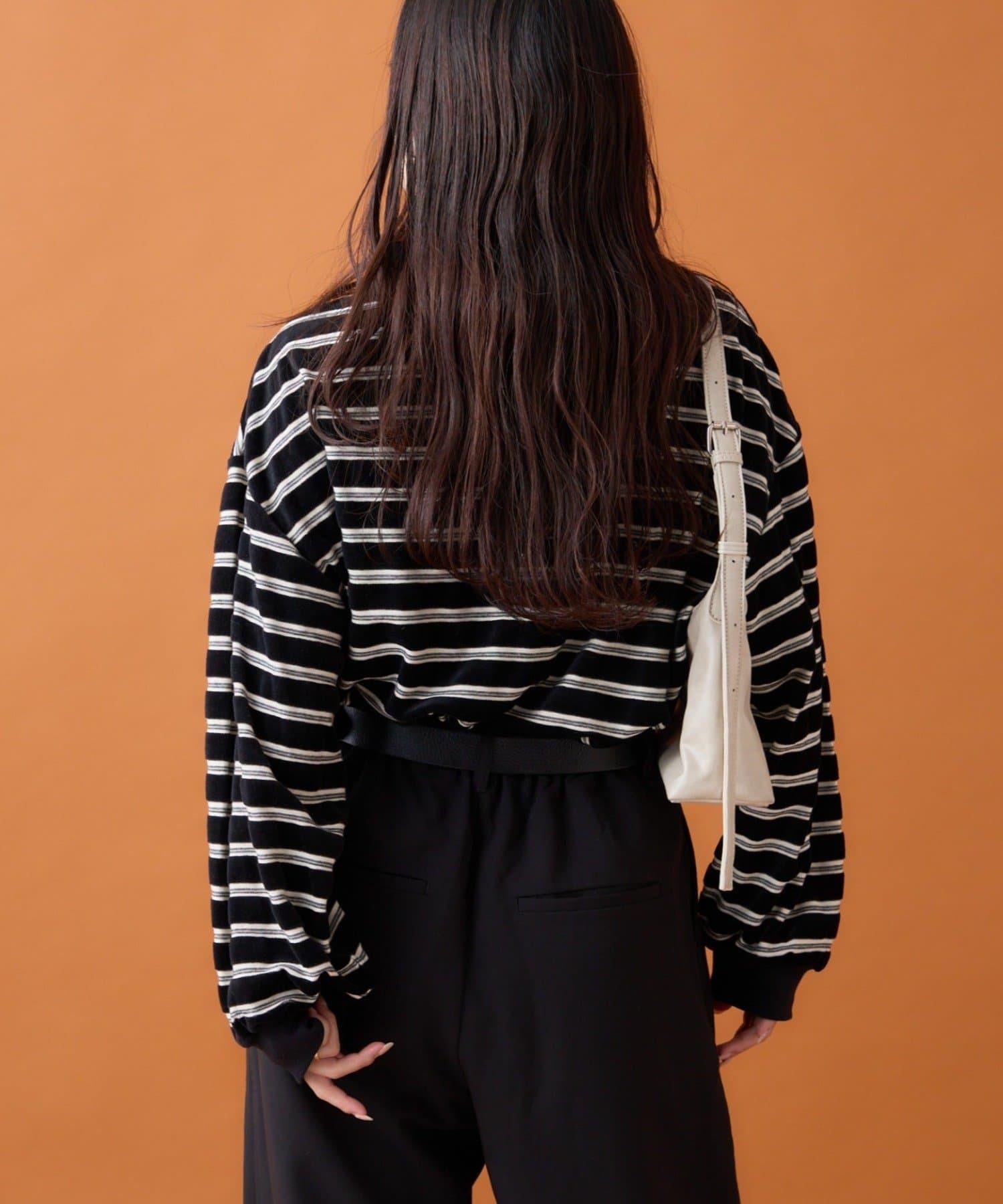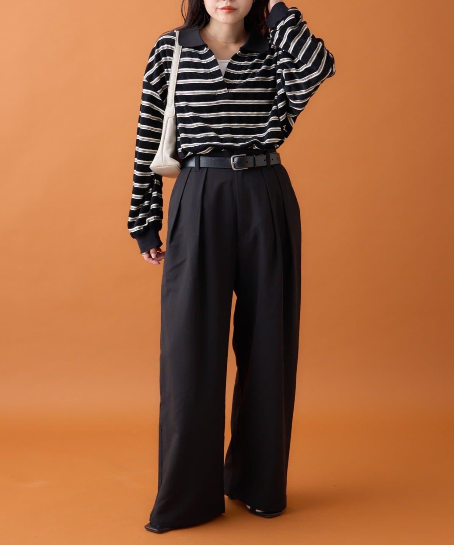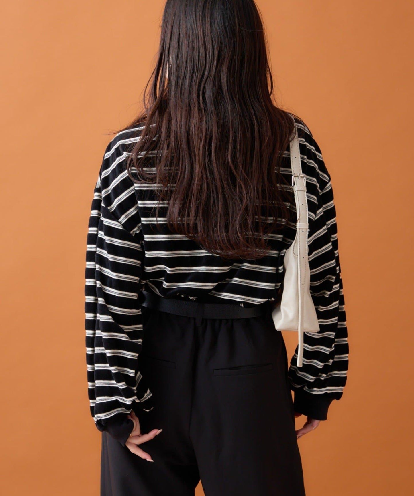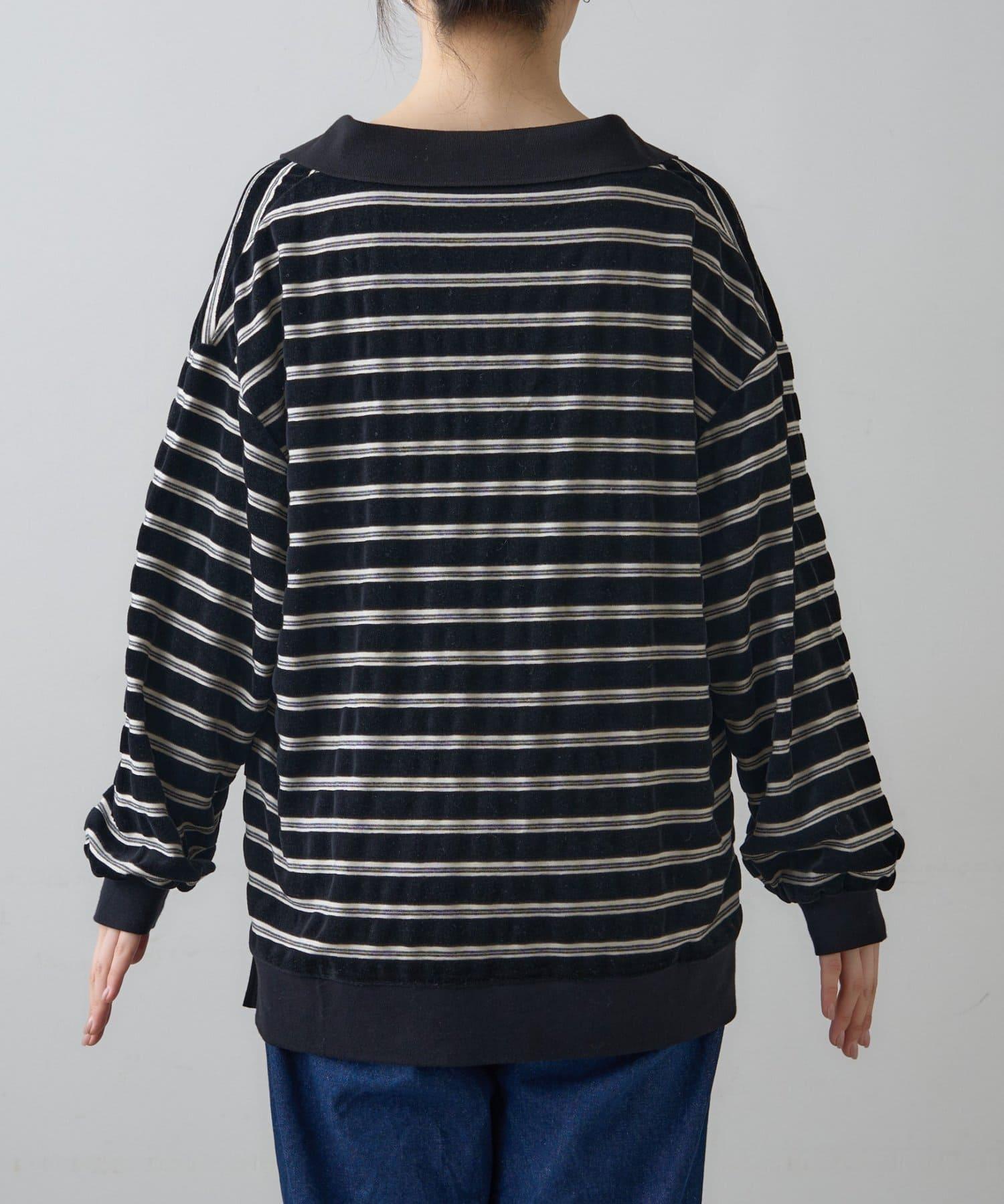 隨機鑲邊 polo 上衣,採用船長設計,寬鬆舒適。