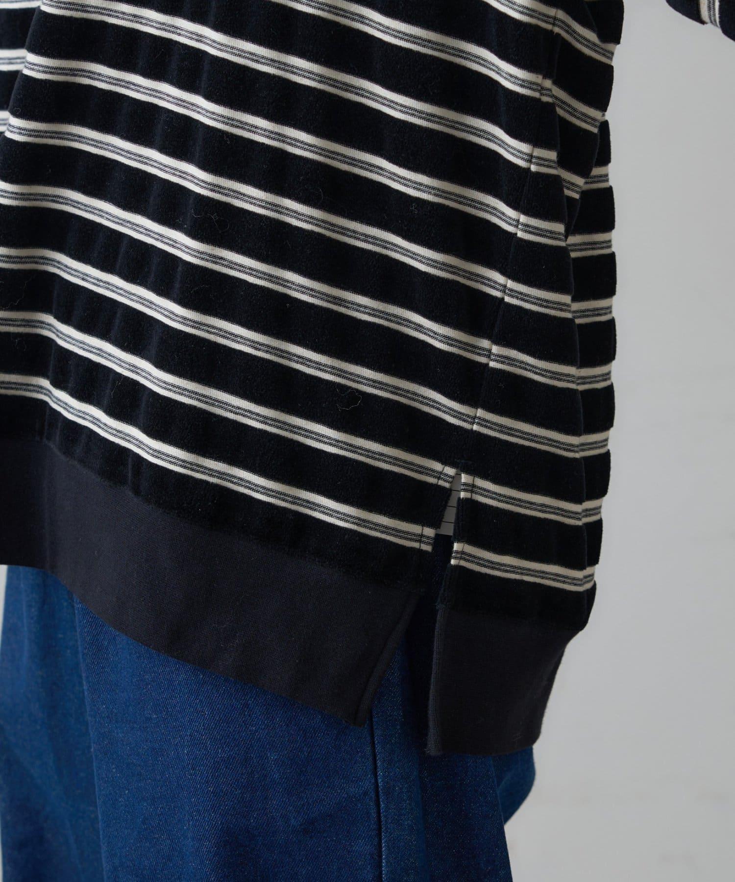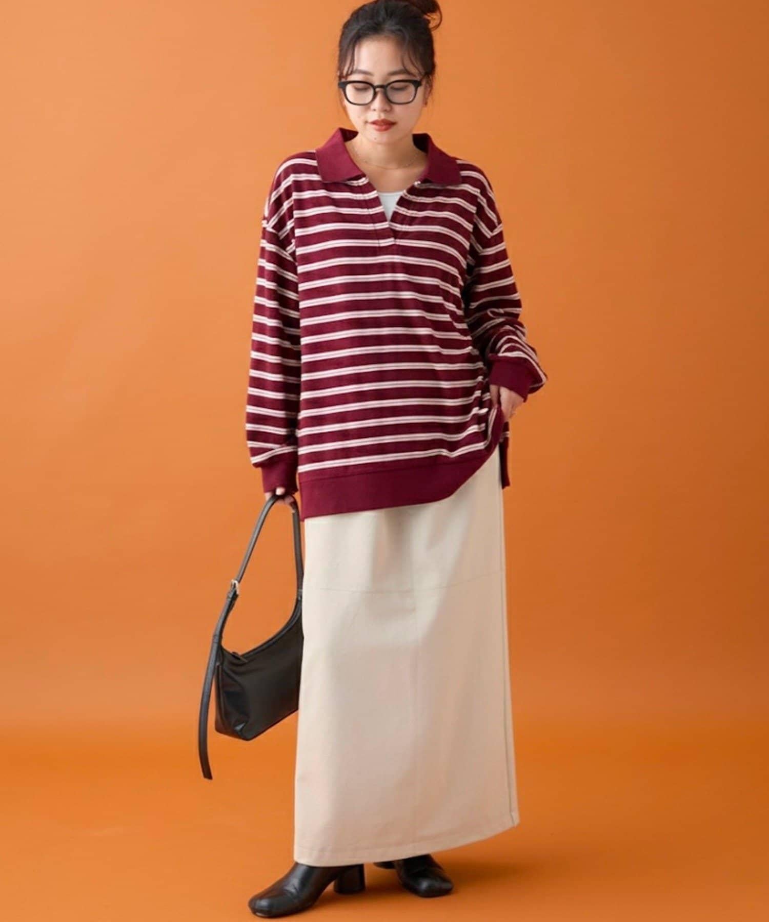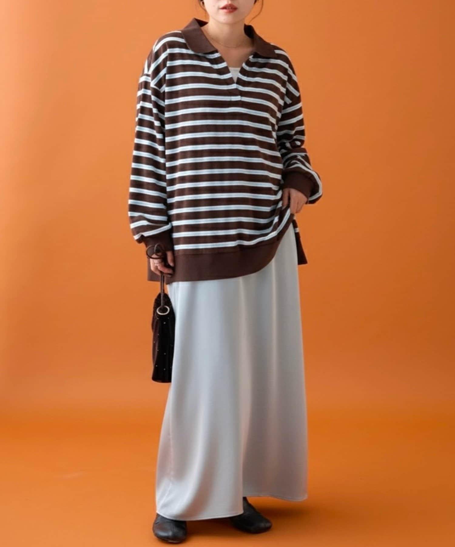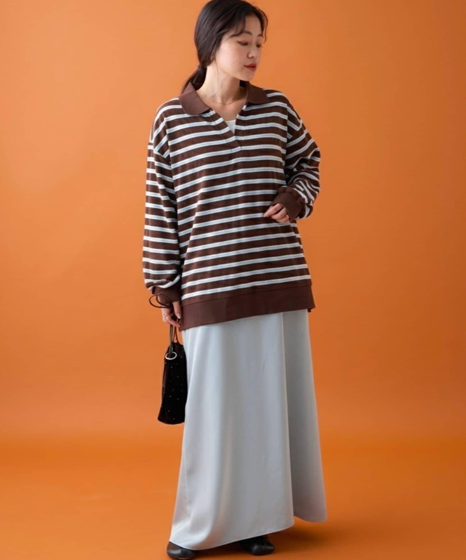 隨機鑲邊 polo 上衣,採用船長設計,寬鬆舒適。