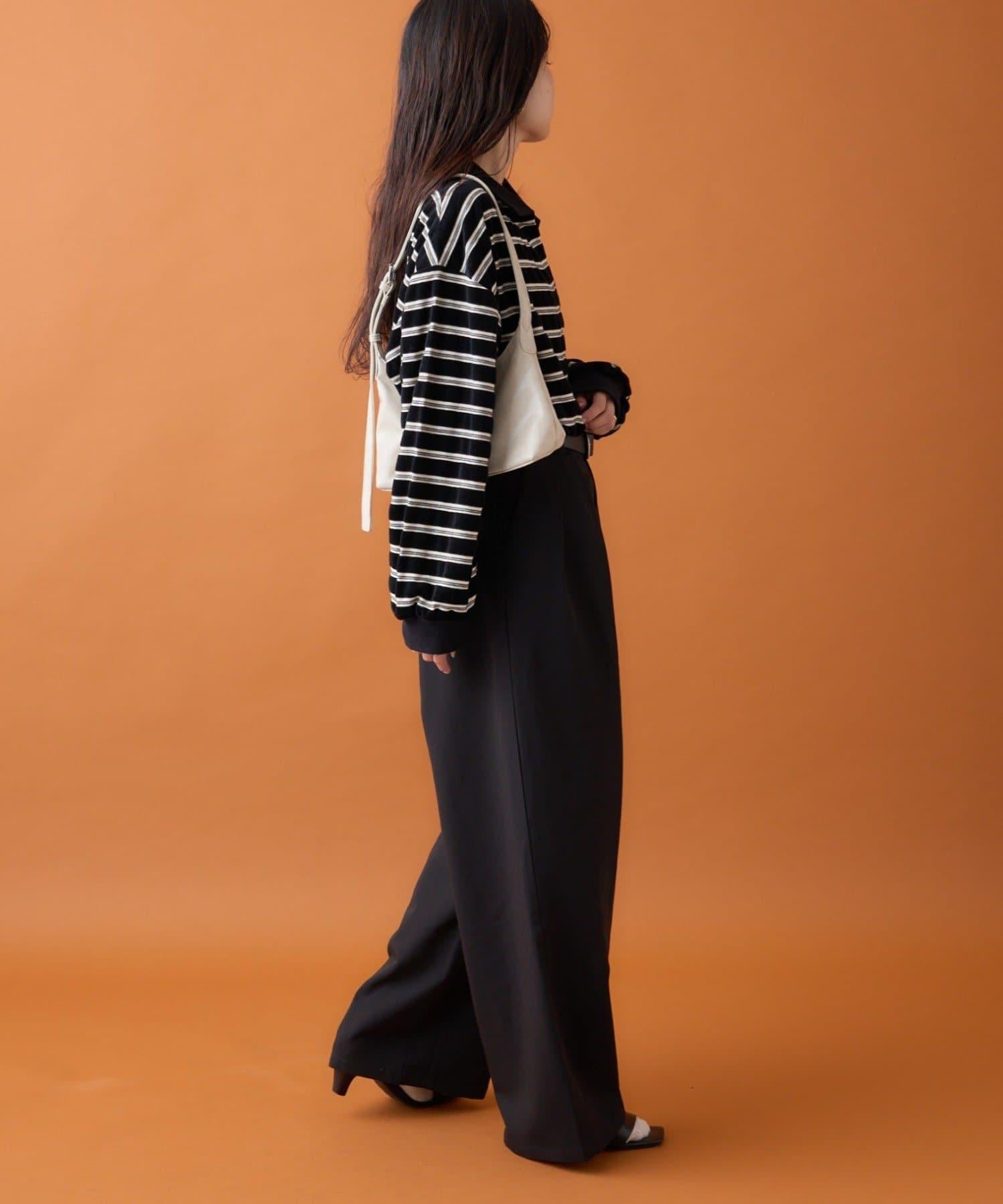 袖口、下襬和領口均採用單一顏色,使整體造型更加緊湊,給人一種利落的感覺。