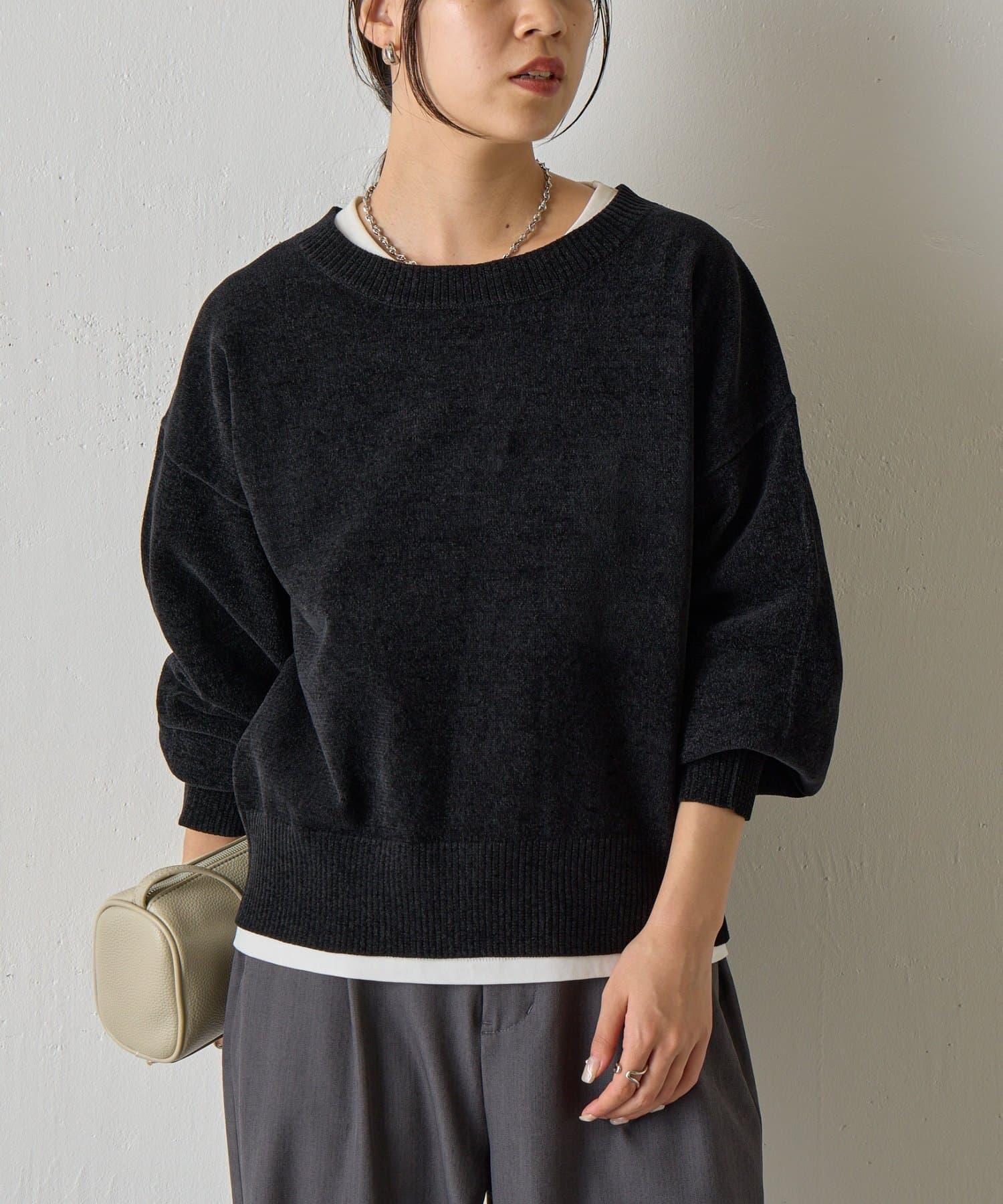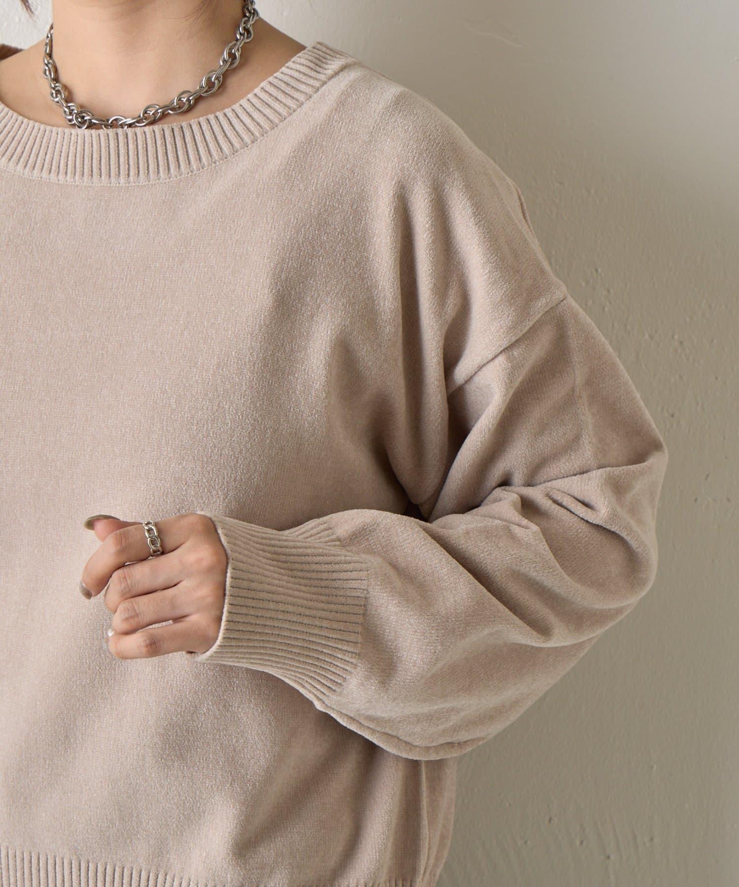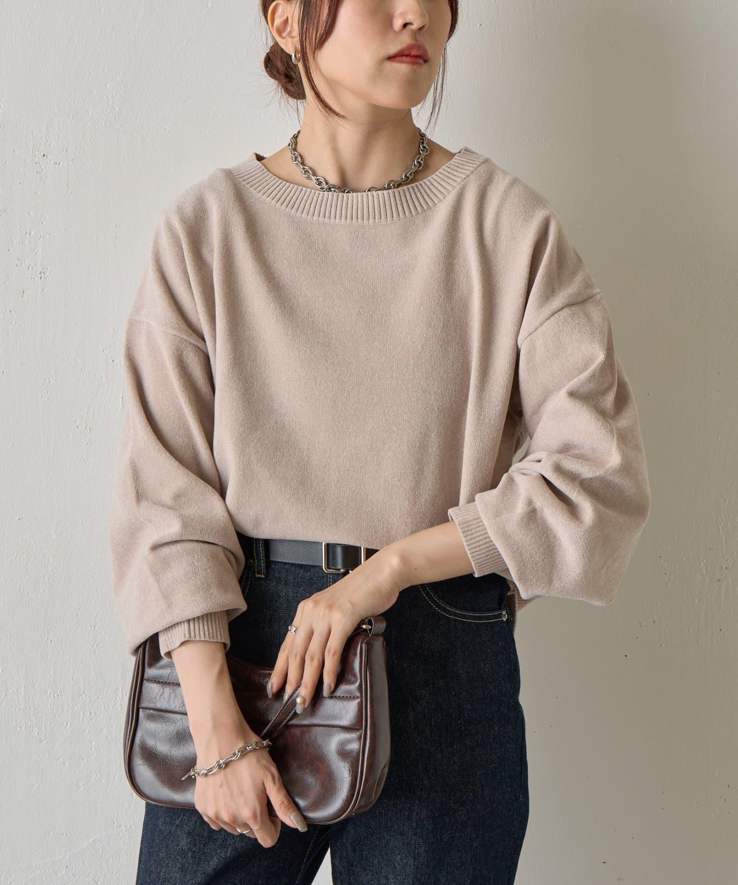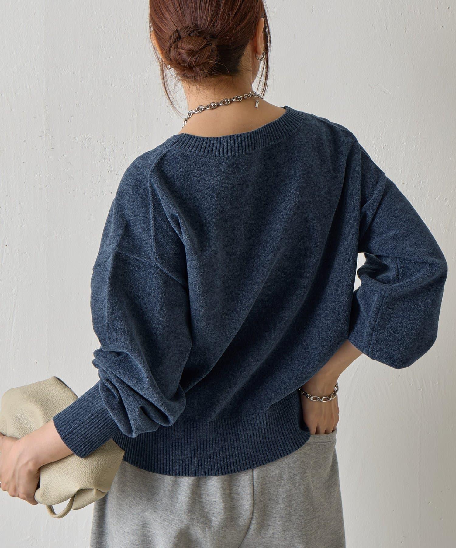 寬鬆針織,光澤迷人,手感柔軟] 這款套頭衫採用絲絨編織,光澤柔滑,手感蓬鬆。