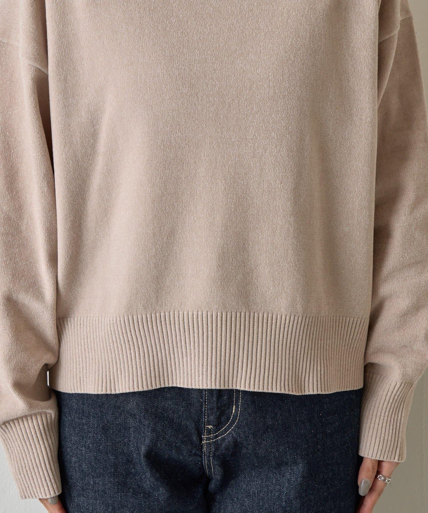這款套頭衫採用絲絨編織,光澤柔滑,觸感蓬鬆。