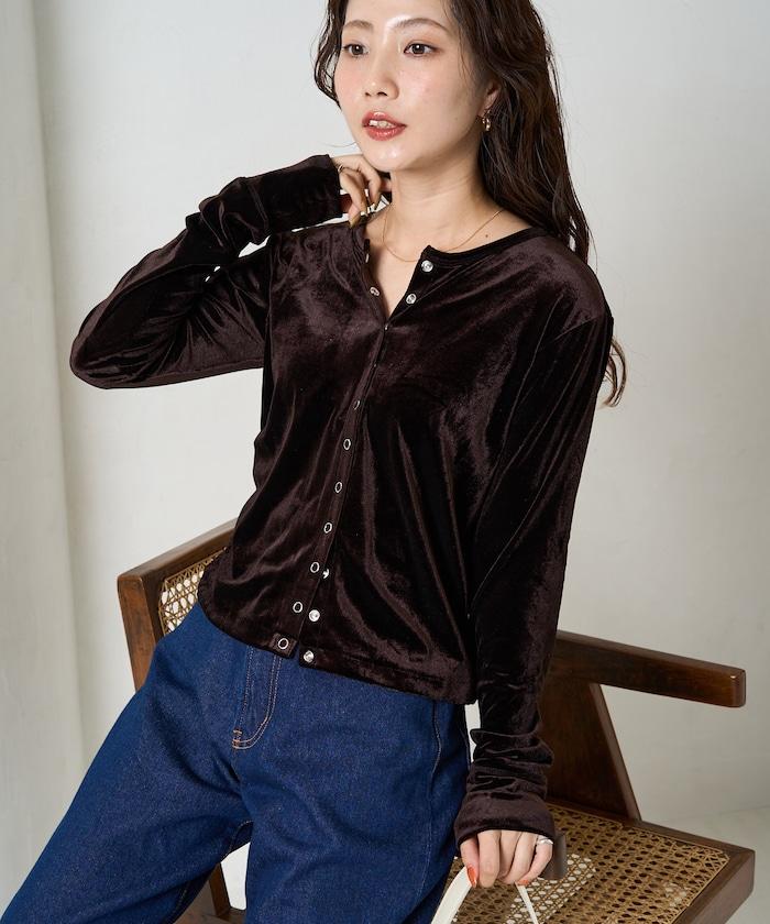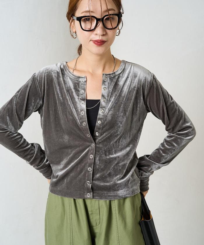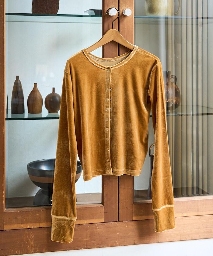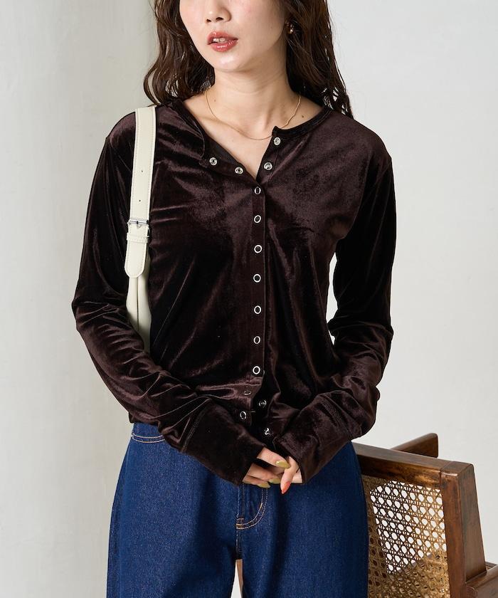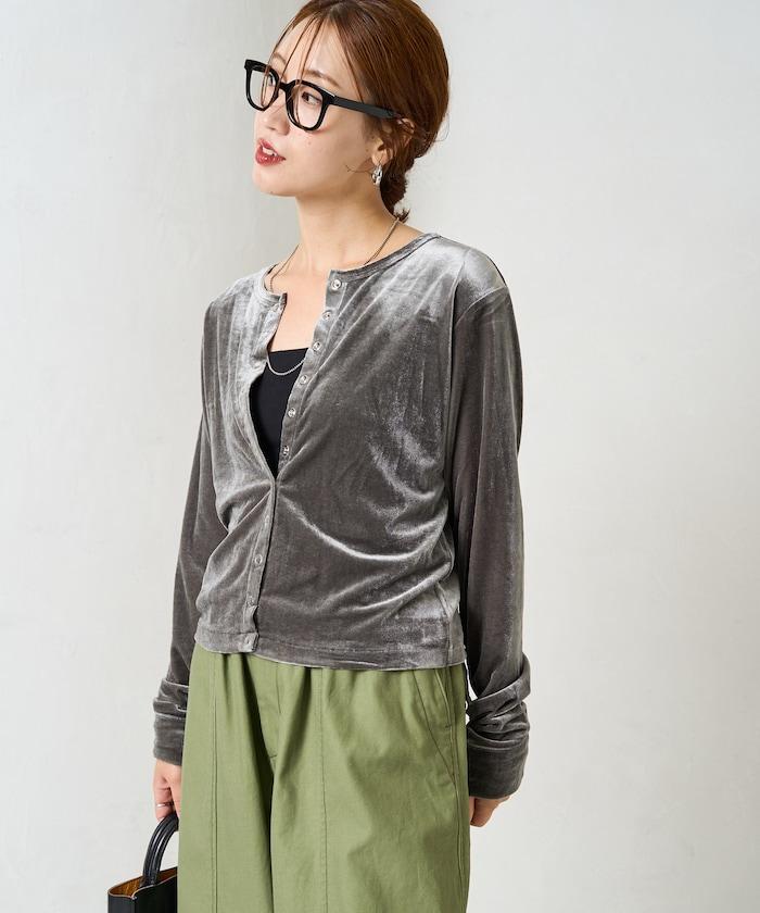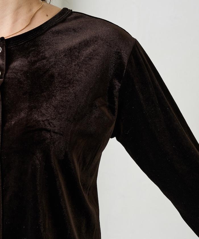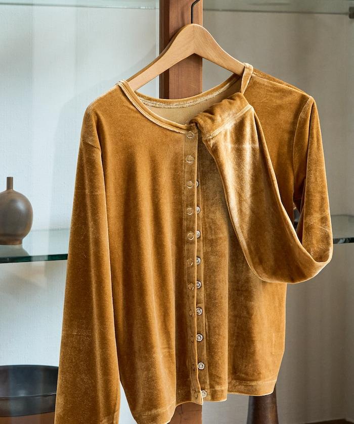 成人開襟羊毛衫,採用閃亮天鵝絨面料,具有輕鬆愜意的感覺,充滿季節氣息。