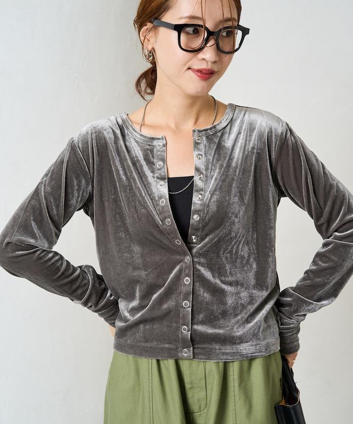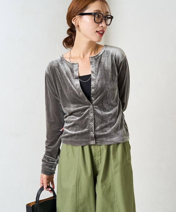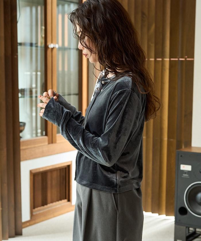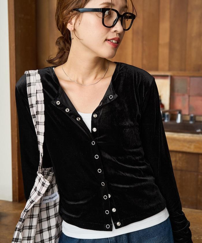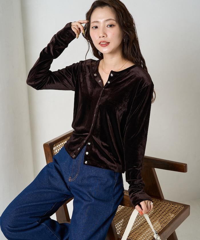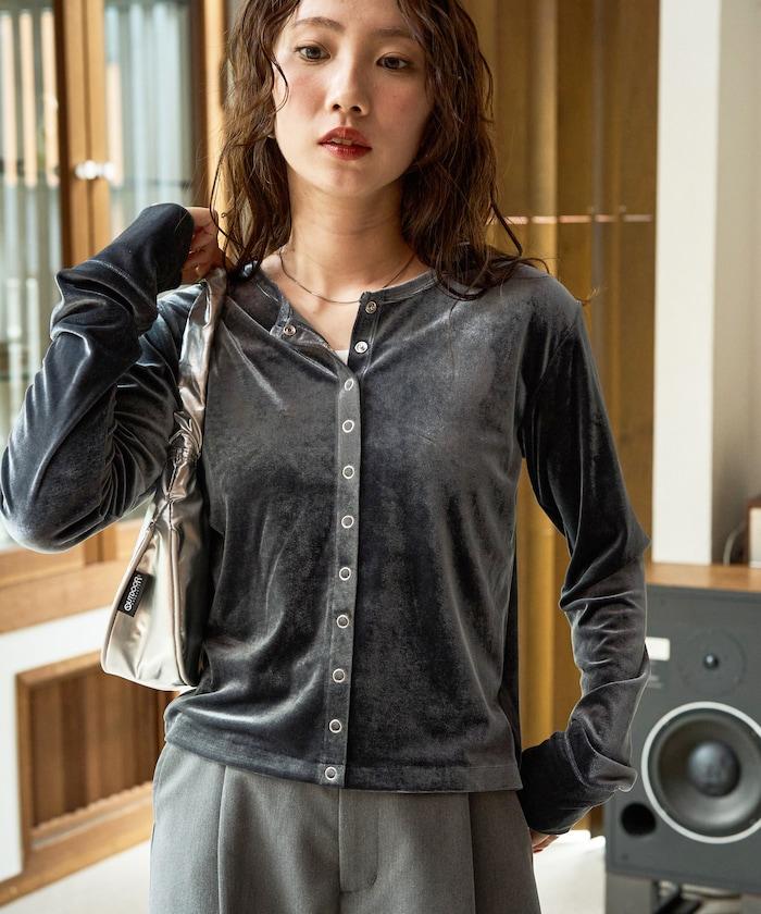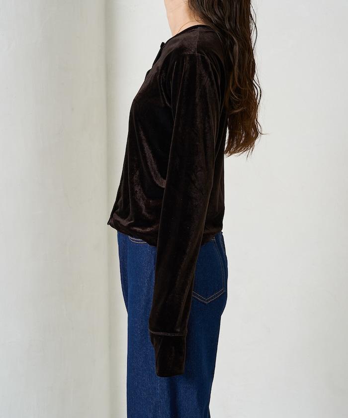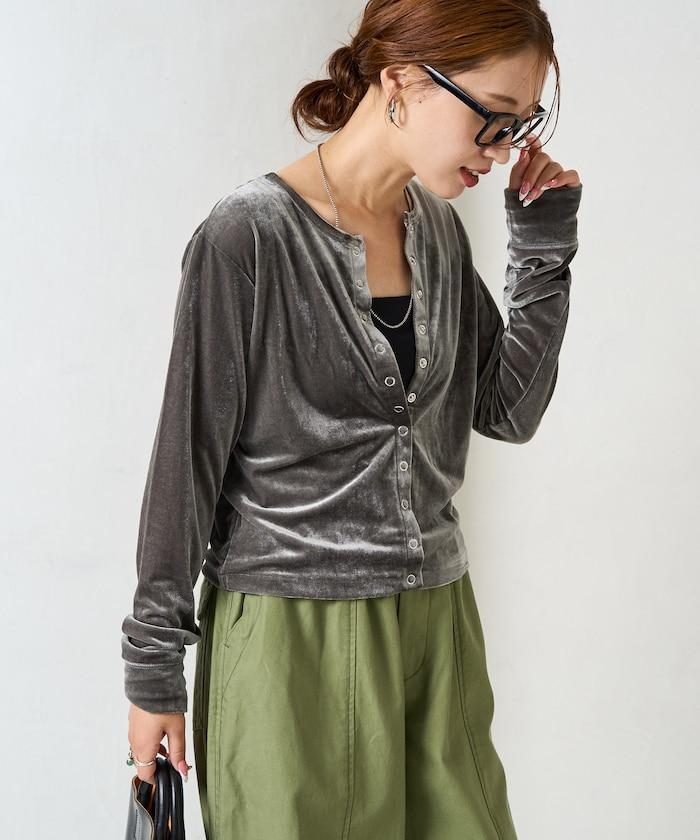 成人開襟羊毛衫,採用閃亮天鵝絨面料,具有輕鬆愜意的感覺,充滿季節氣息。