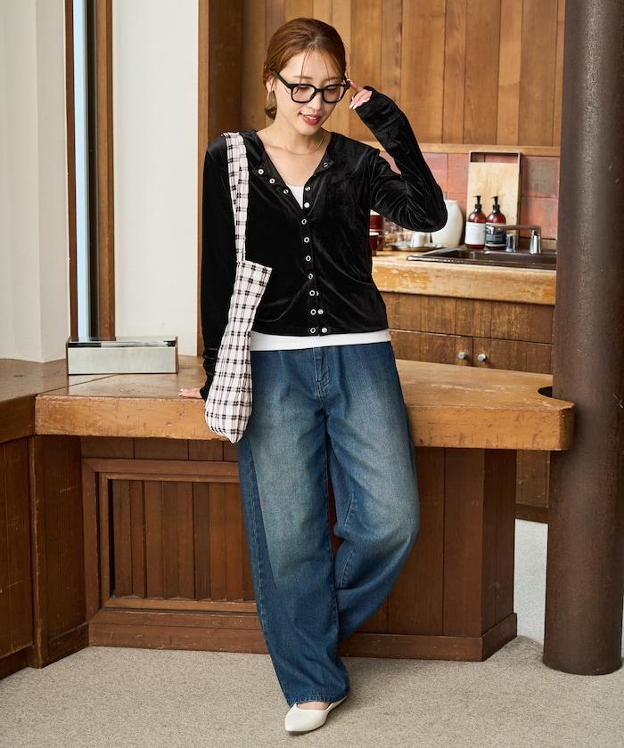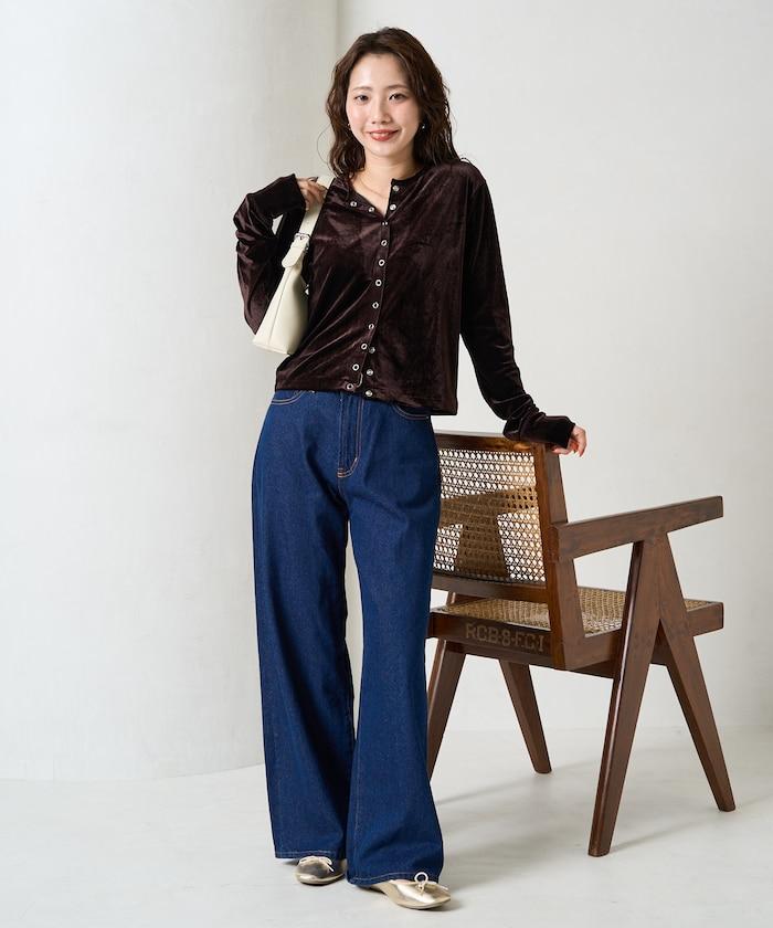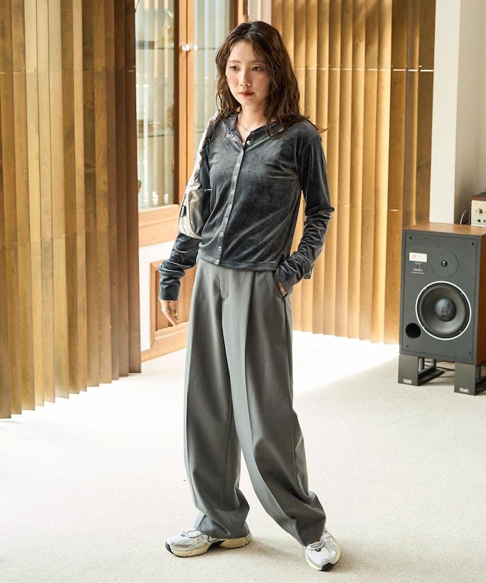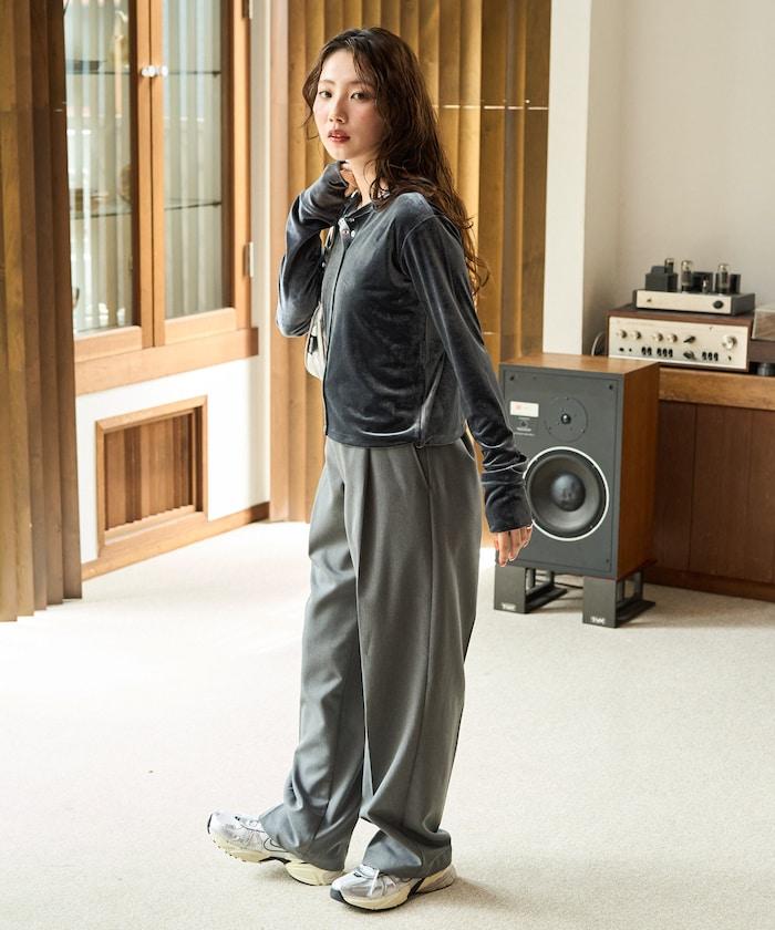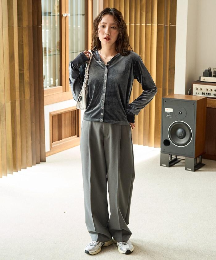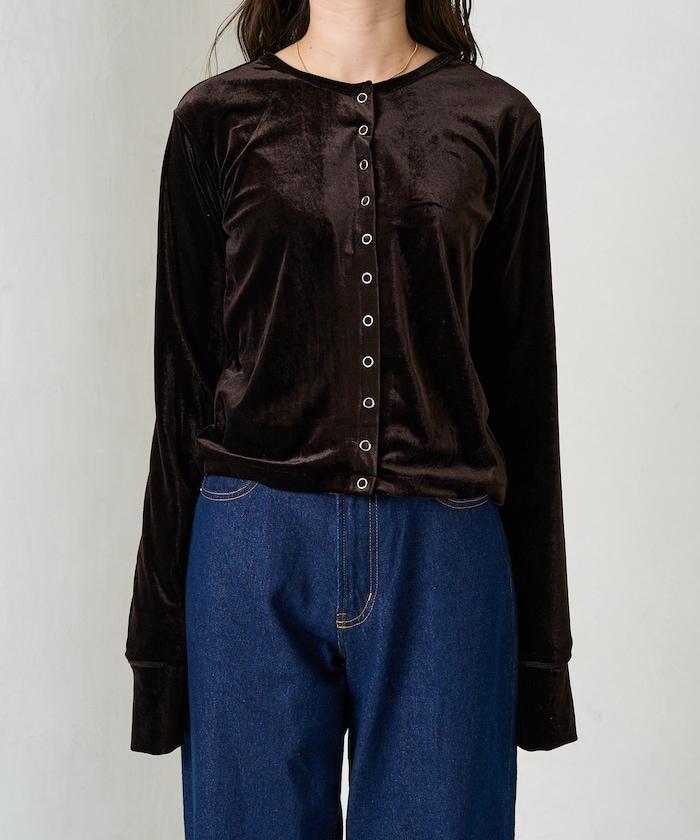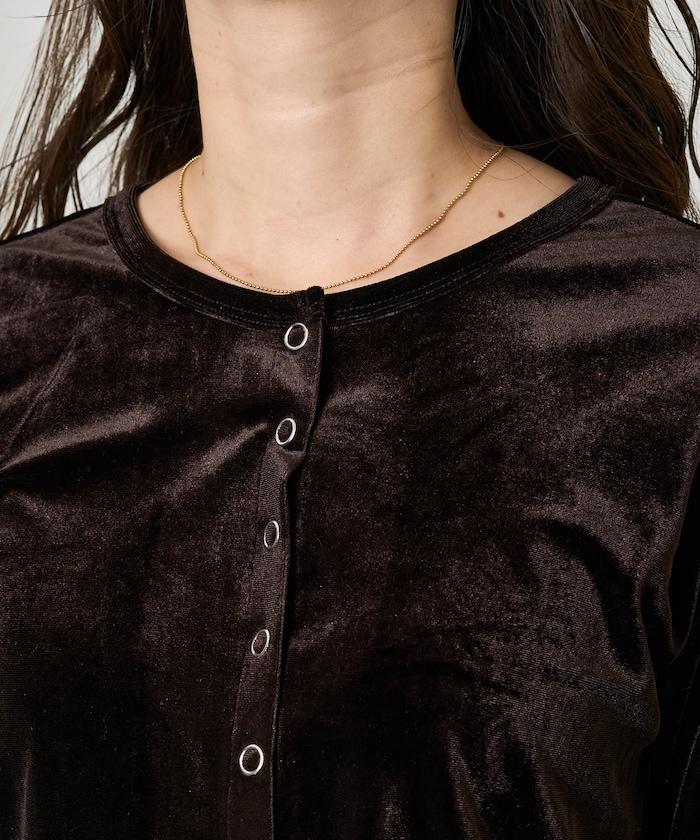 成人開襟羊毛衫,採用閃亮天鵝絨面料,具有輕鬆愜意的感覺,充滿季節氣息。