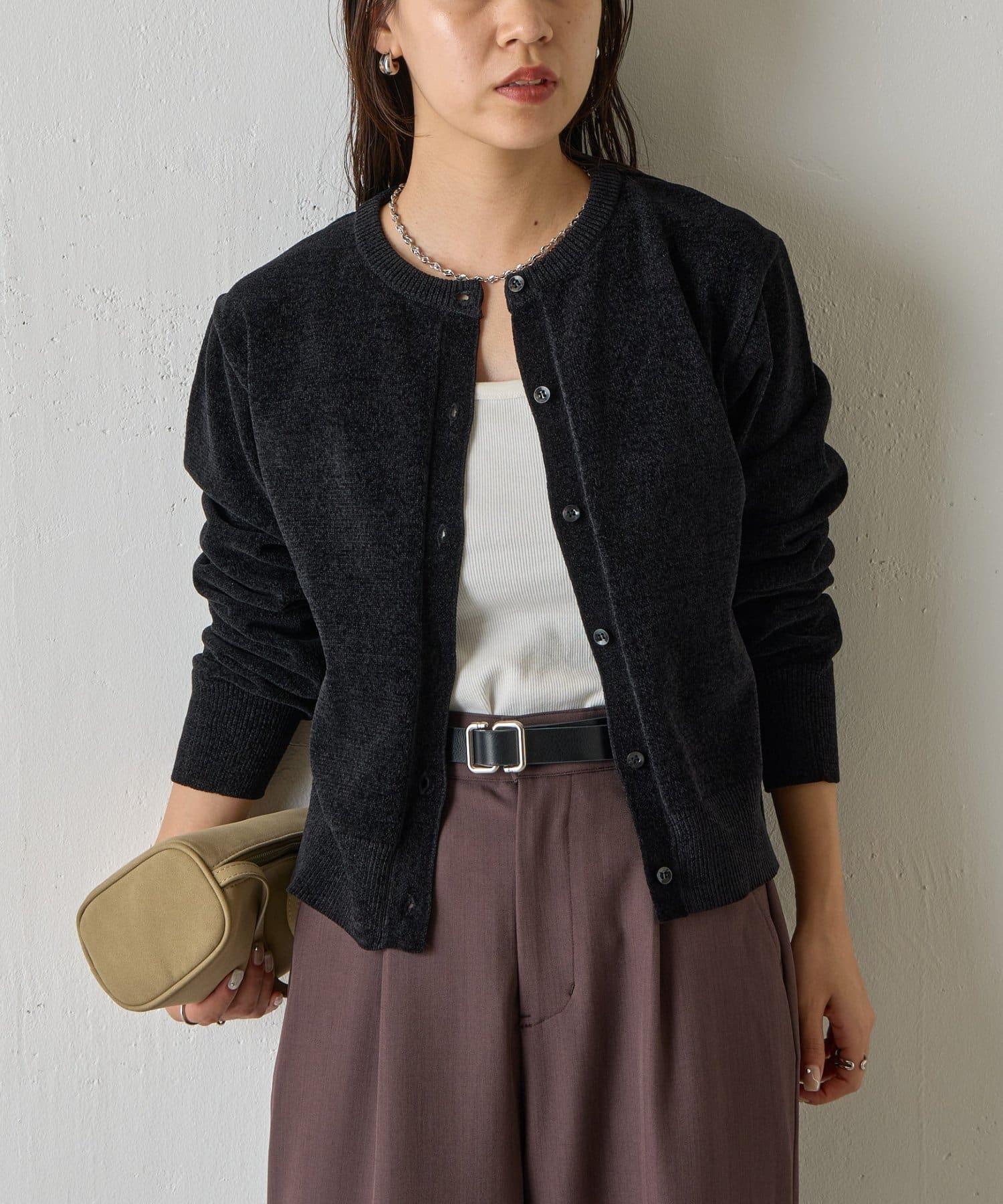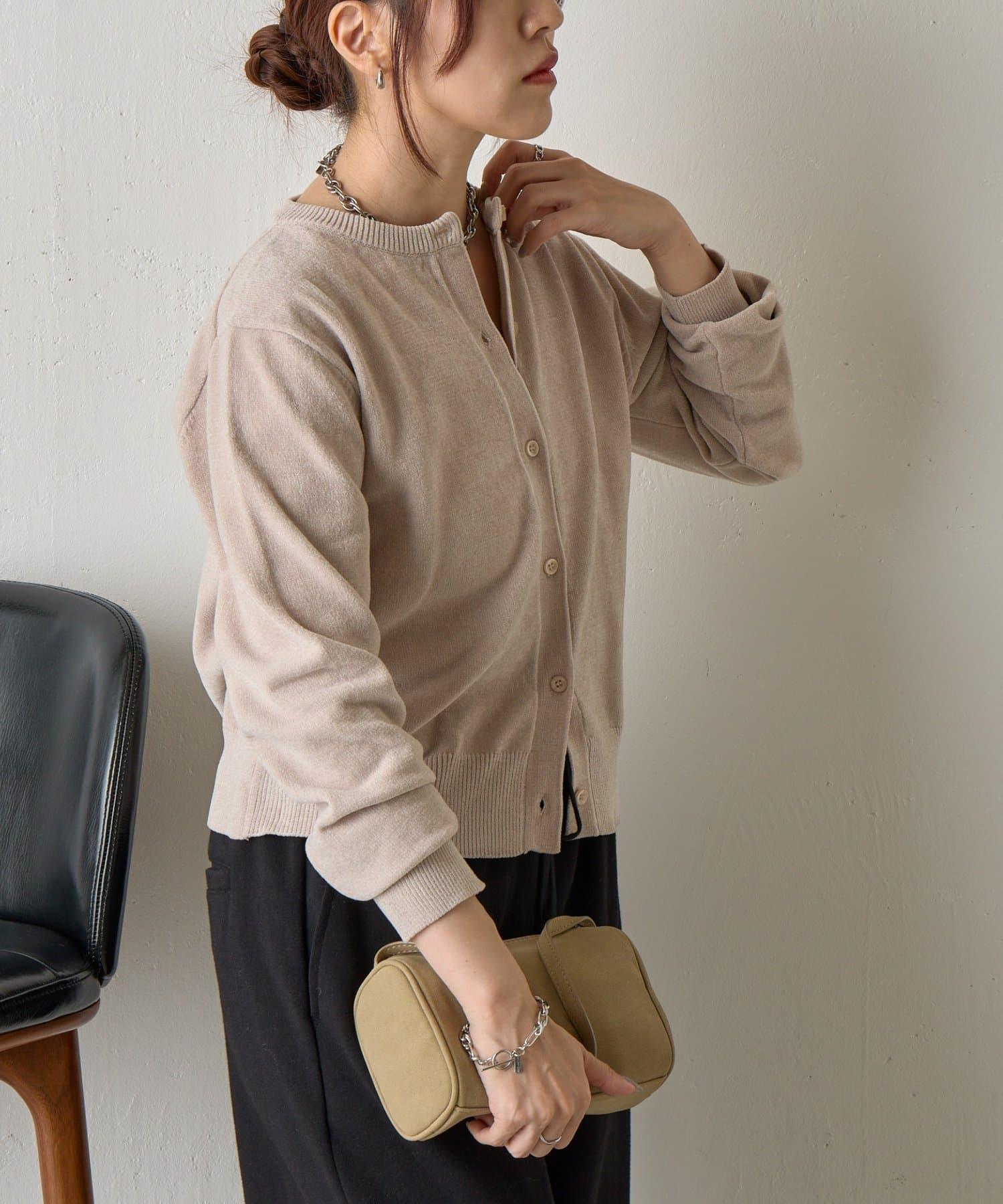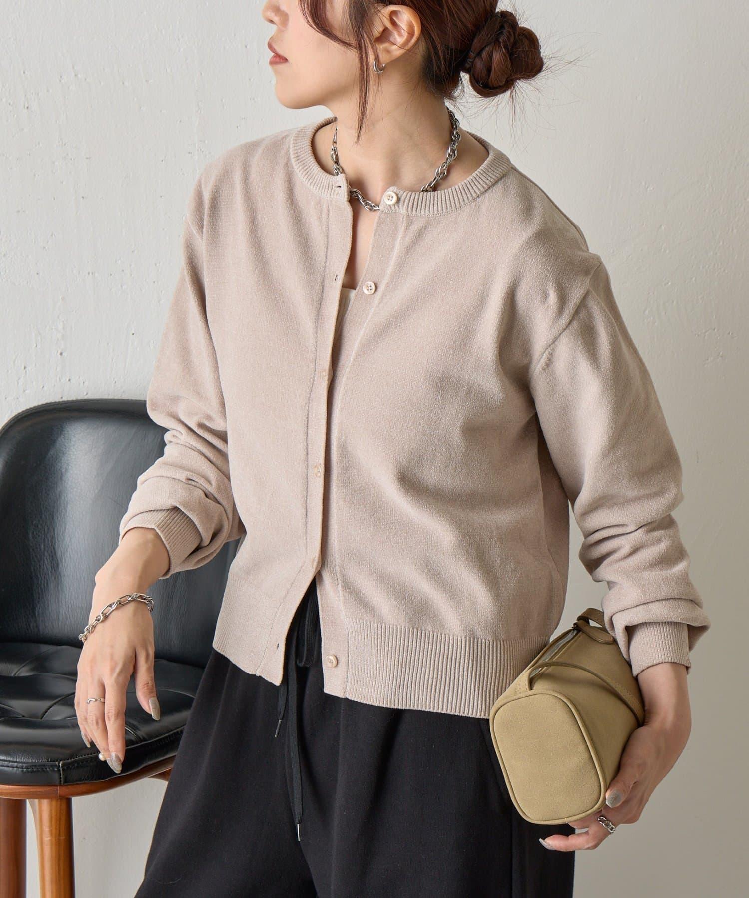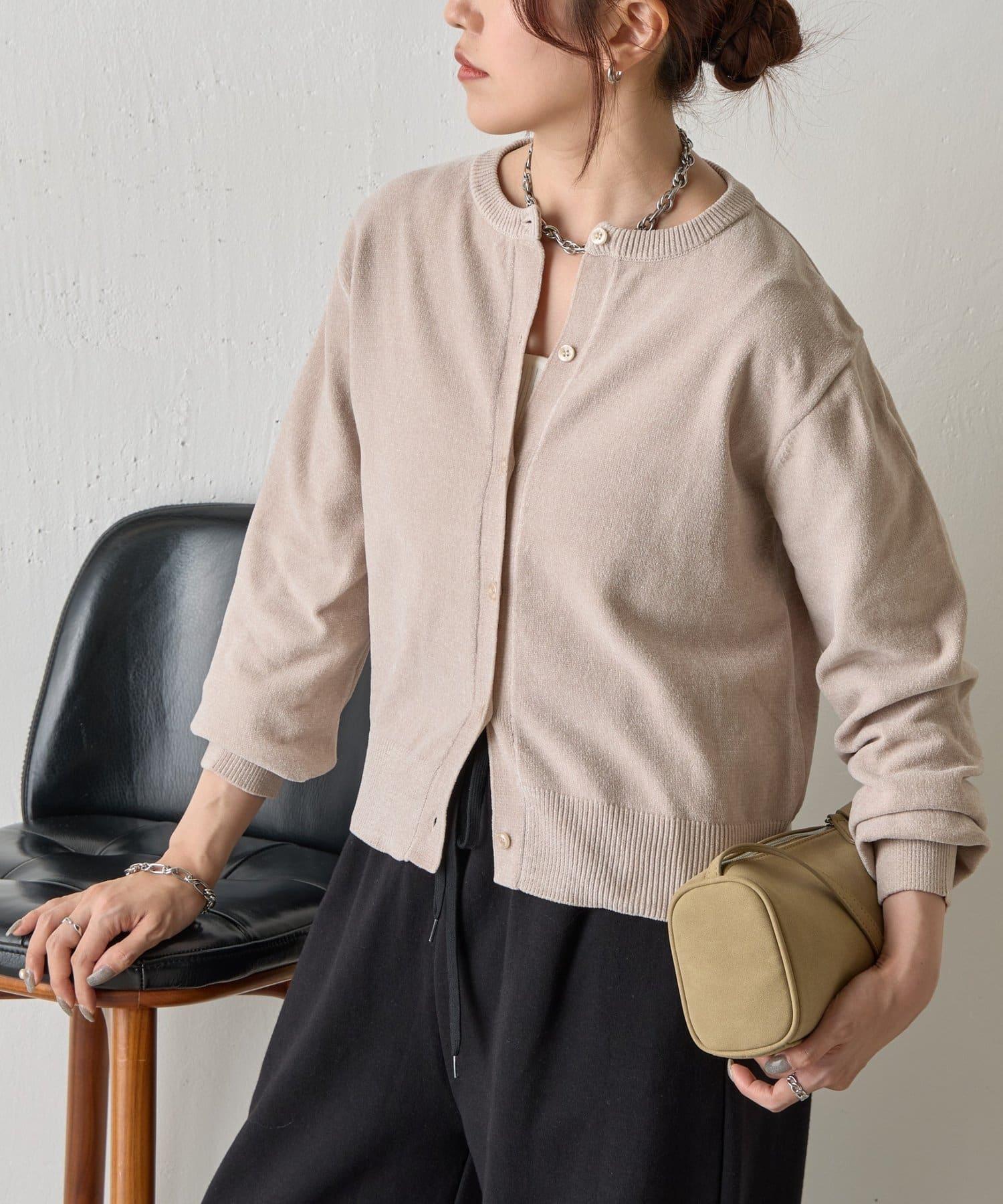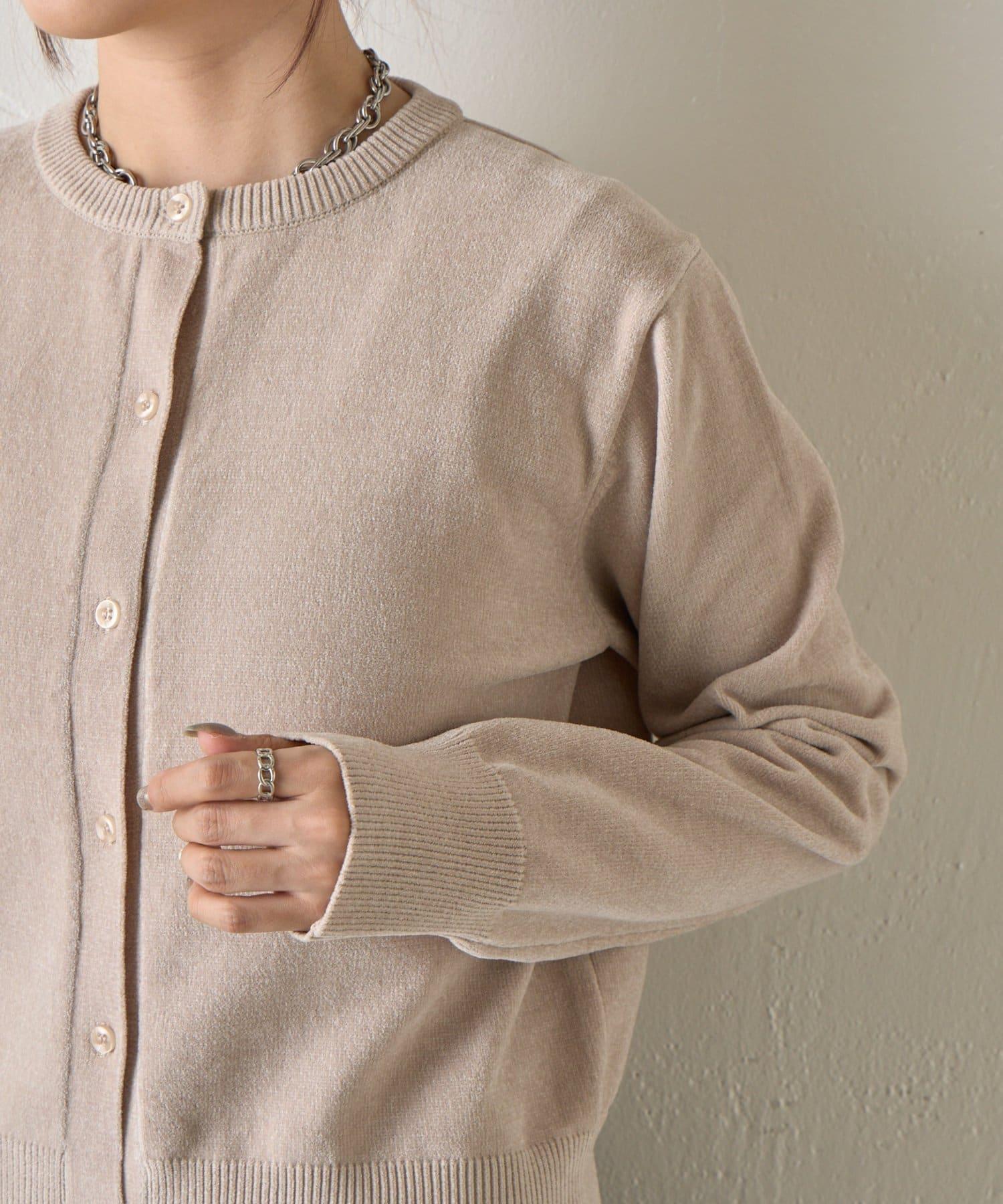 天鵝絨紗線圓領開衫