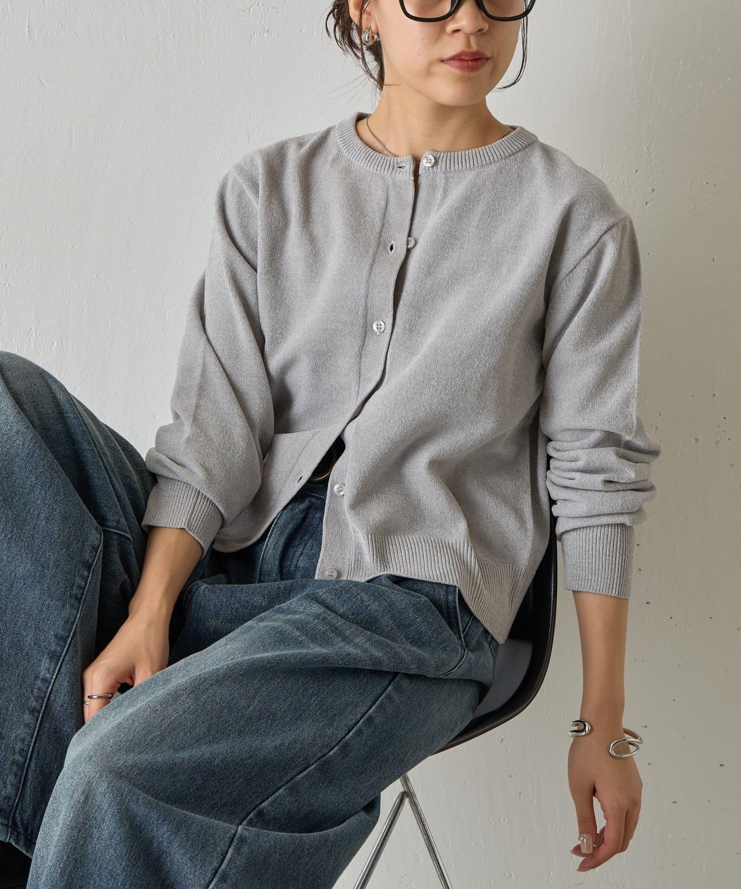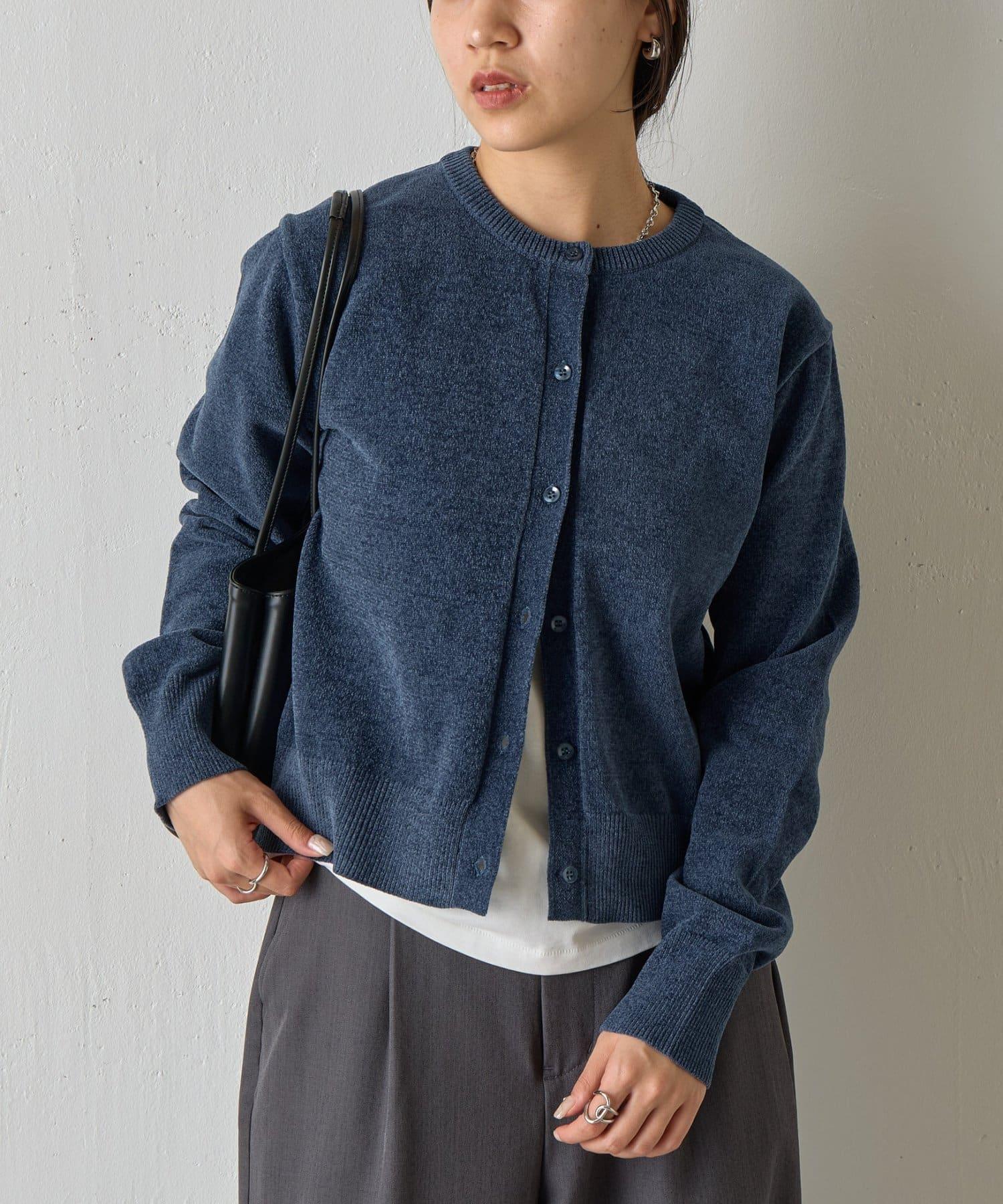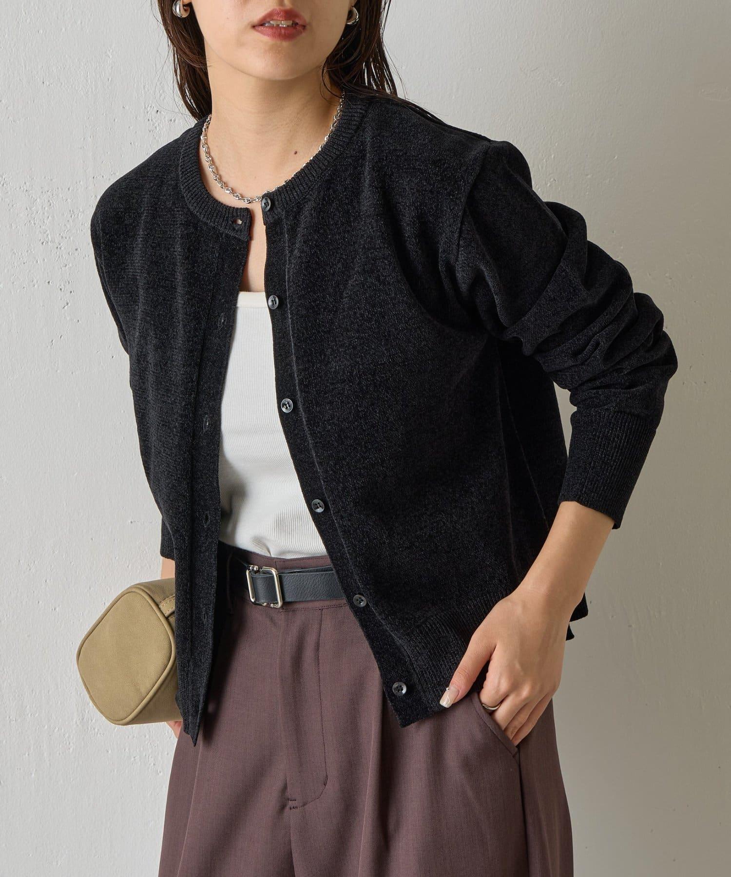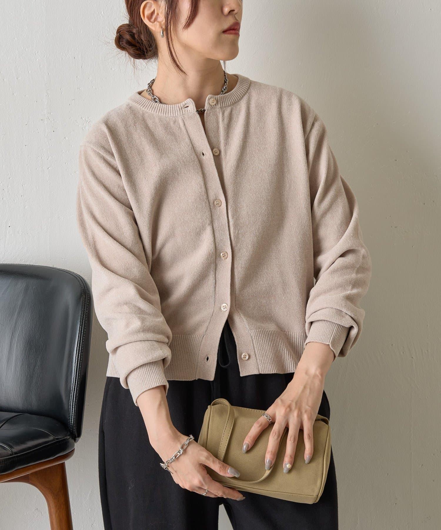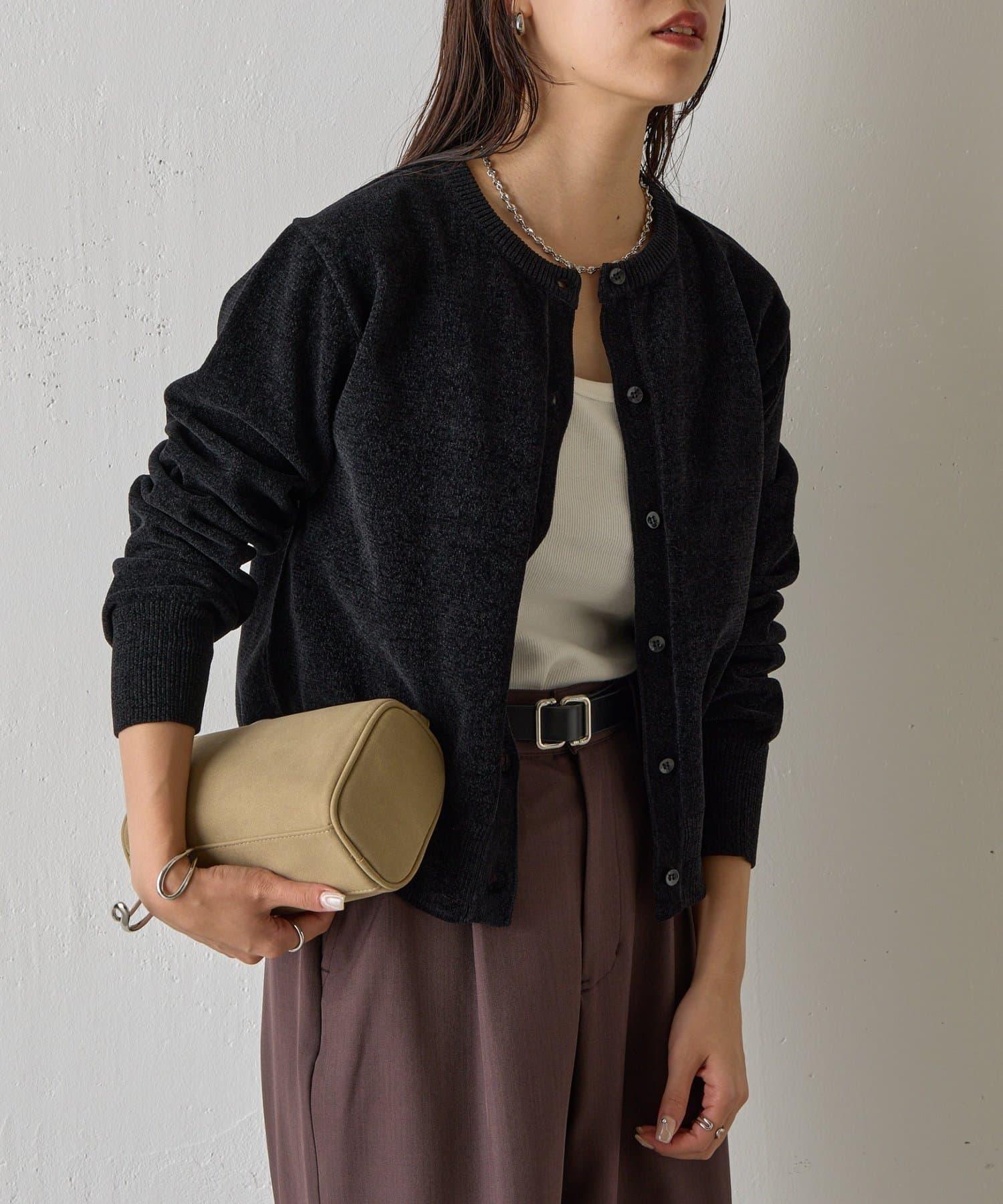 天鵝絨紗線圓領開衫