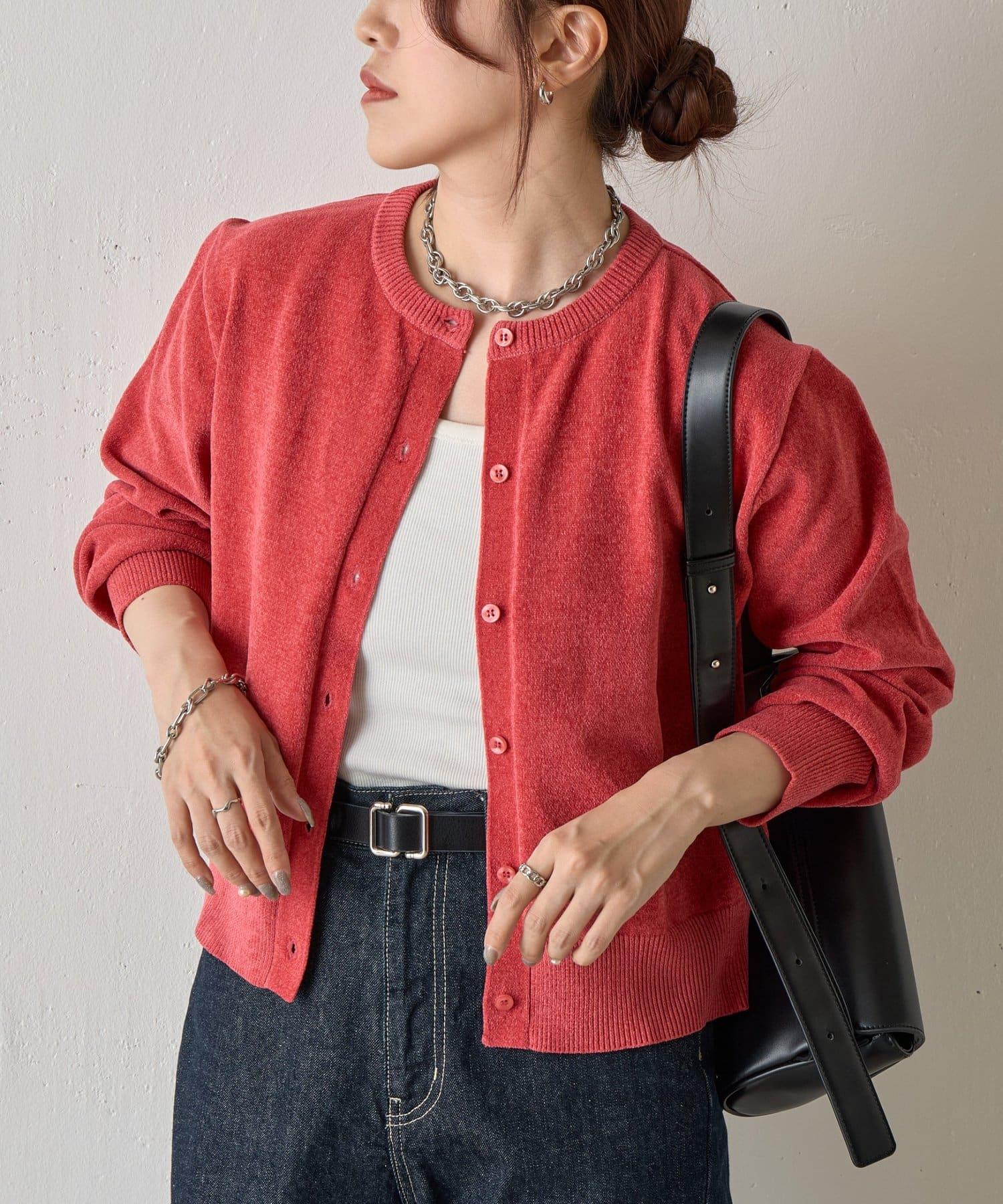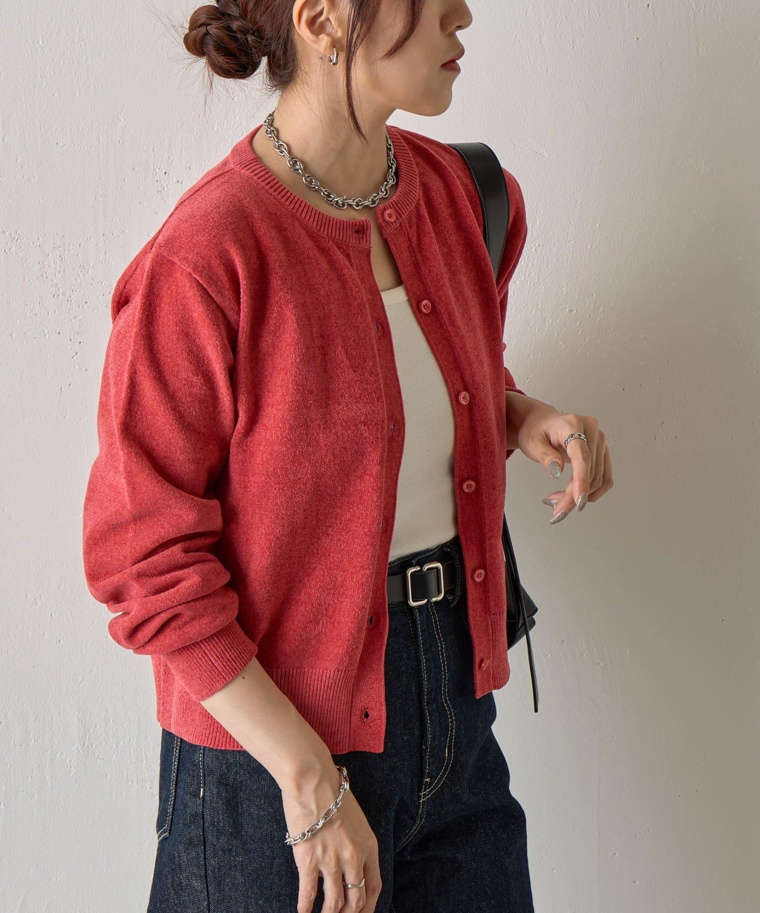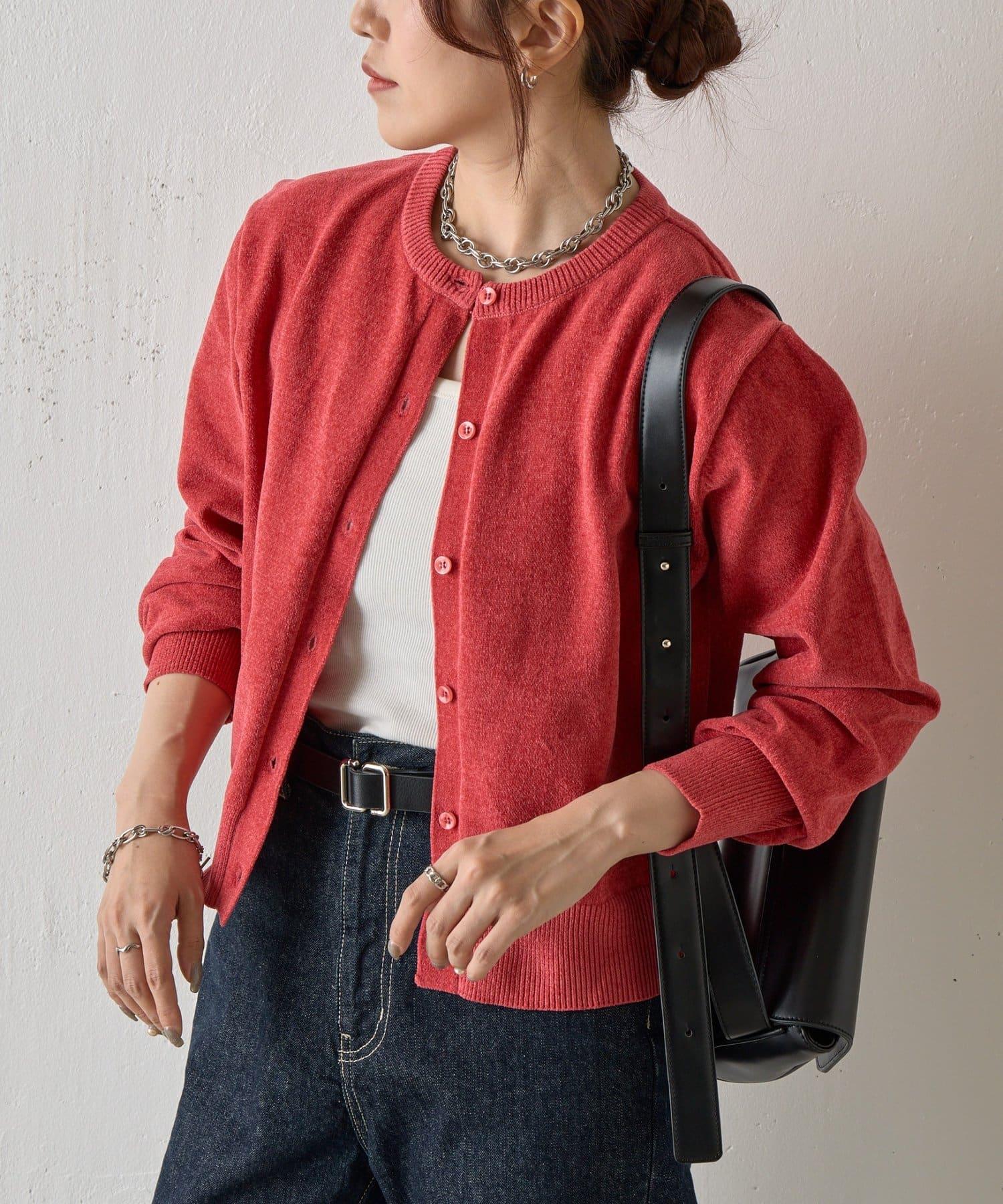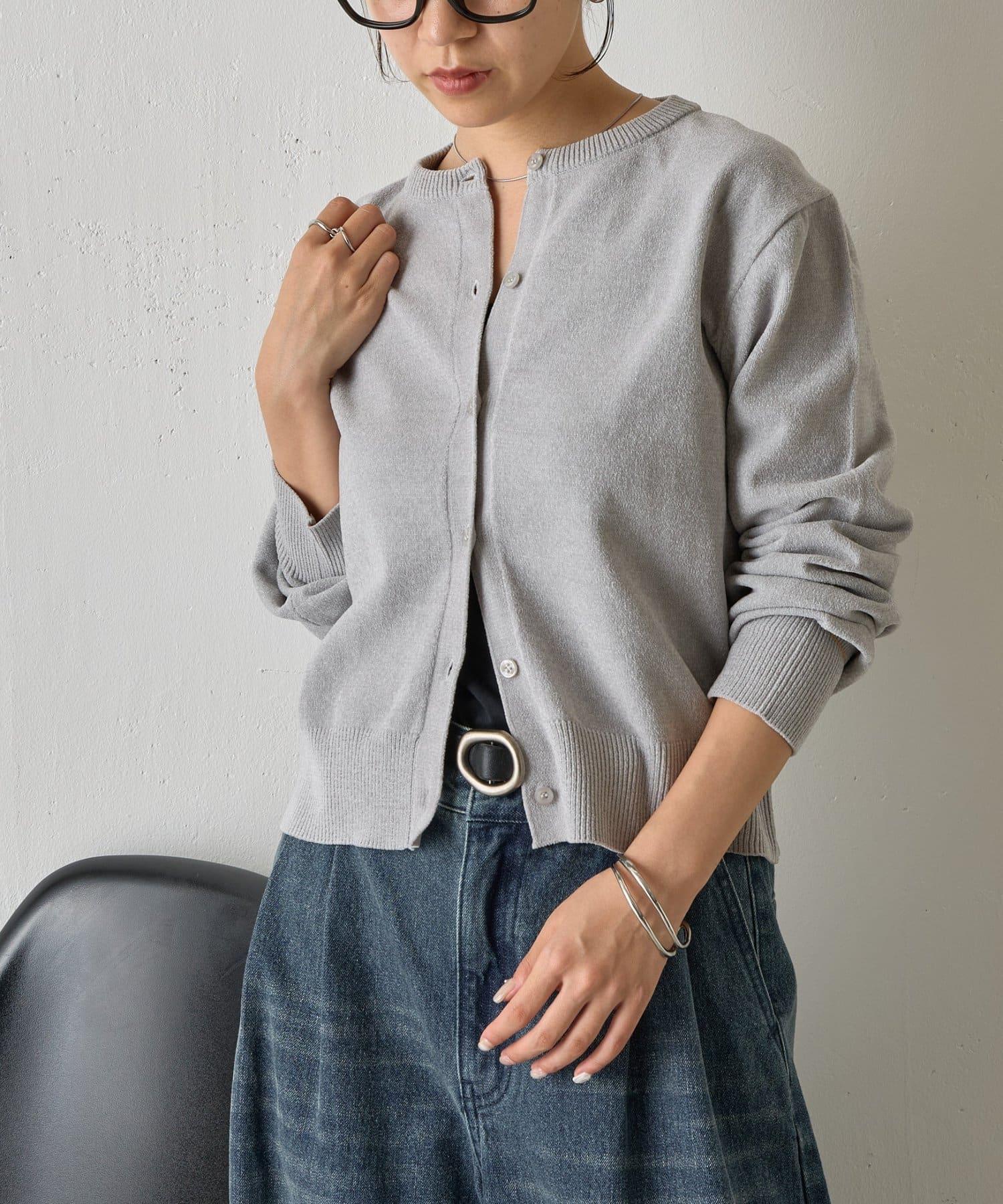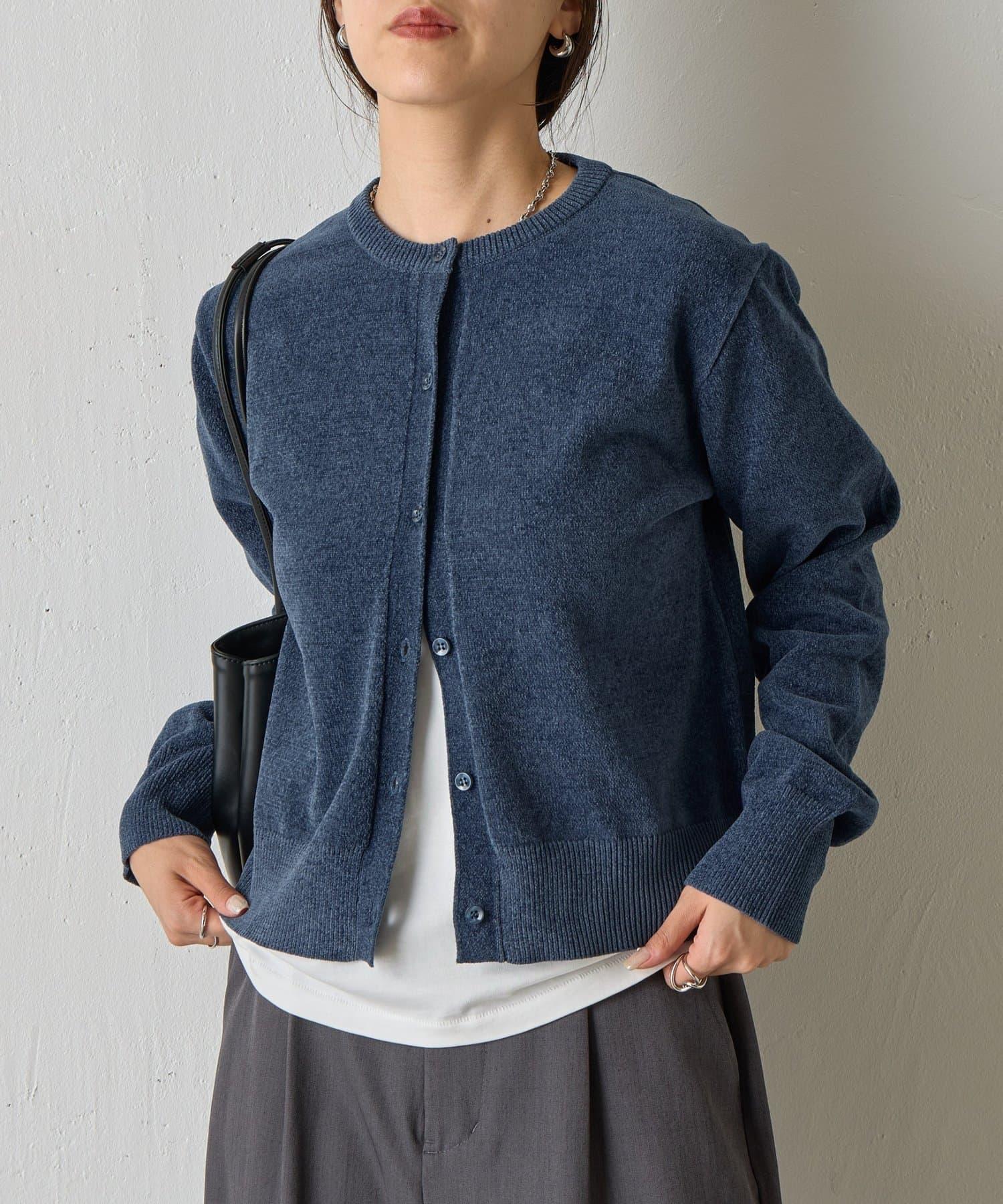 天鵝絨紗線圓領開衫