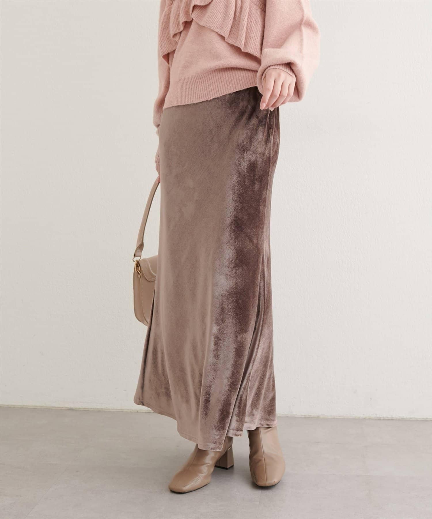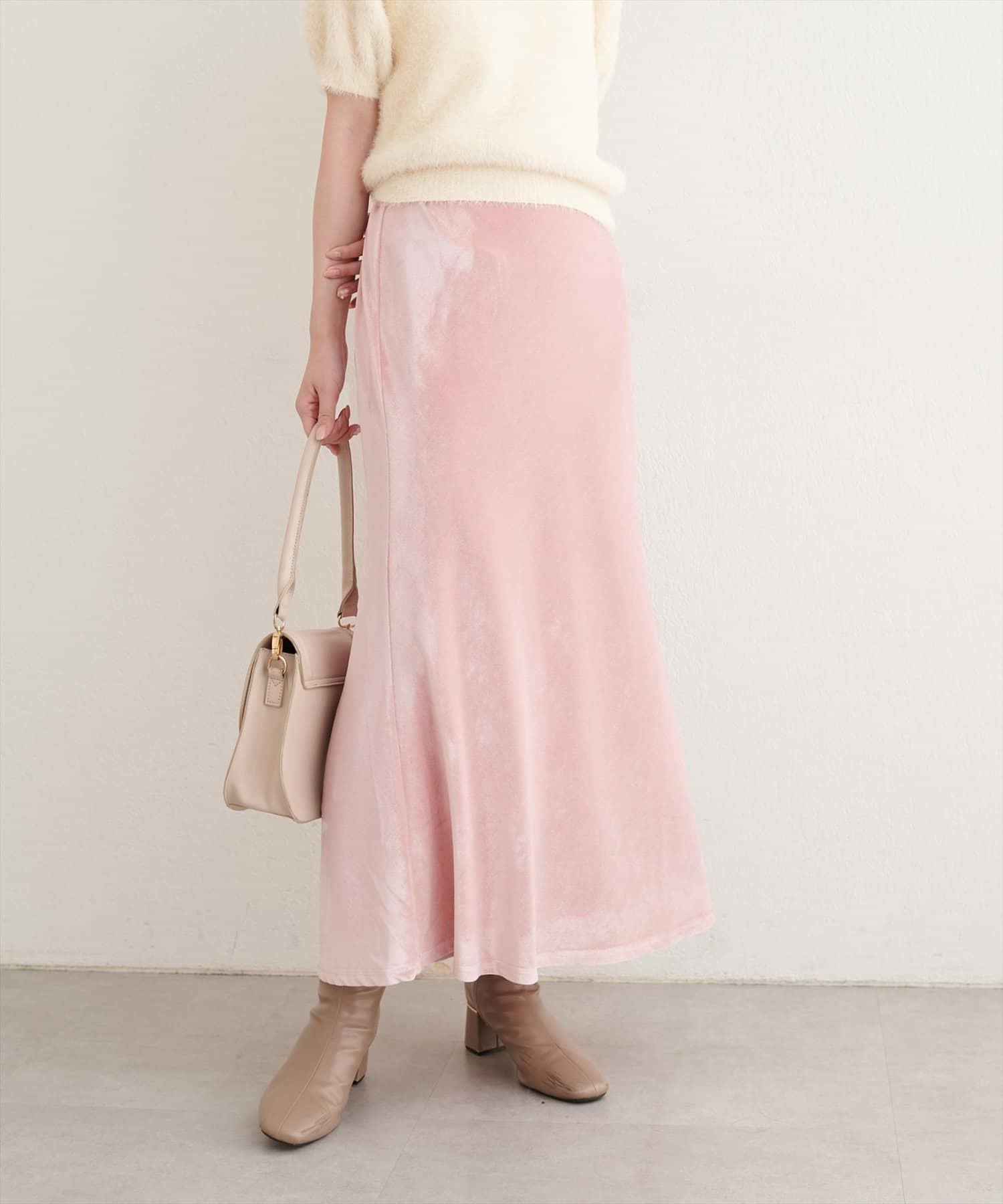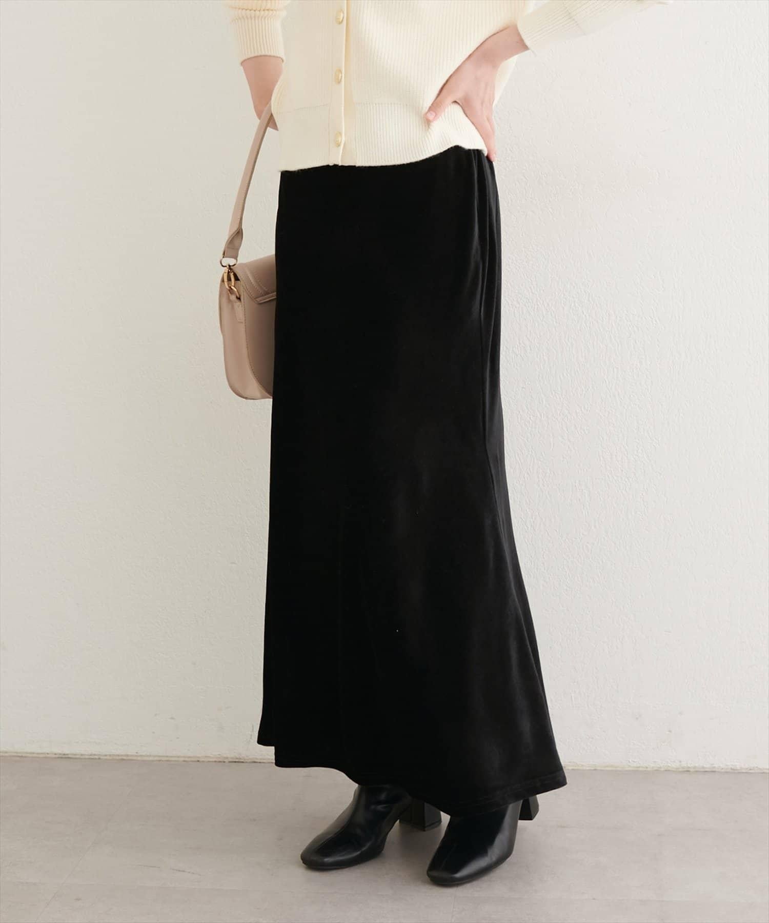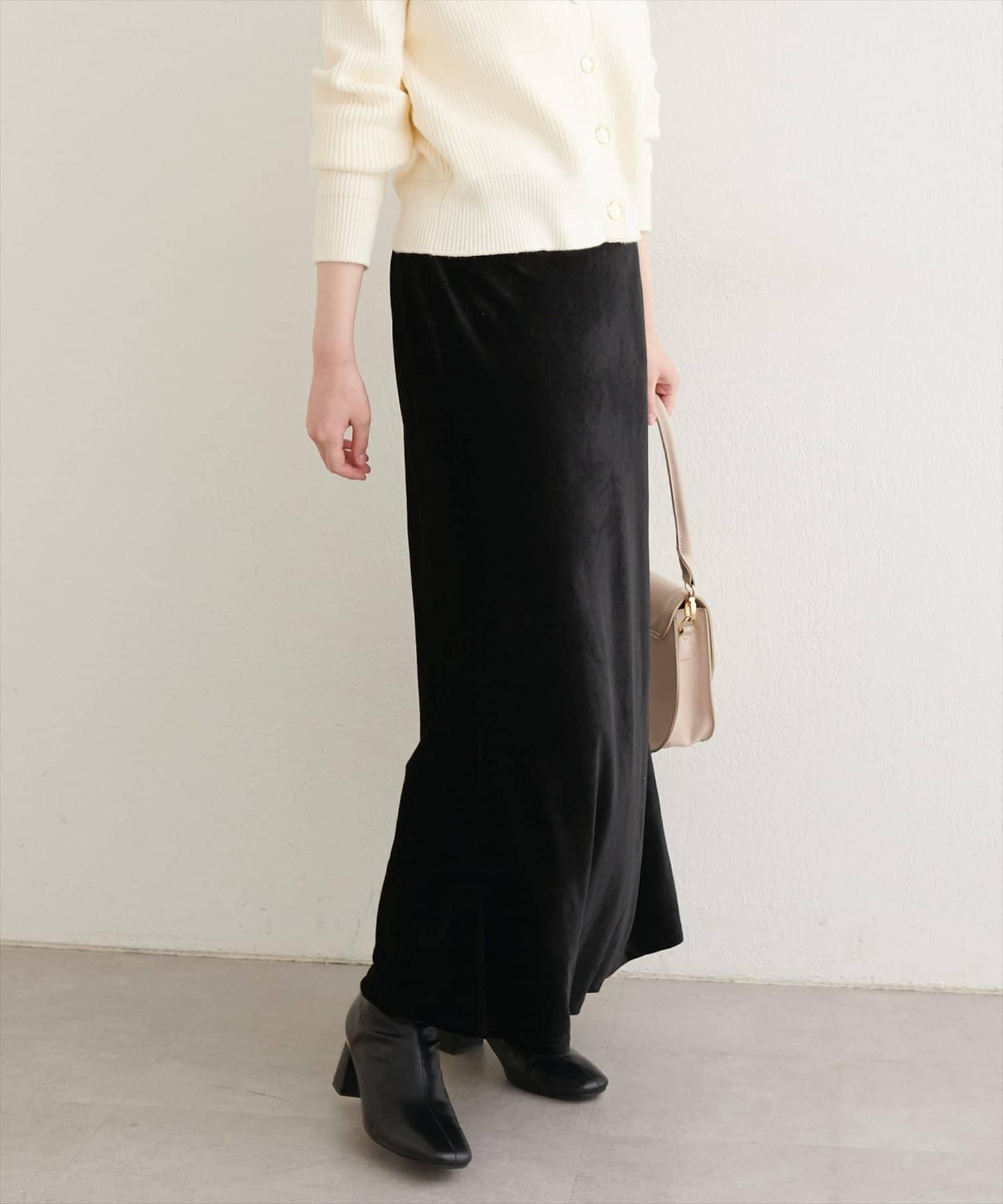 絲絨人魚裙讓您在行走時搖曳生姿。絲絨材質散發出優雅的光澤、