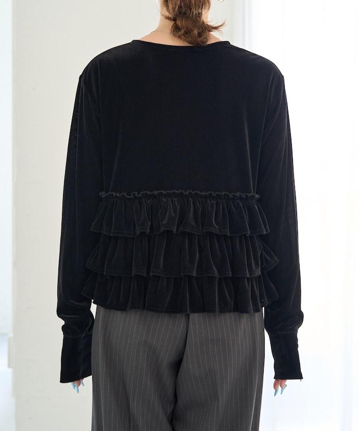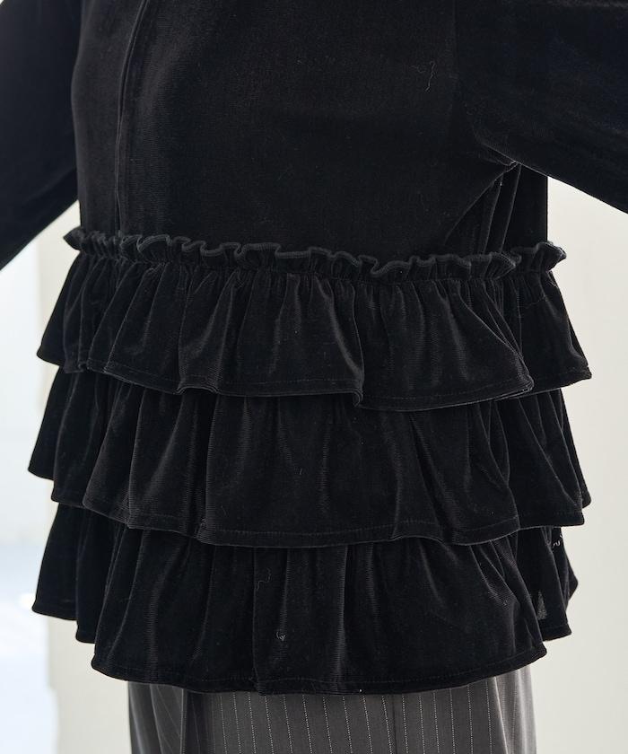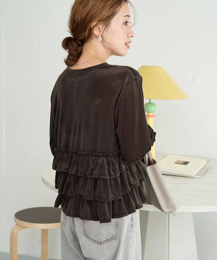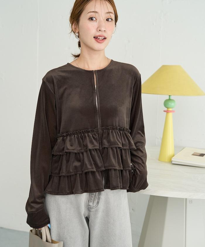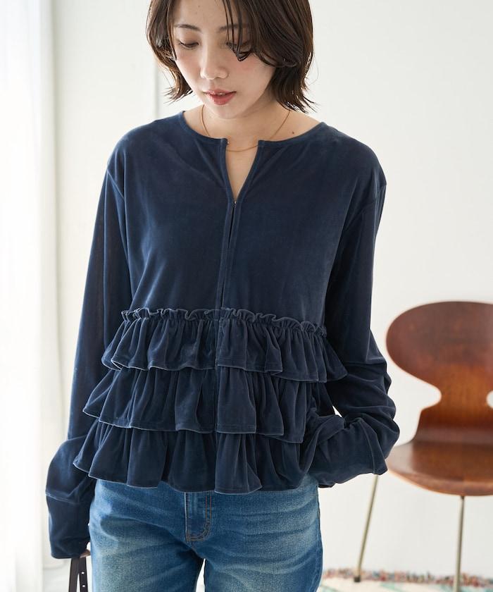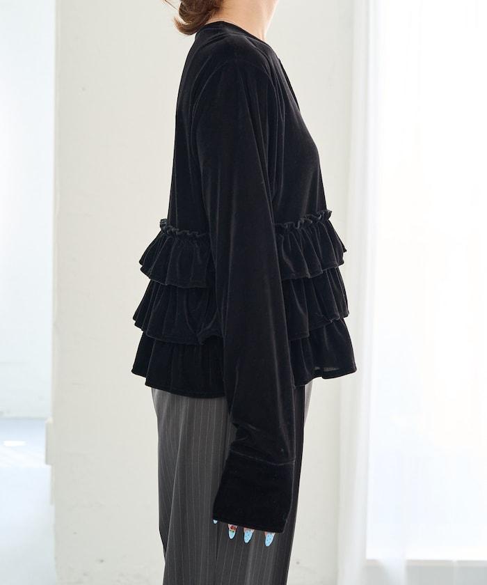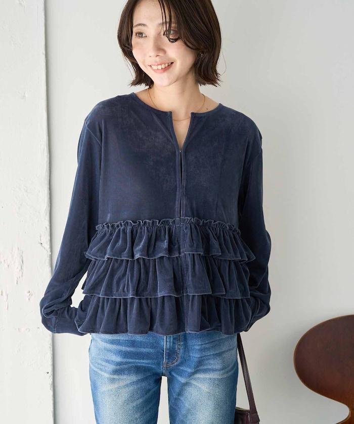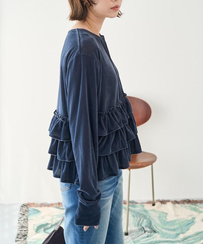 雙面絲絨開衫,荷葉邊設計極具表現力
