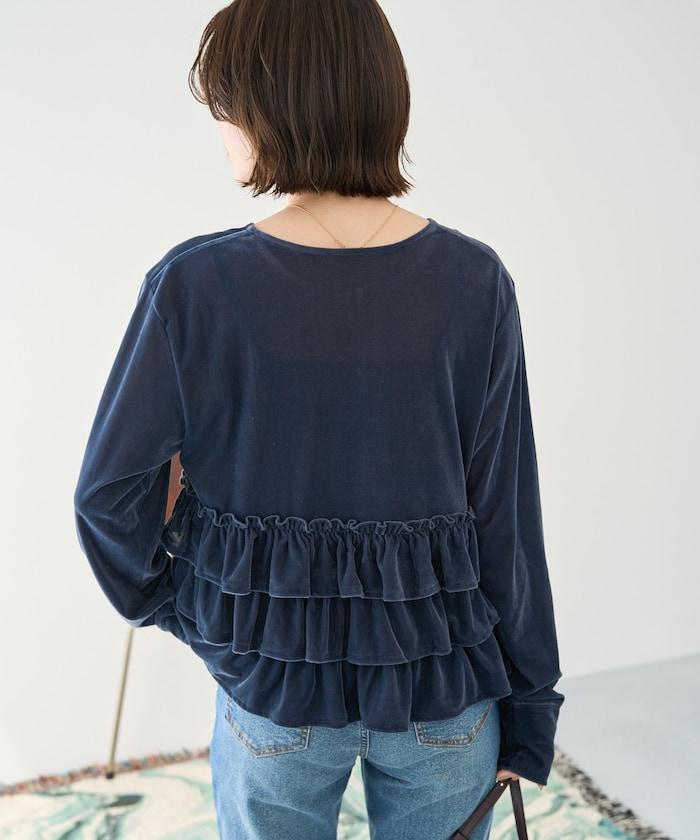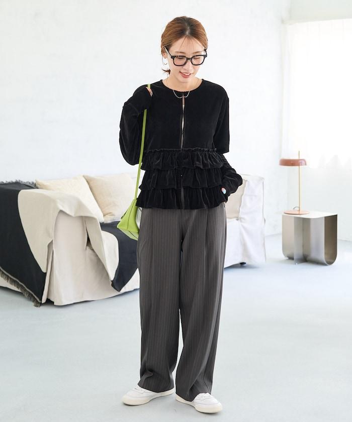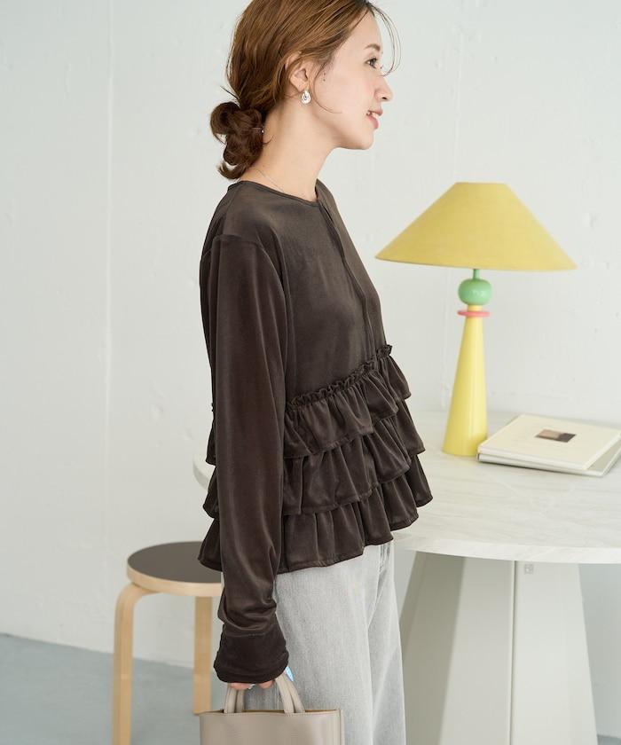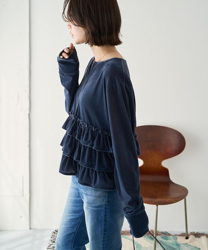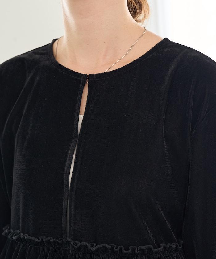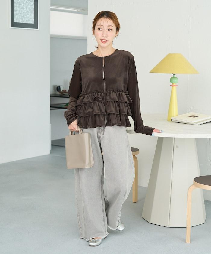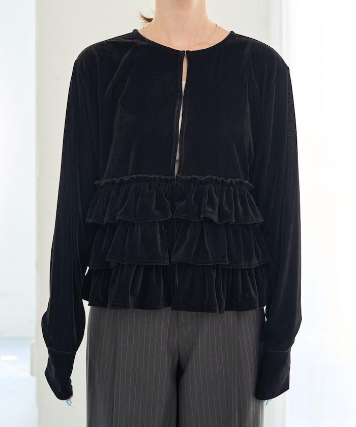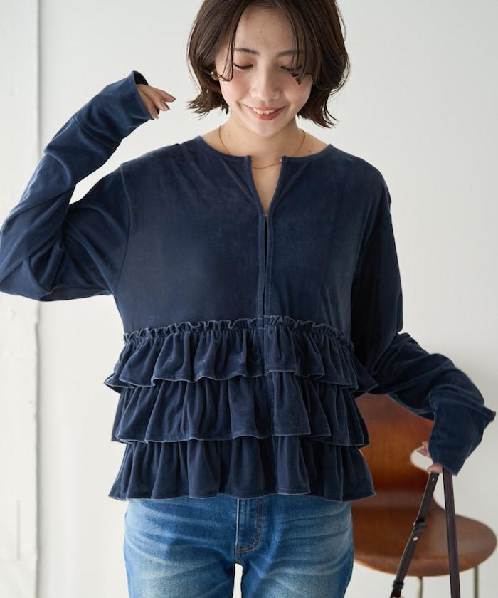 雙面絲絨開衫,荷葉邊設計極具表現力
