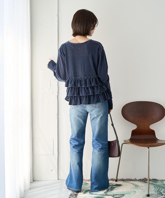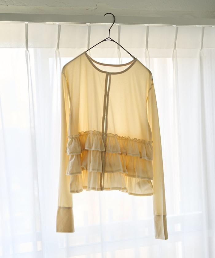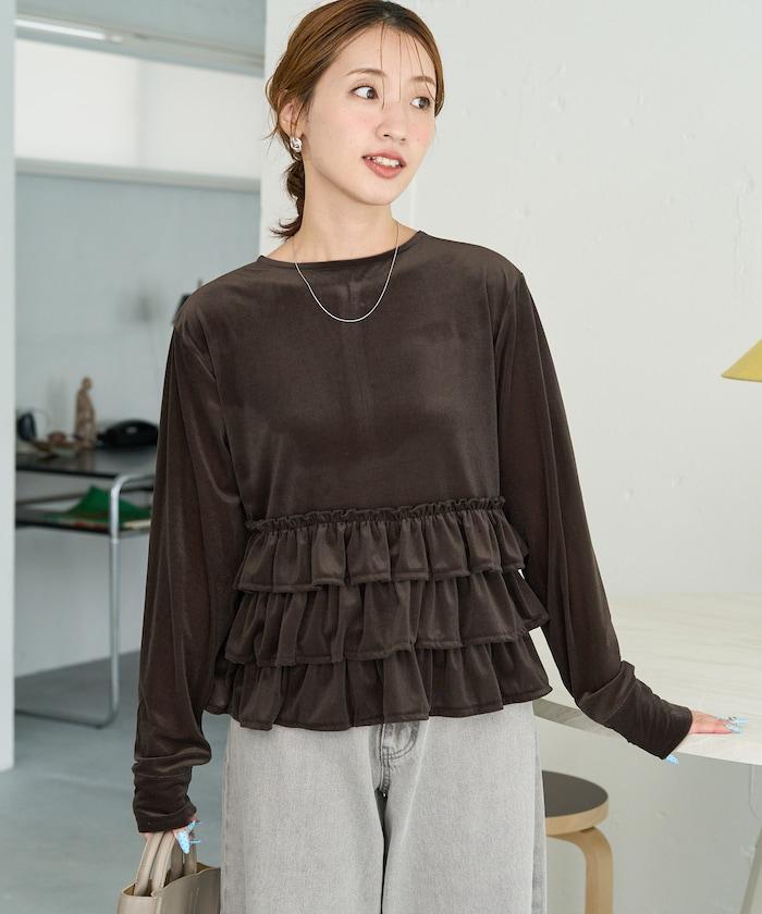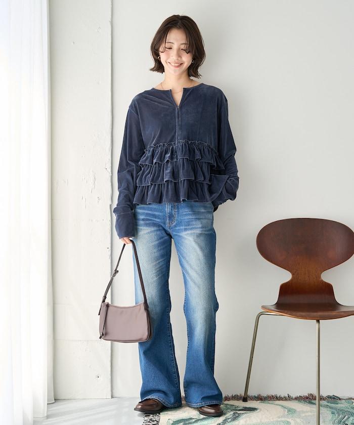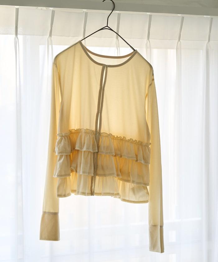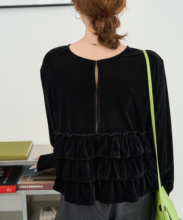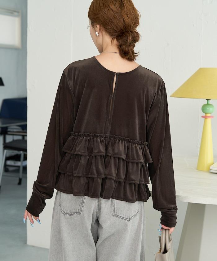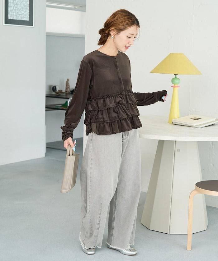 雙面絲絨開衫,荷葉邊設計極具表現力