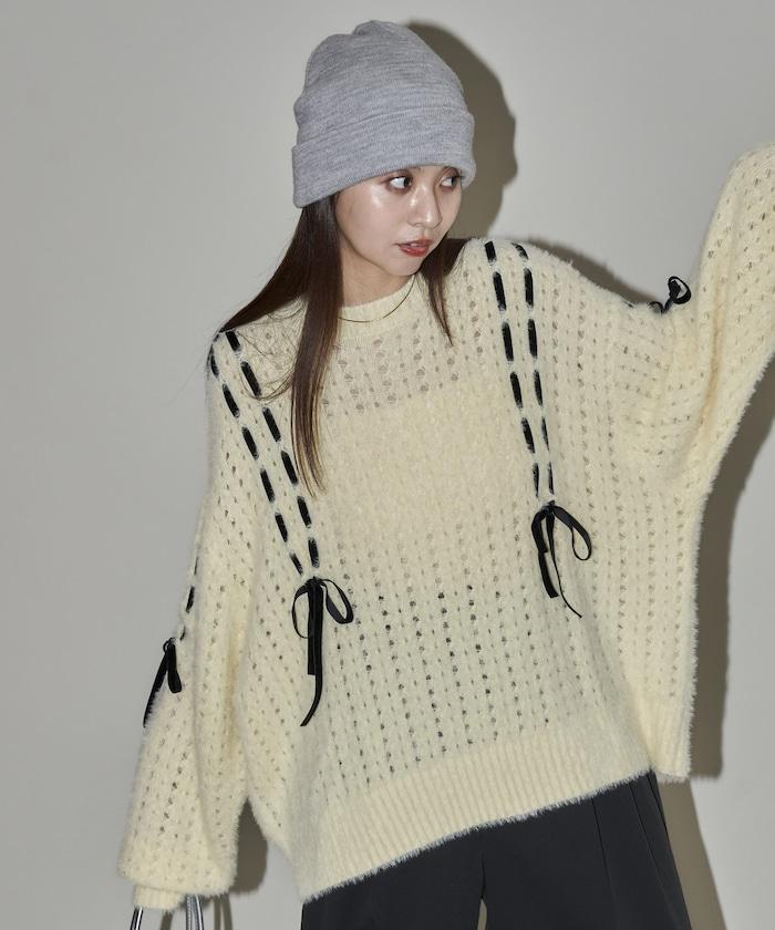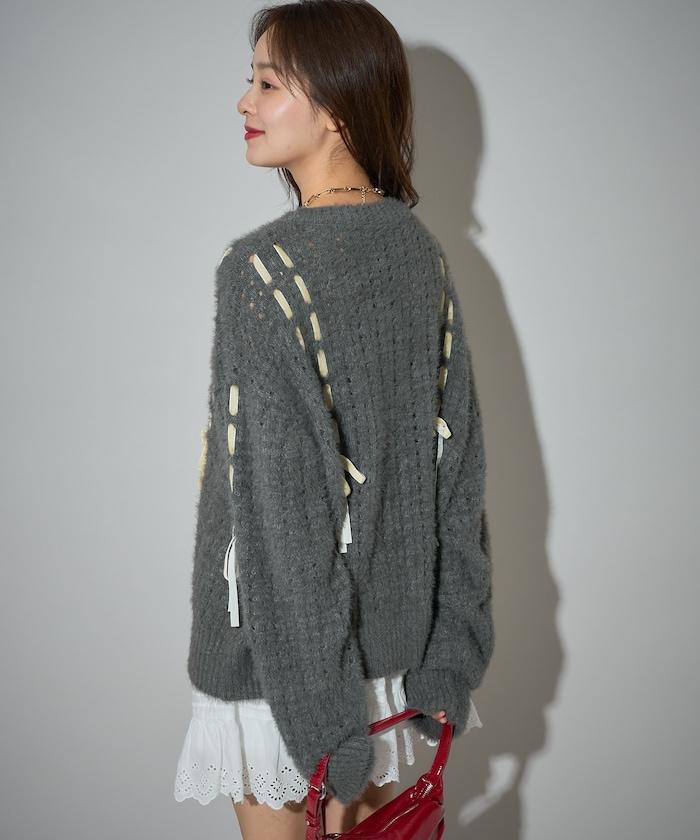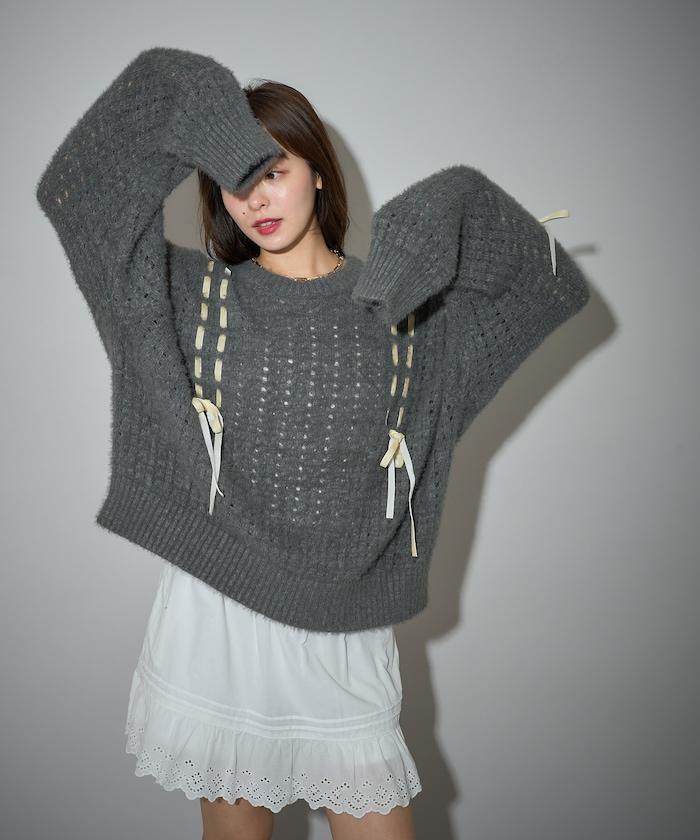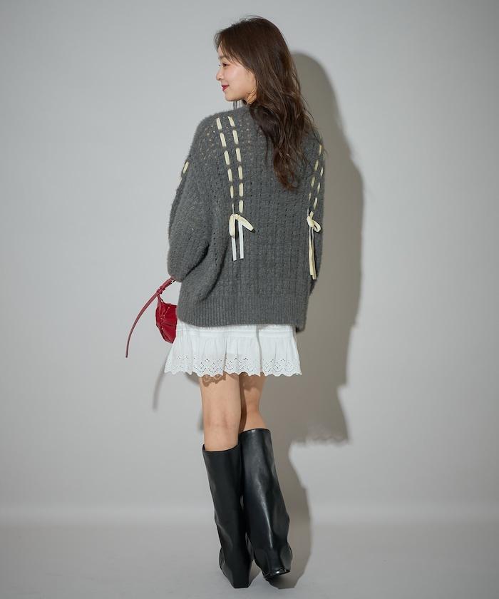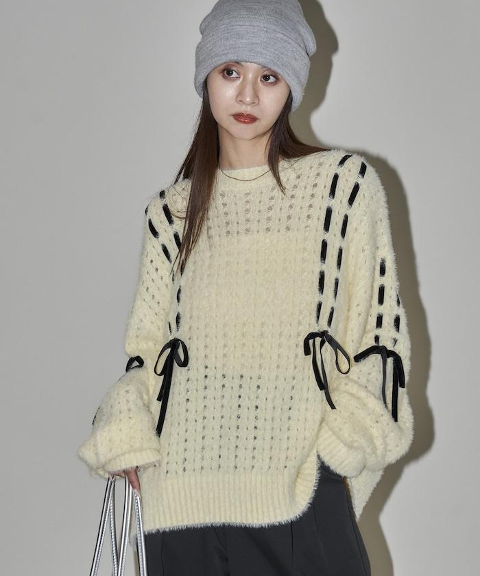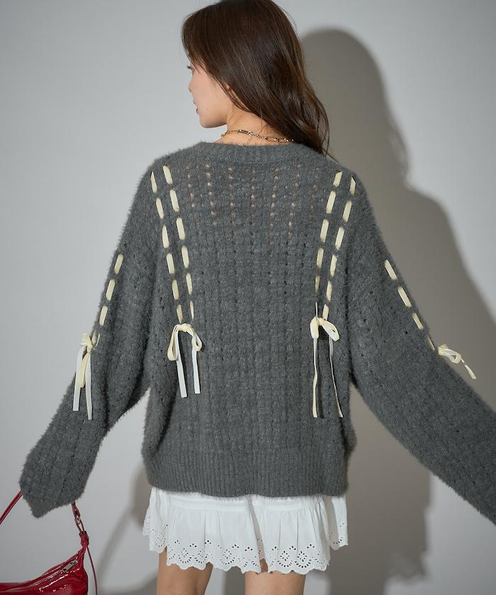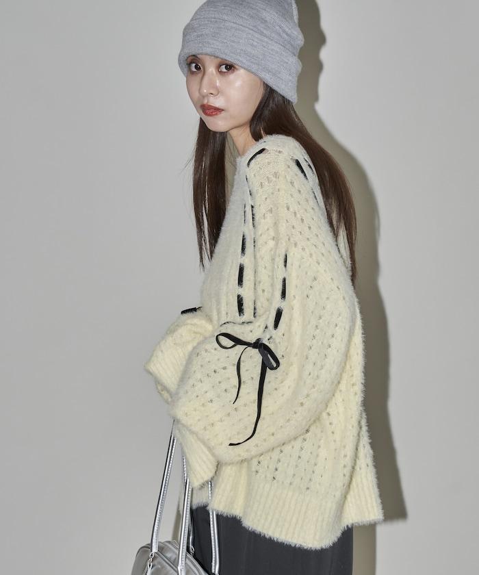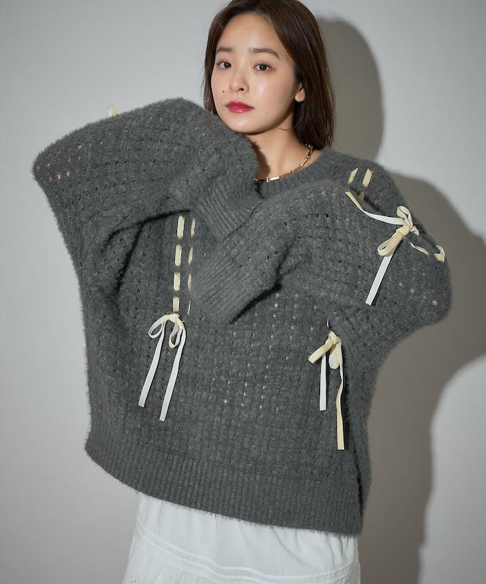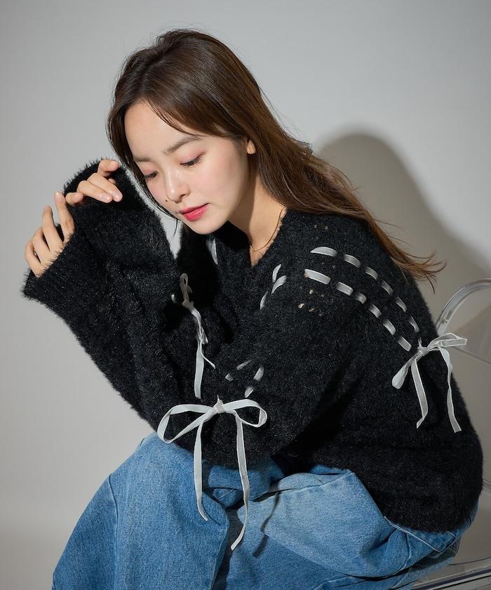 採用絲帶、鏤空和羽毛編織的少女針織衫,造型可愛。