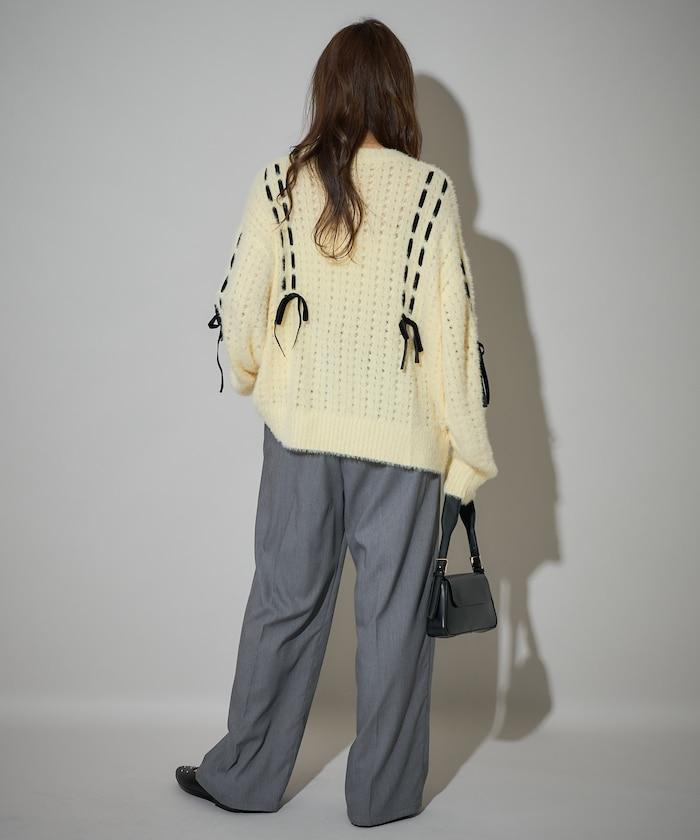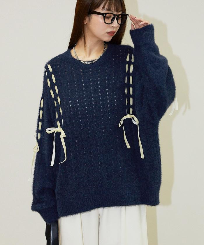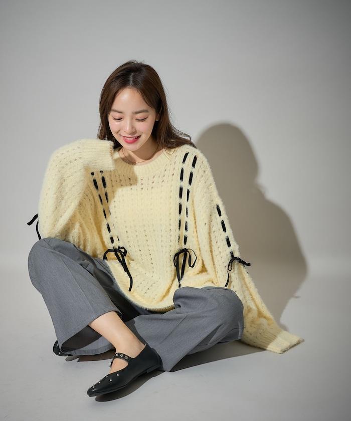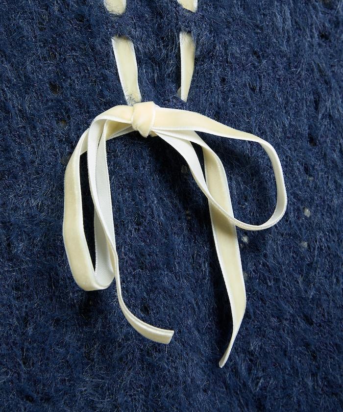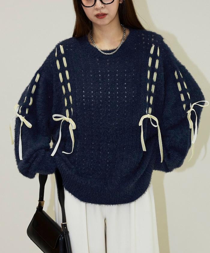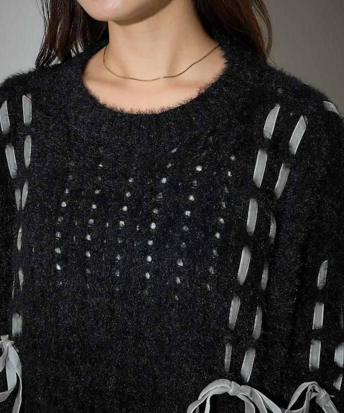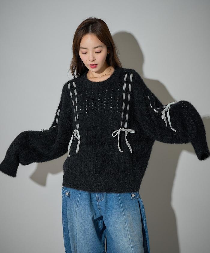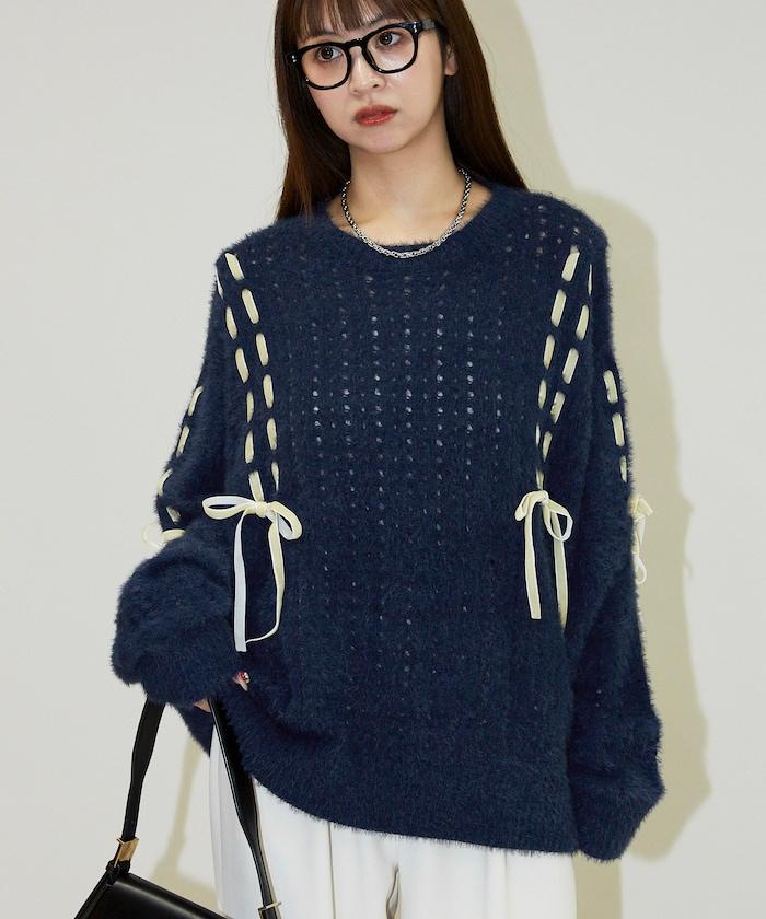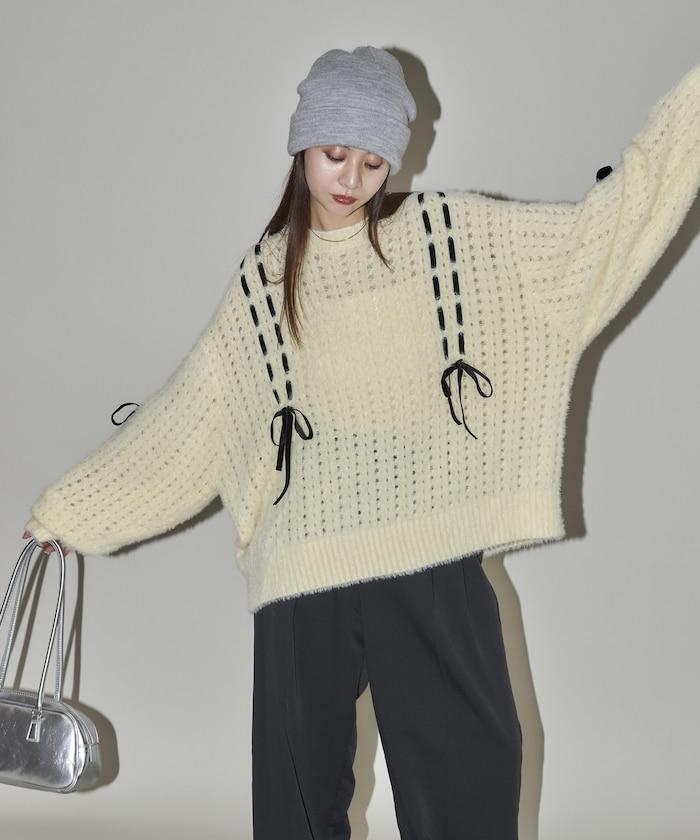 採用絲帶、鏤空和羽毛編織的少女針織衫,造型可愛。