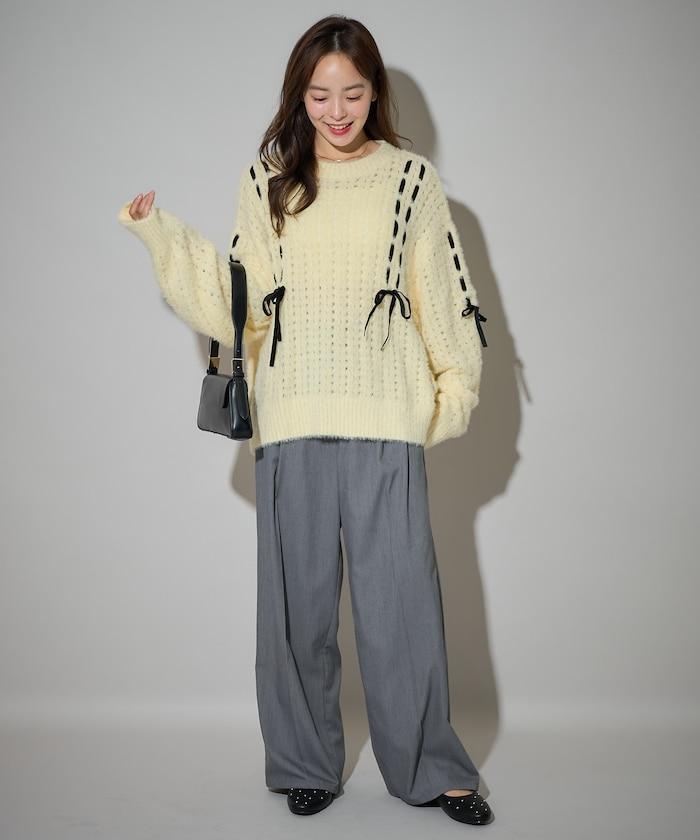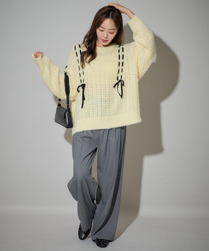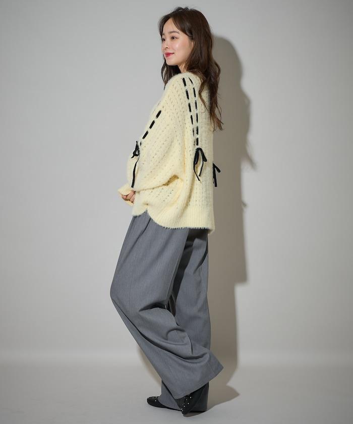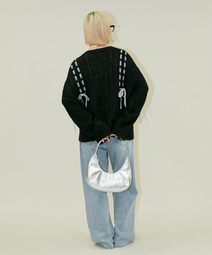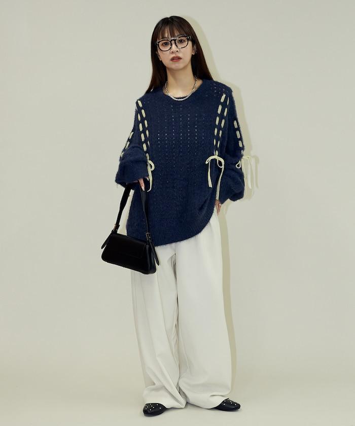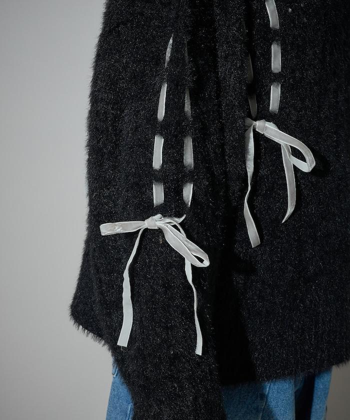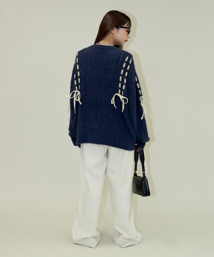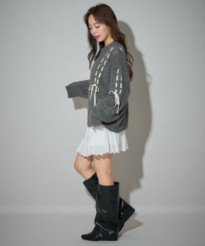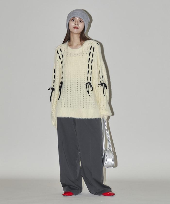 採用絲帶、鏤空和羽毛編織的少女針織衫,造型可愛。