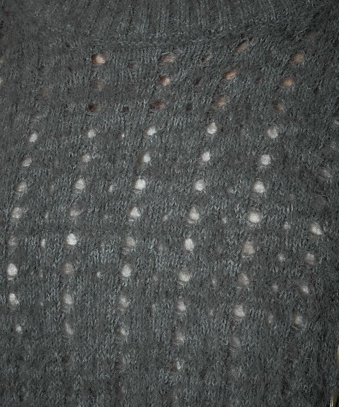 毛茸茸的針織面料具有柔軟蓬鬆的感覺,而鏤空的設計則給人一種寬鬆的感覺。