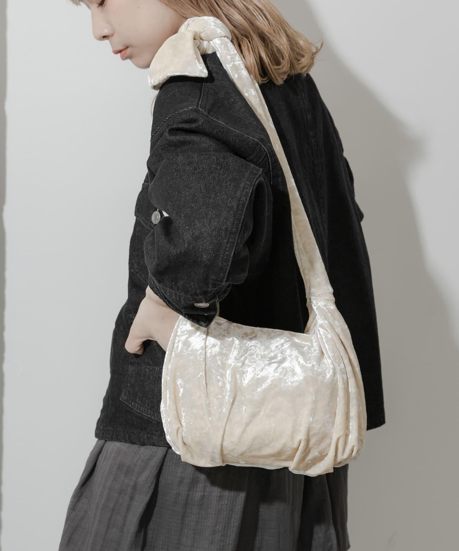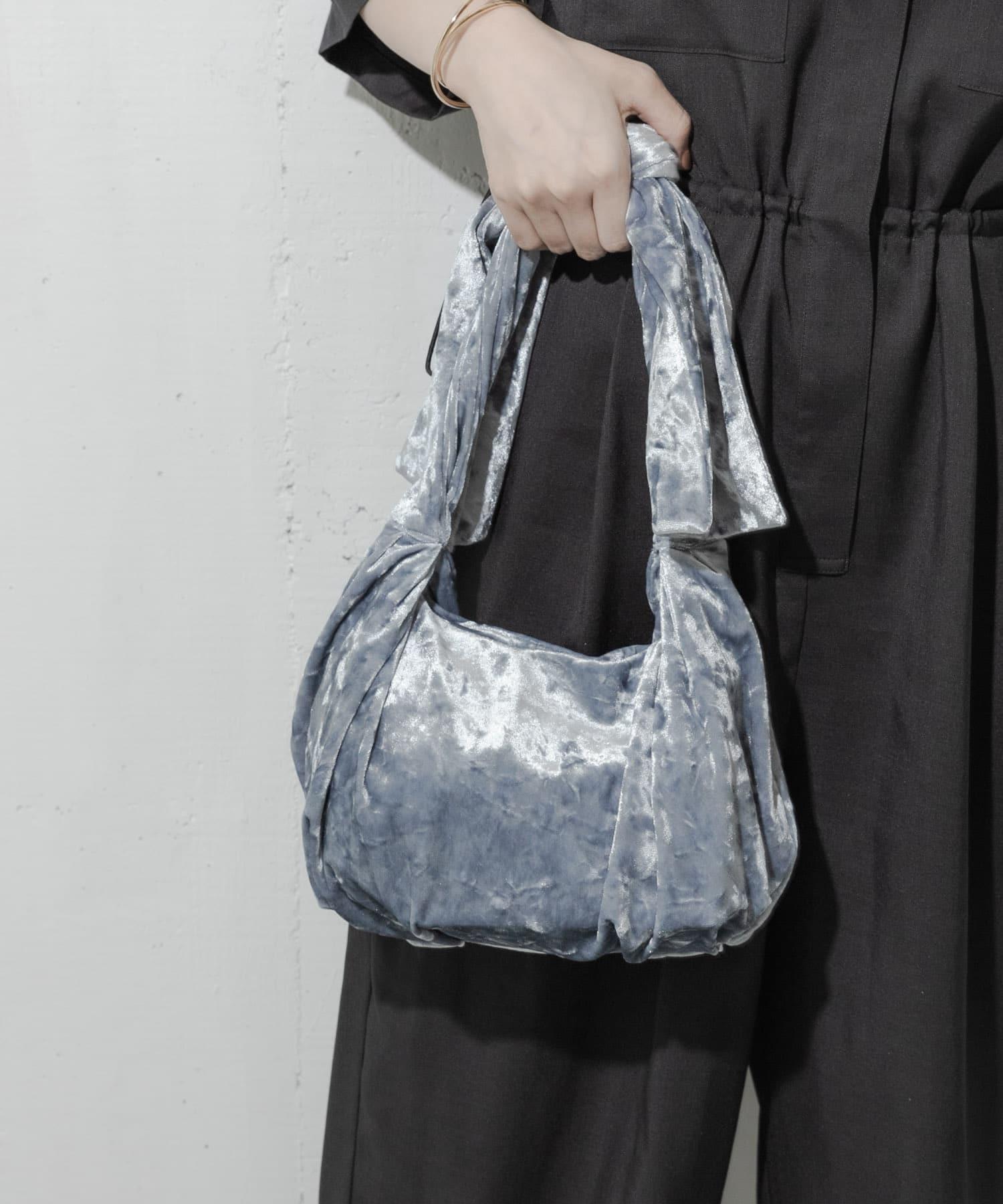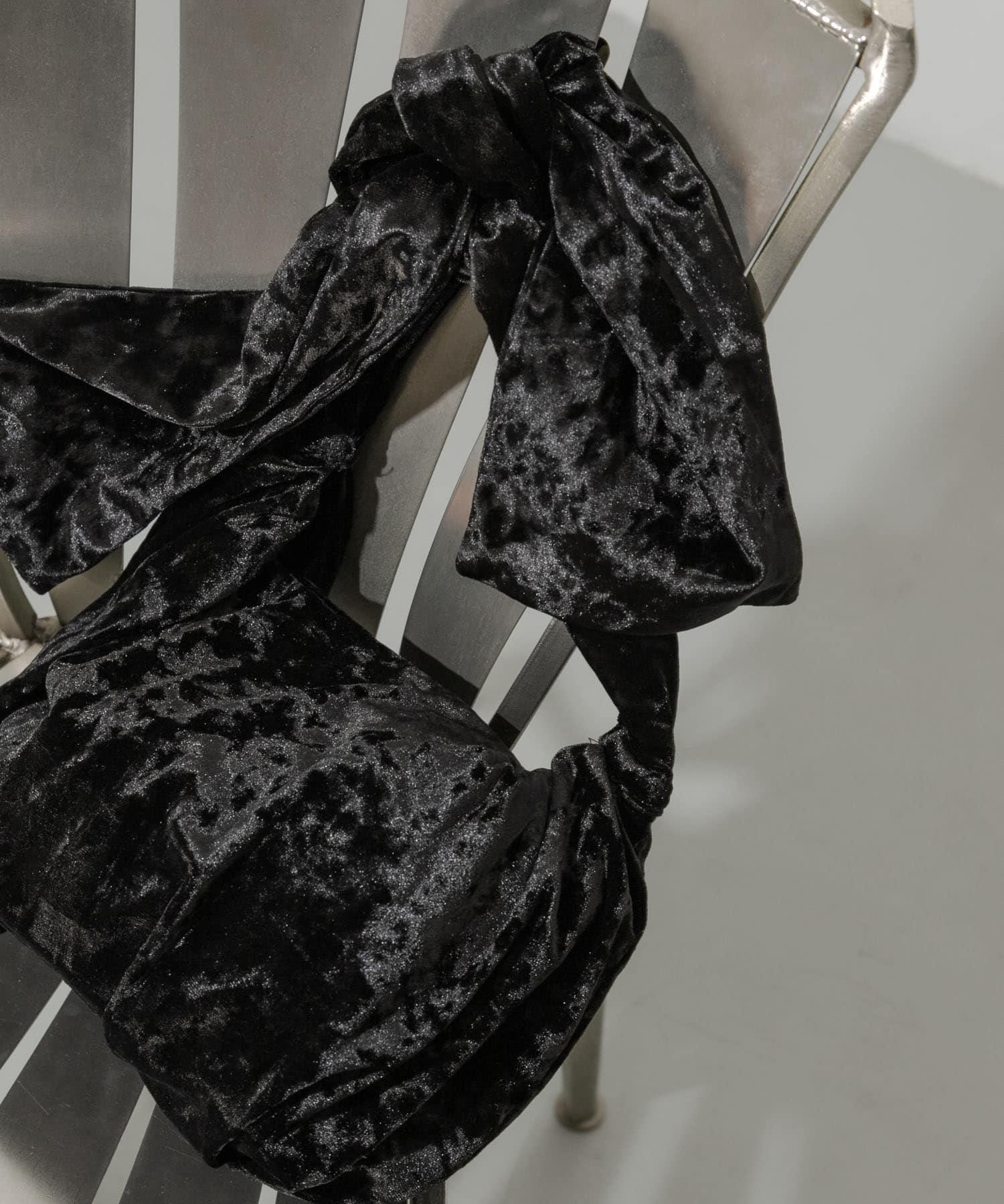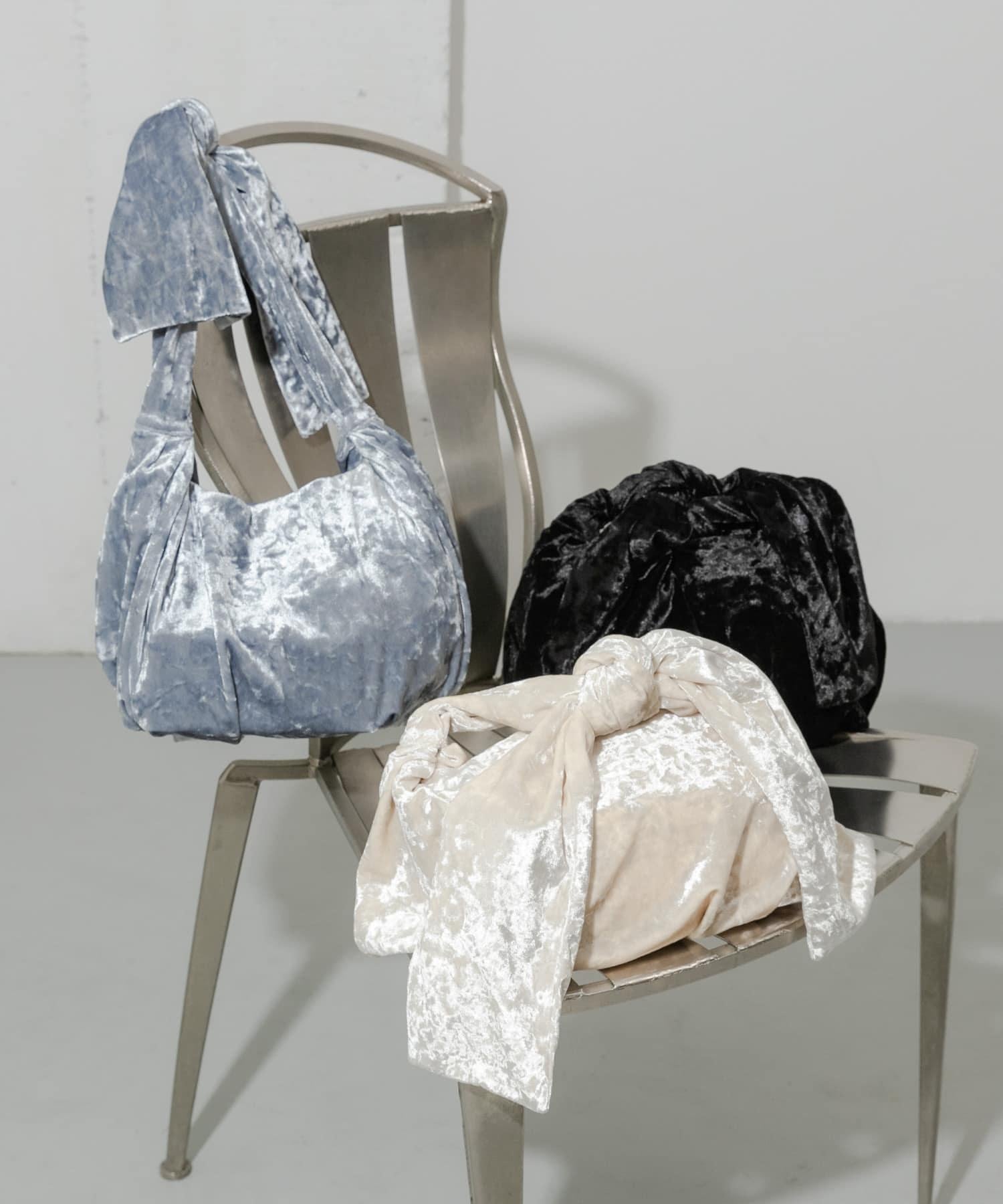 這款手袋採用碎絲絨面料製成,從不同角度看會有不同的表情。