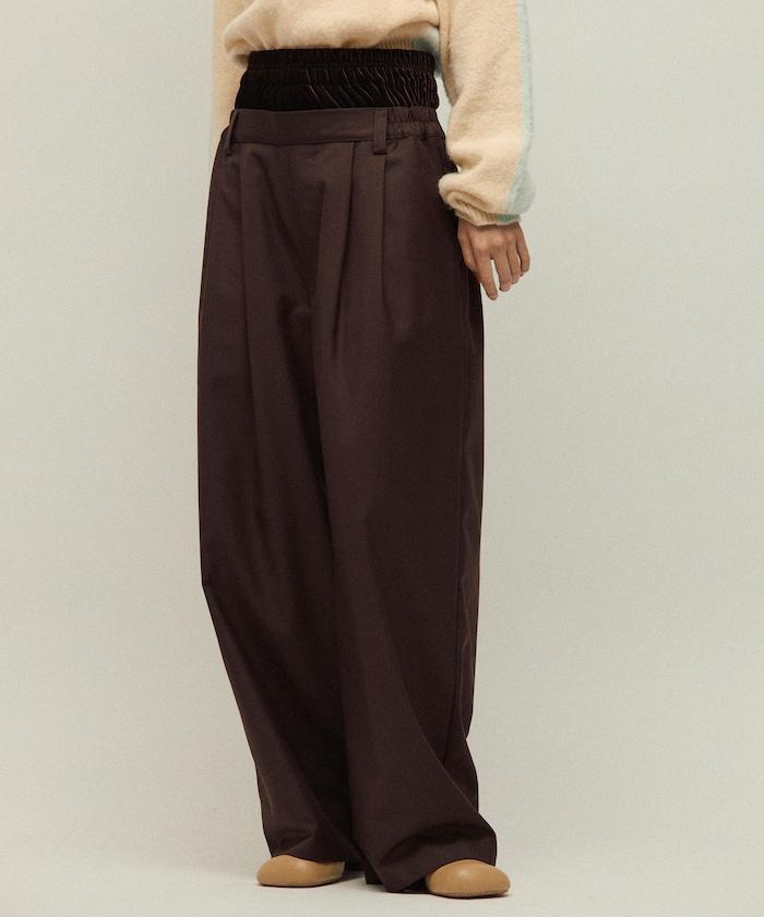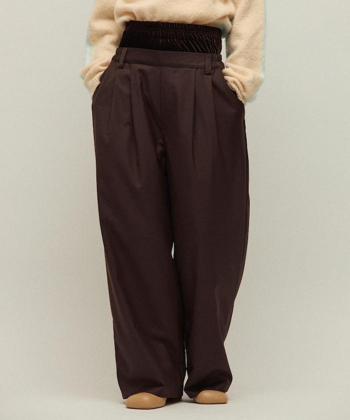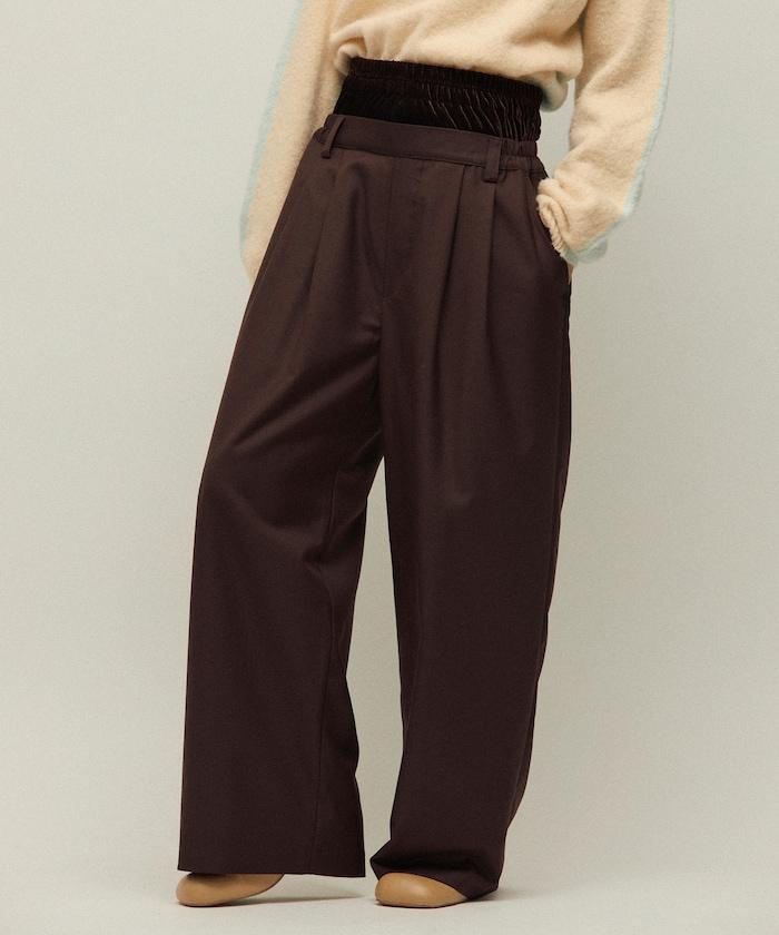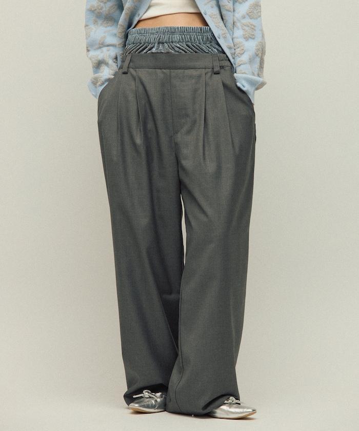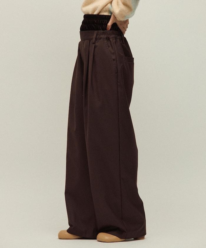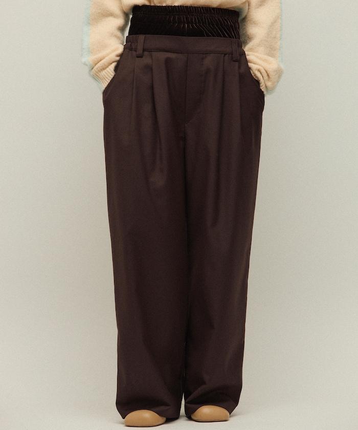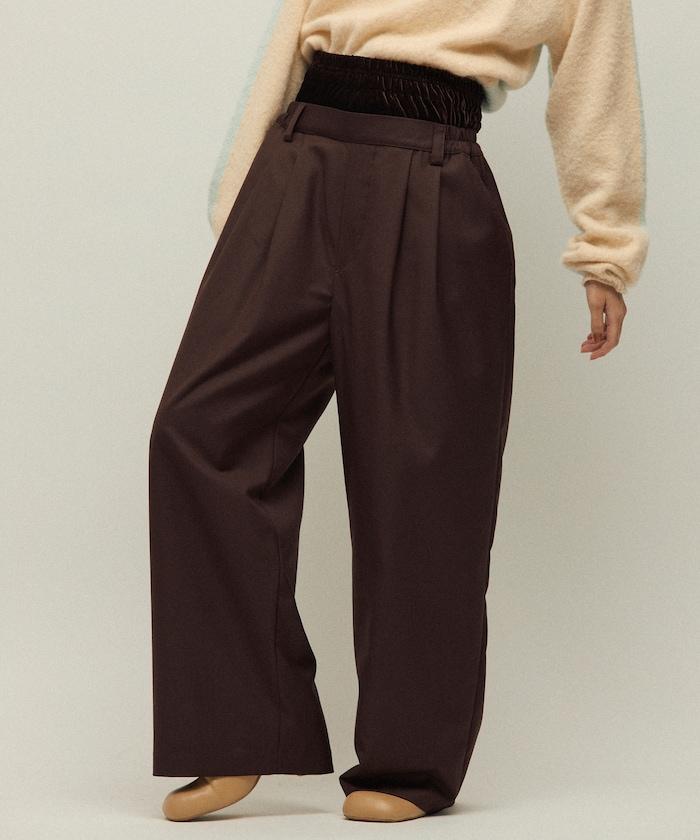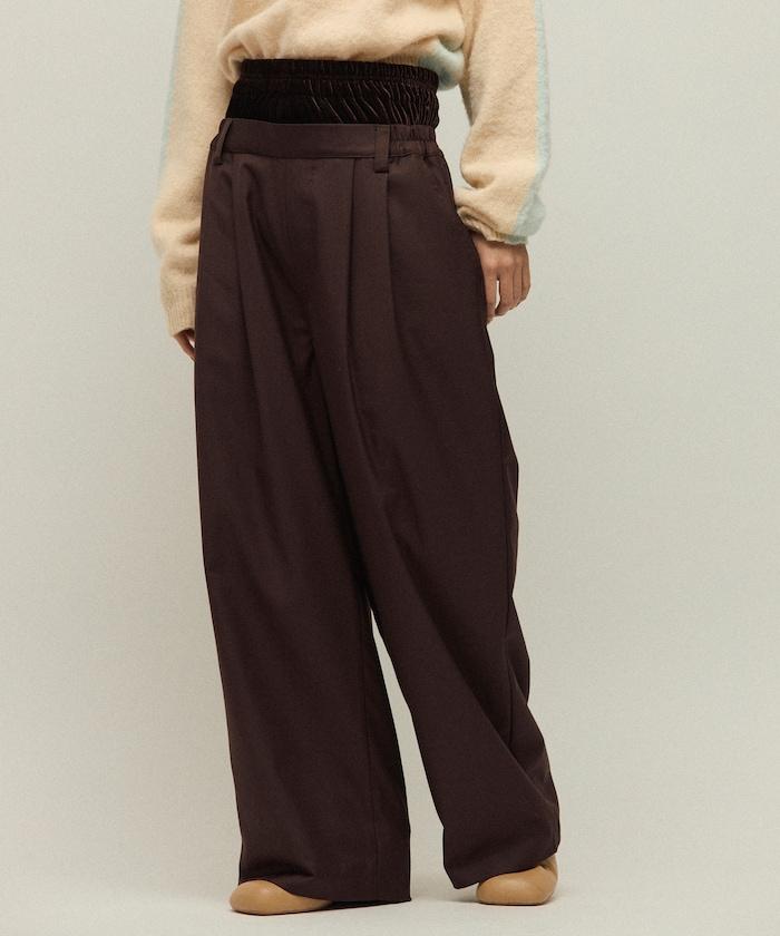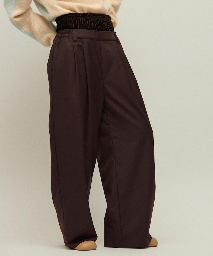 天鵝絨雙腰休閒西裝褲 / 寬鬆版型仿羊毛西裝長褲