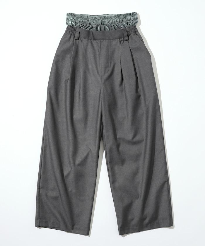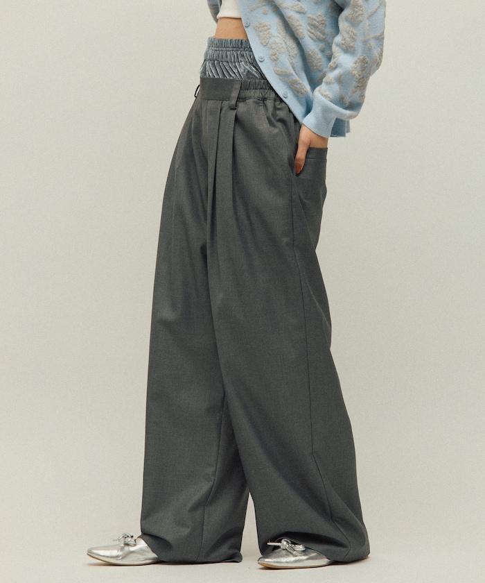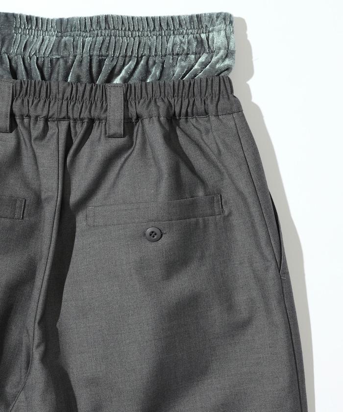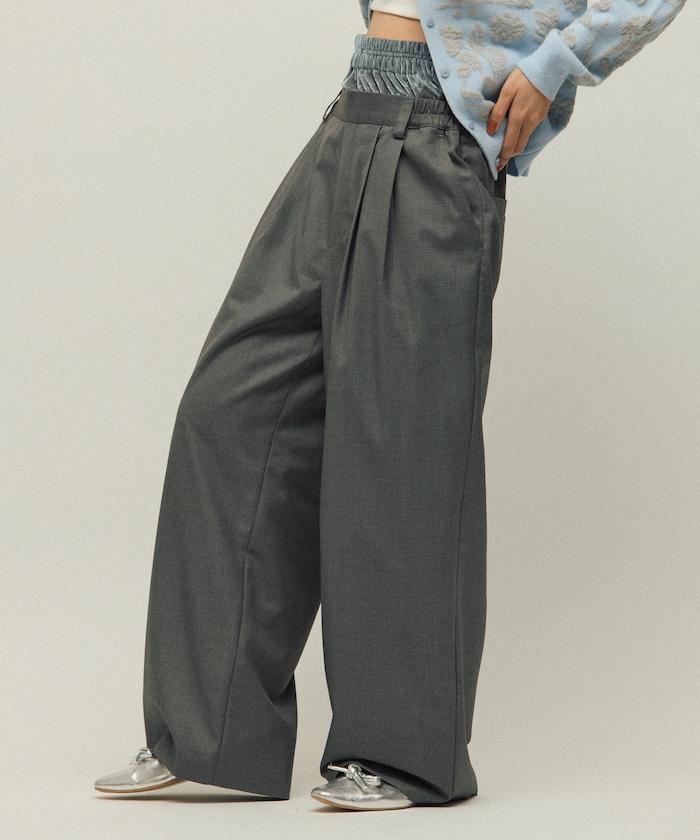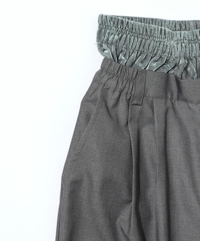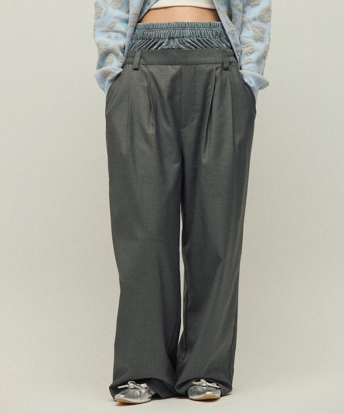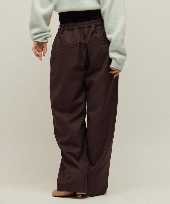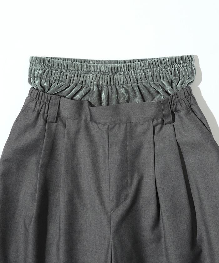 天鵝絨雙腰休閒西裝褲 / 寬鬆版型仿羊毛西裝長褲