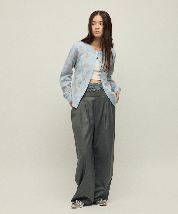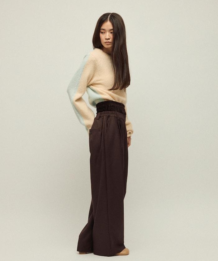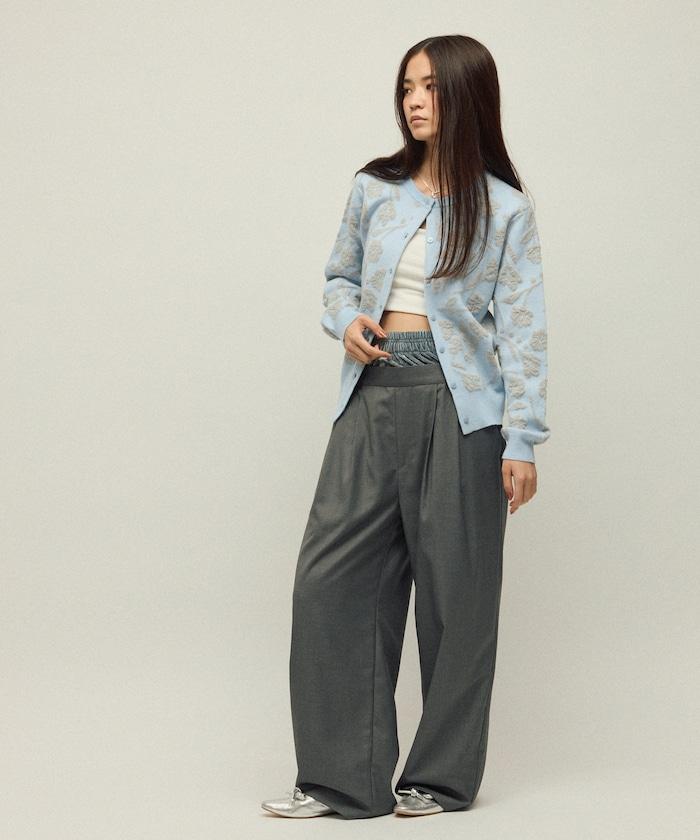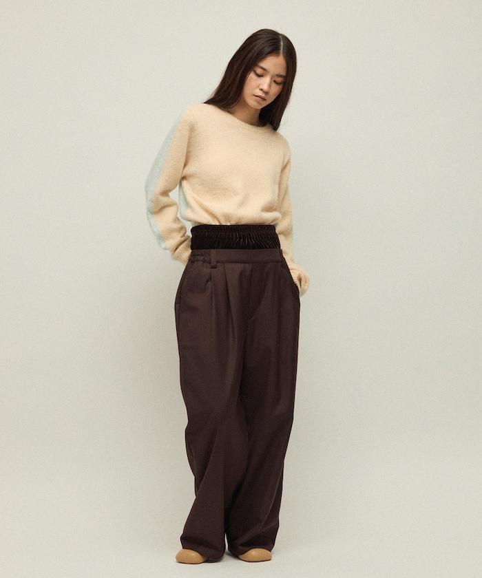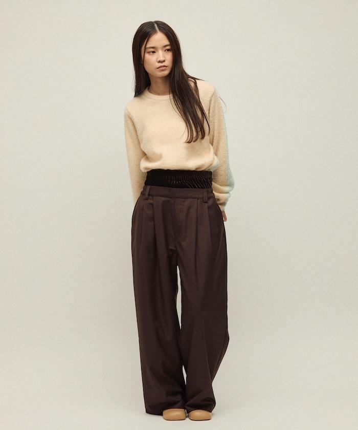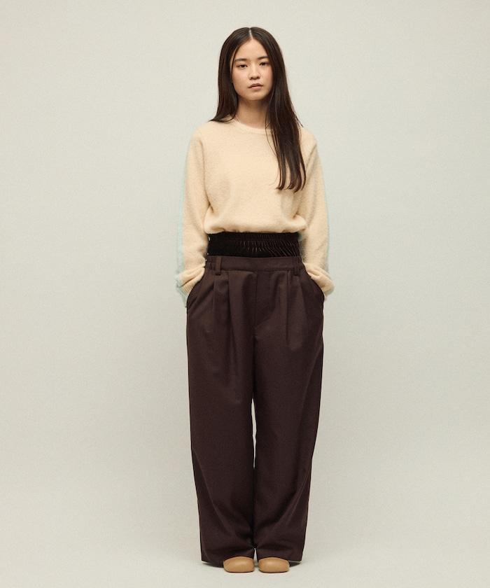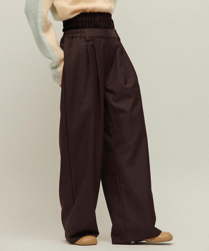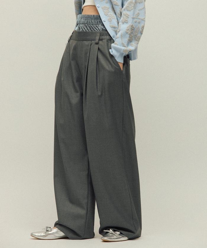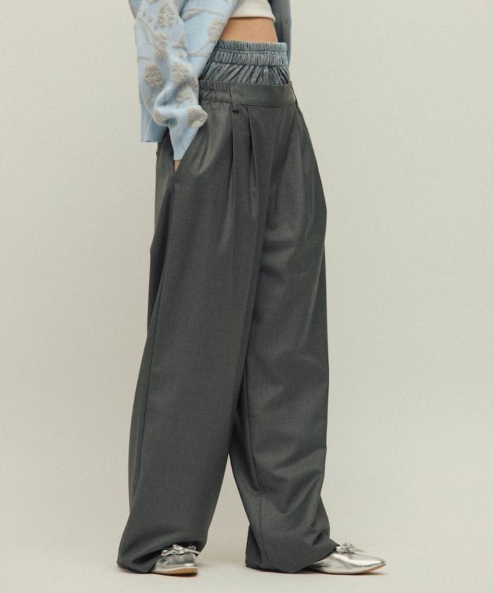 天鵝絨雙腰休閒西裝褲 / 寬鬆版型仿羊毛西裝長褲