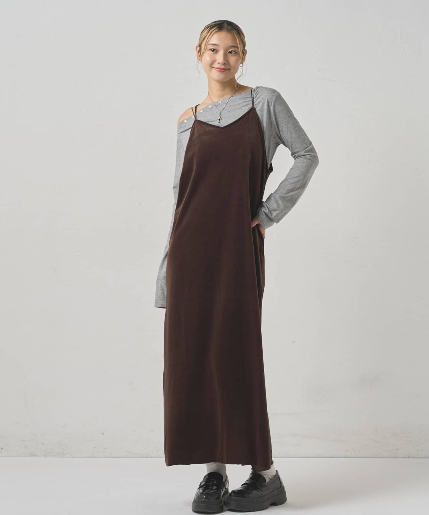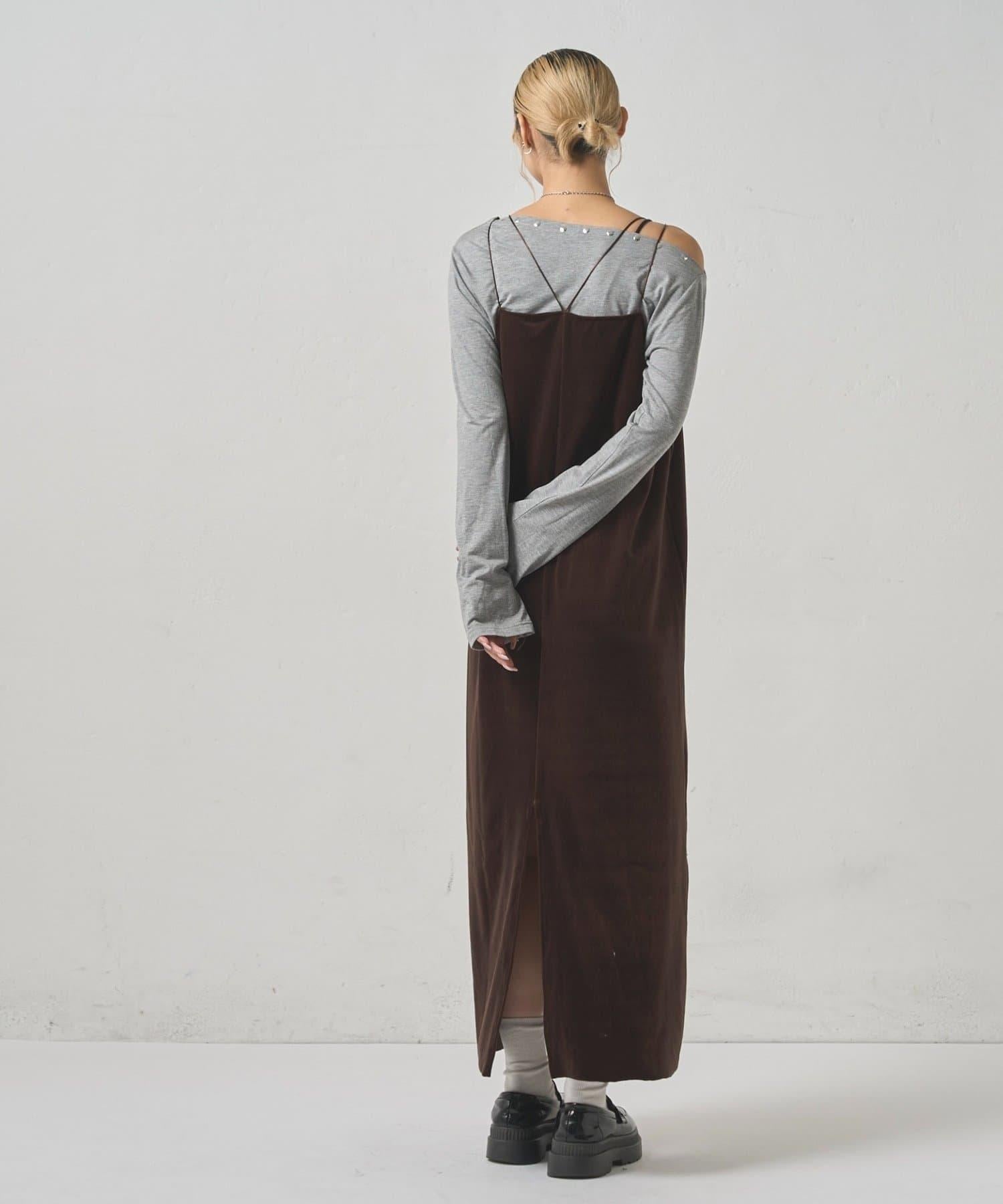 天鵝絨I型吊帶連衣裙