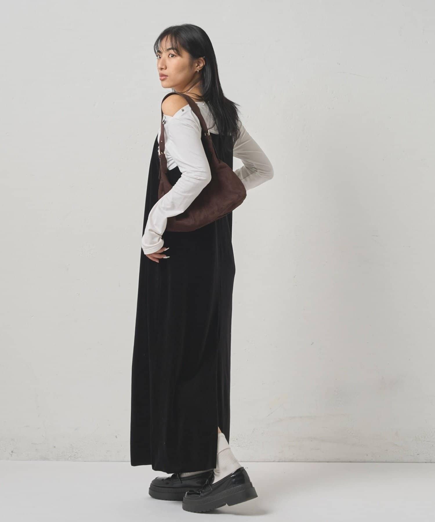 I 字形吊帶連體褲,絲絨材質,光澤優雅。
