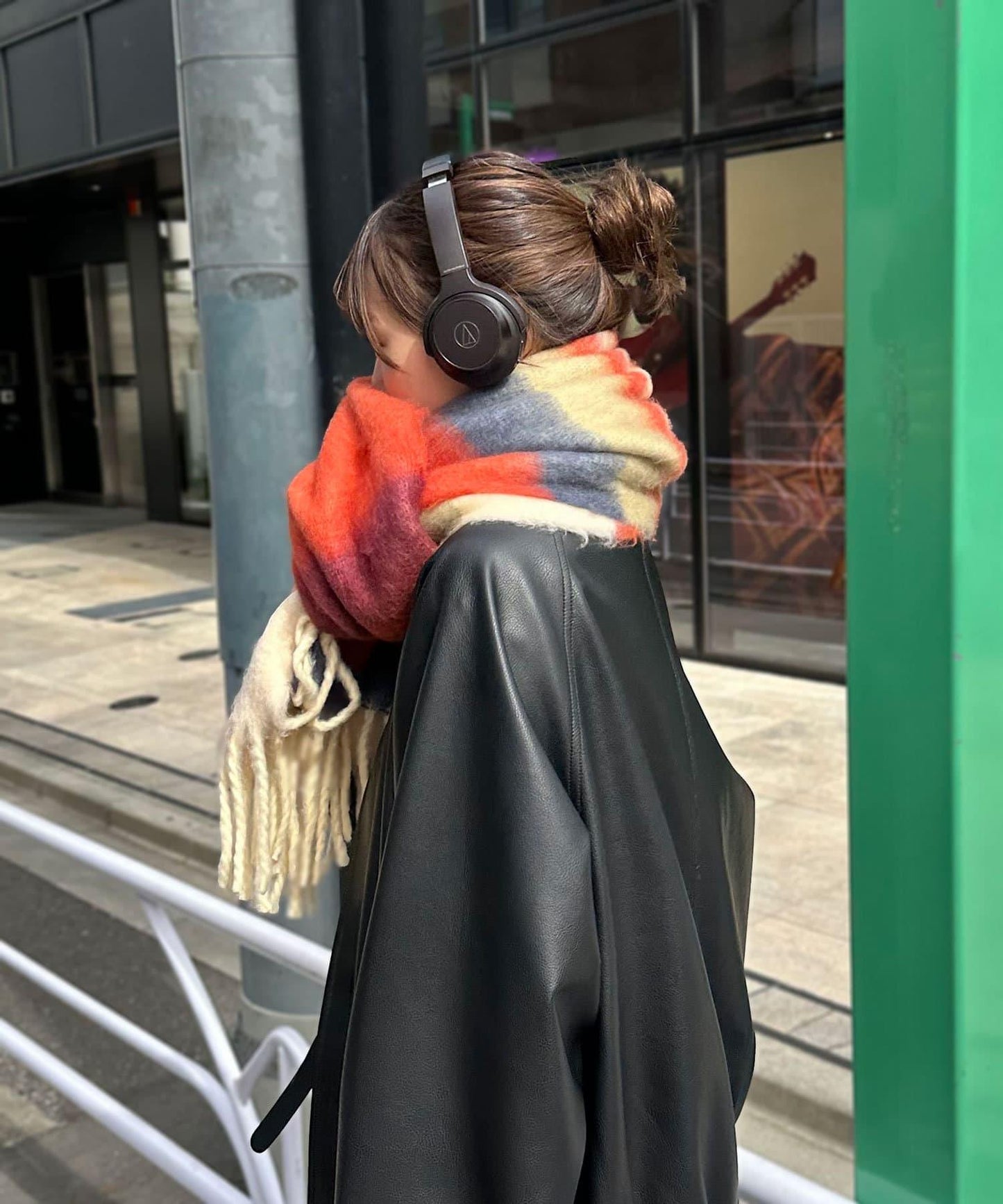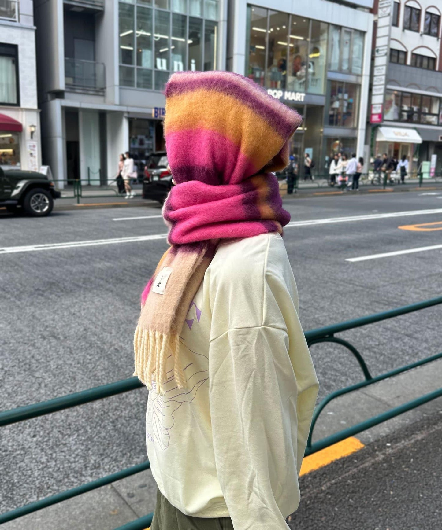 套頭圍巾的絨毛材質兼具輕盈和保暖性,觸感舒適,是禦寒的絕佳選擇。