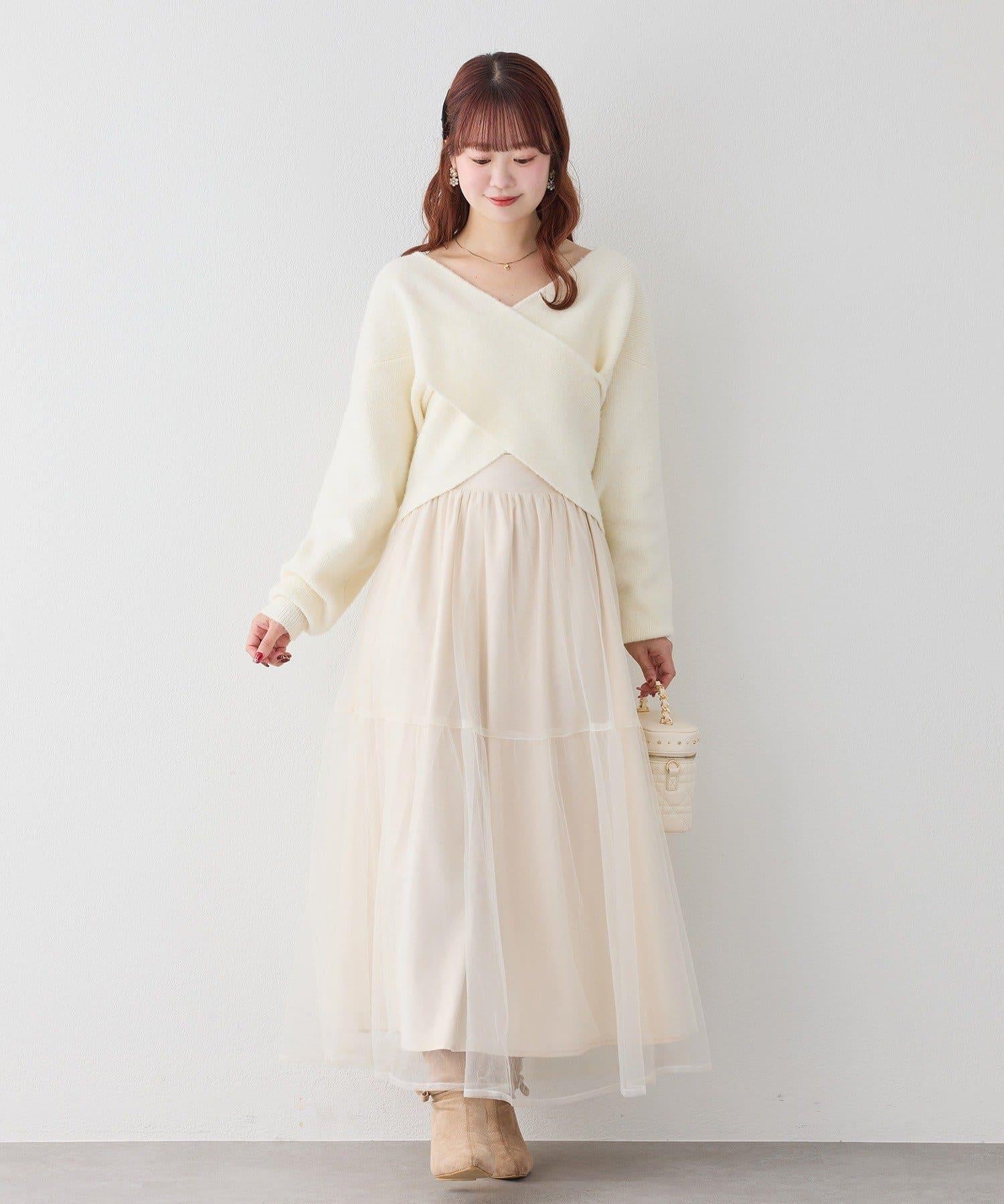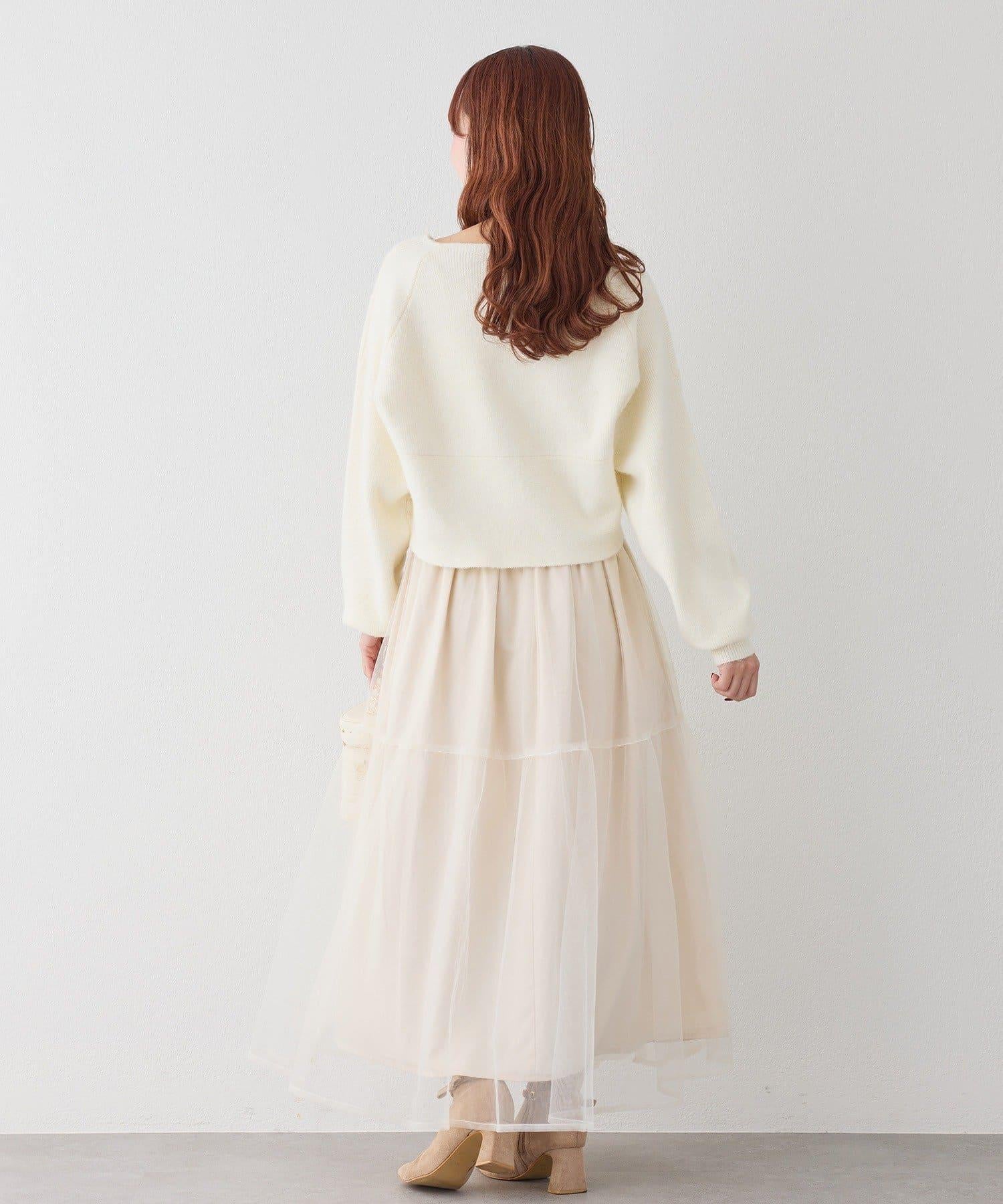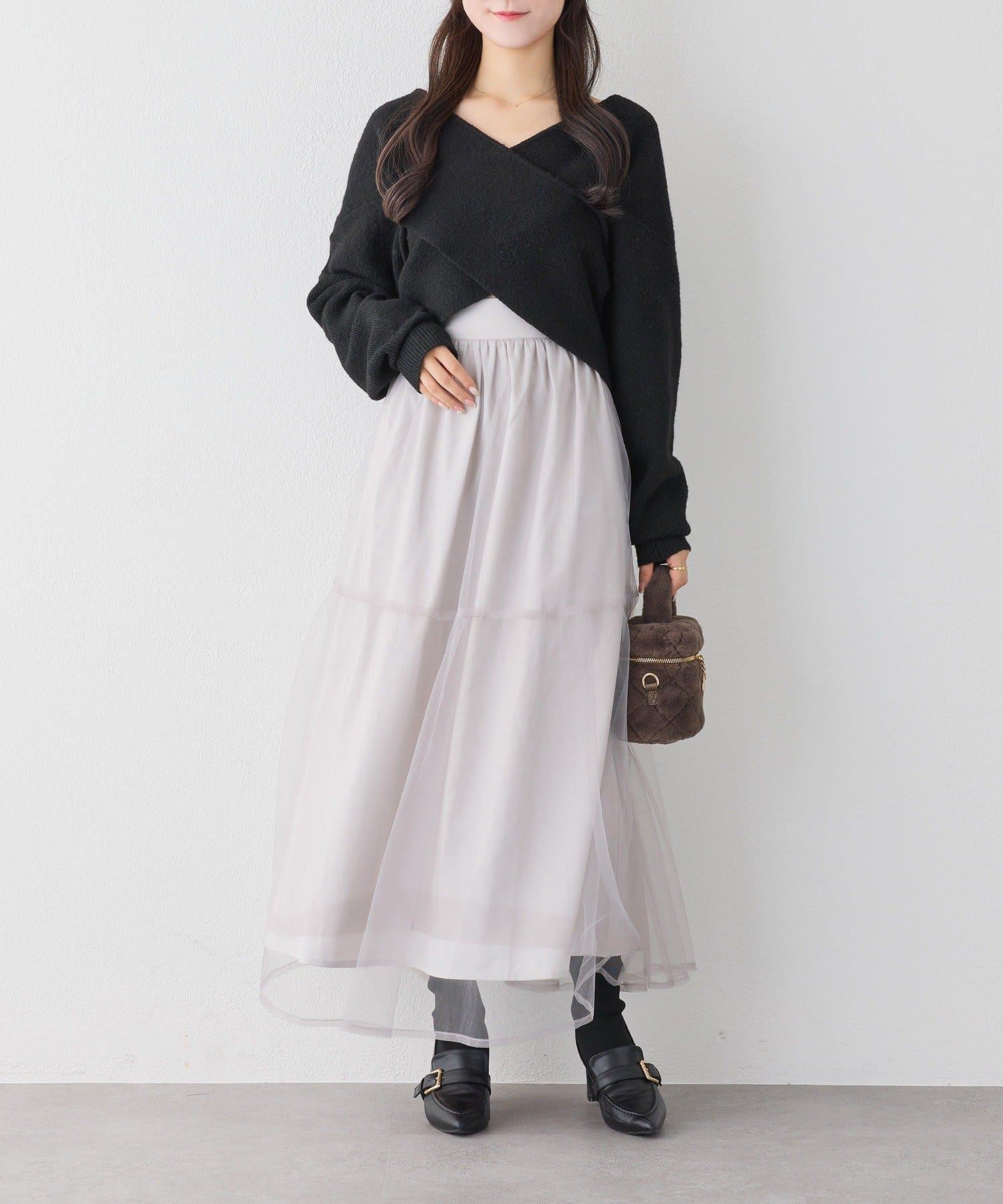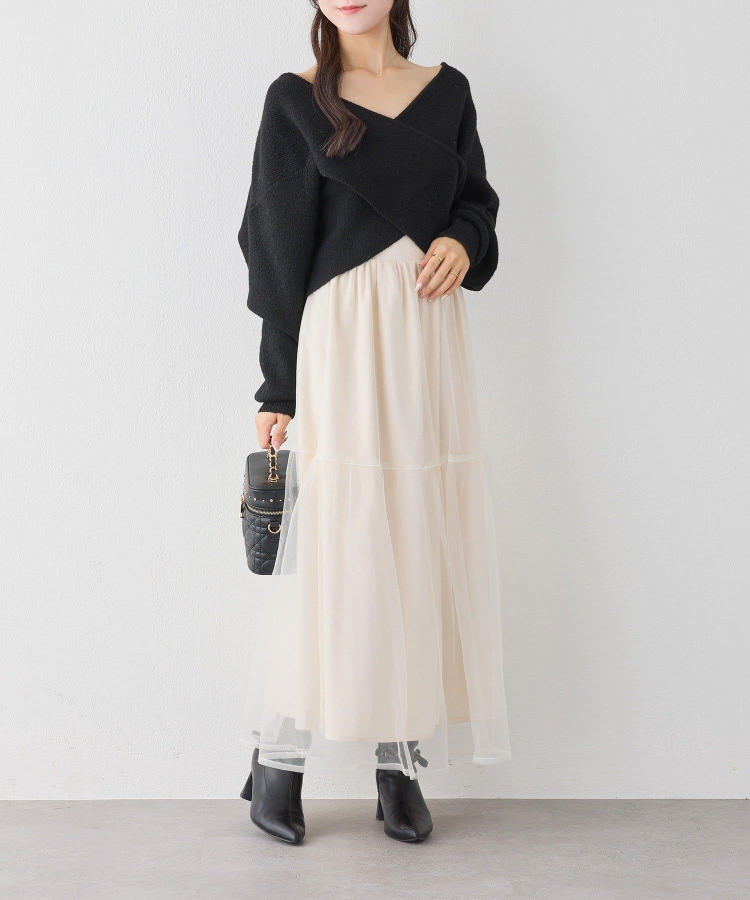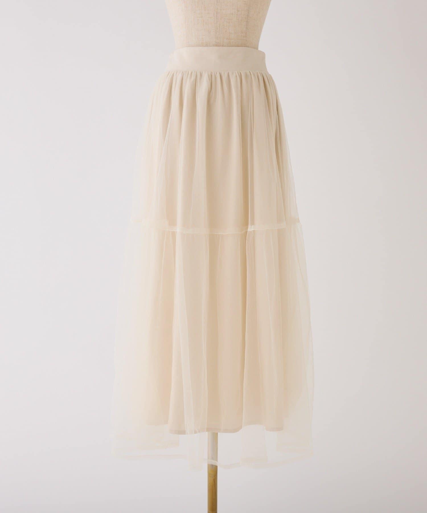 喇叭形長裙由柔軟輕盈的薄紗製成。