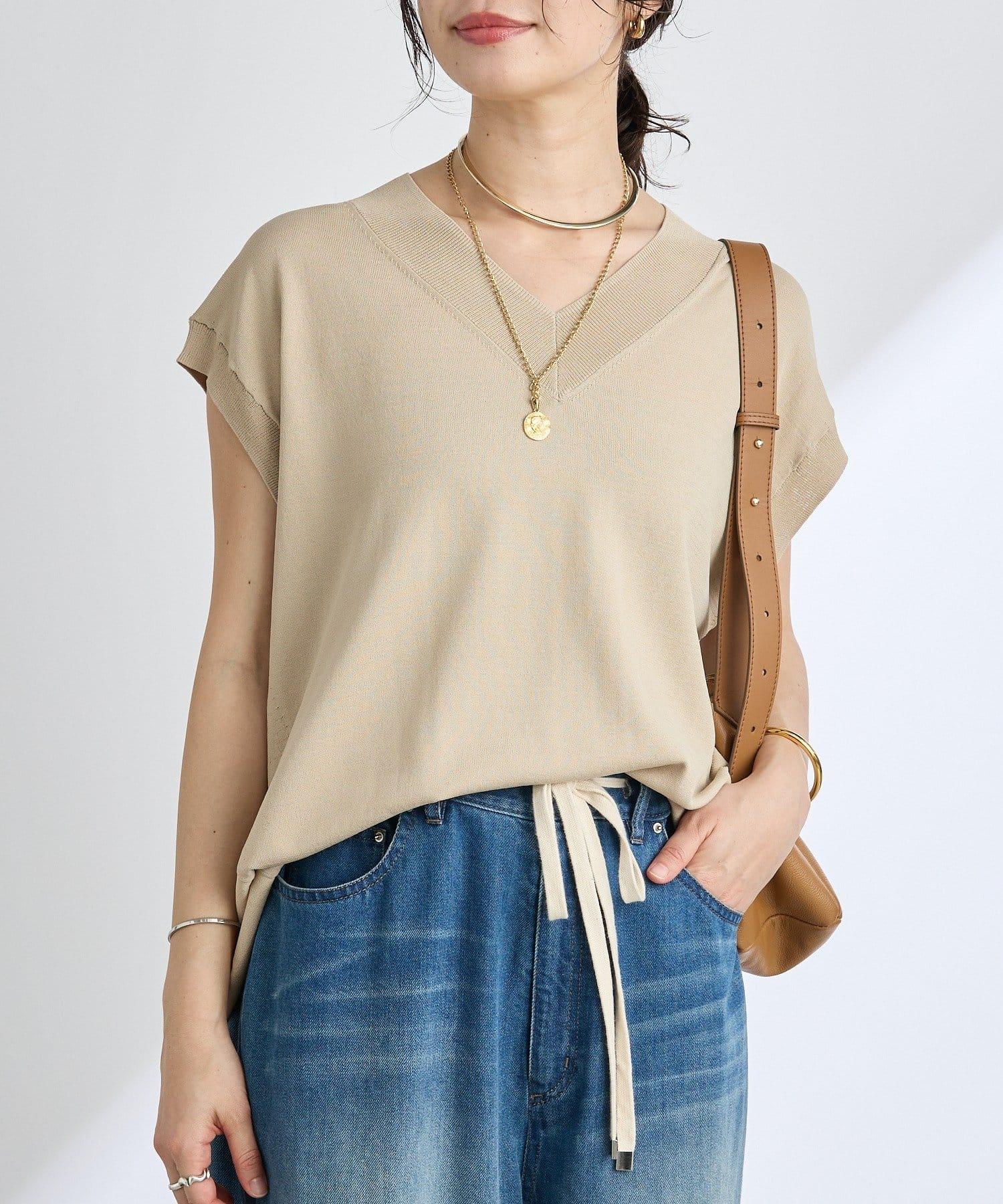 V 領針織衫採用粘膠面料,手感涼爽,穿著舒適。