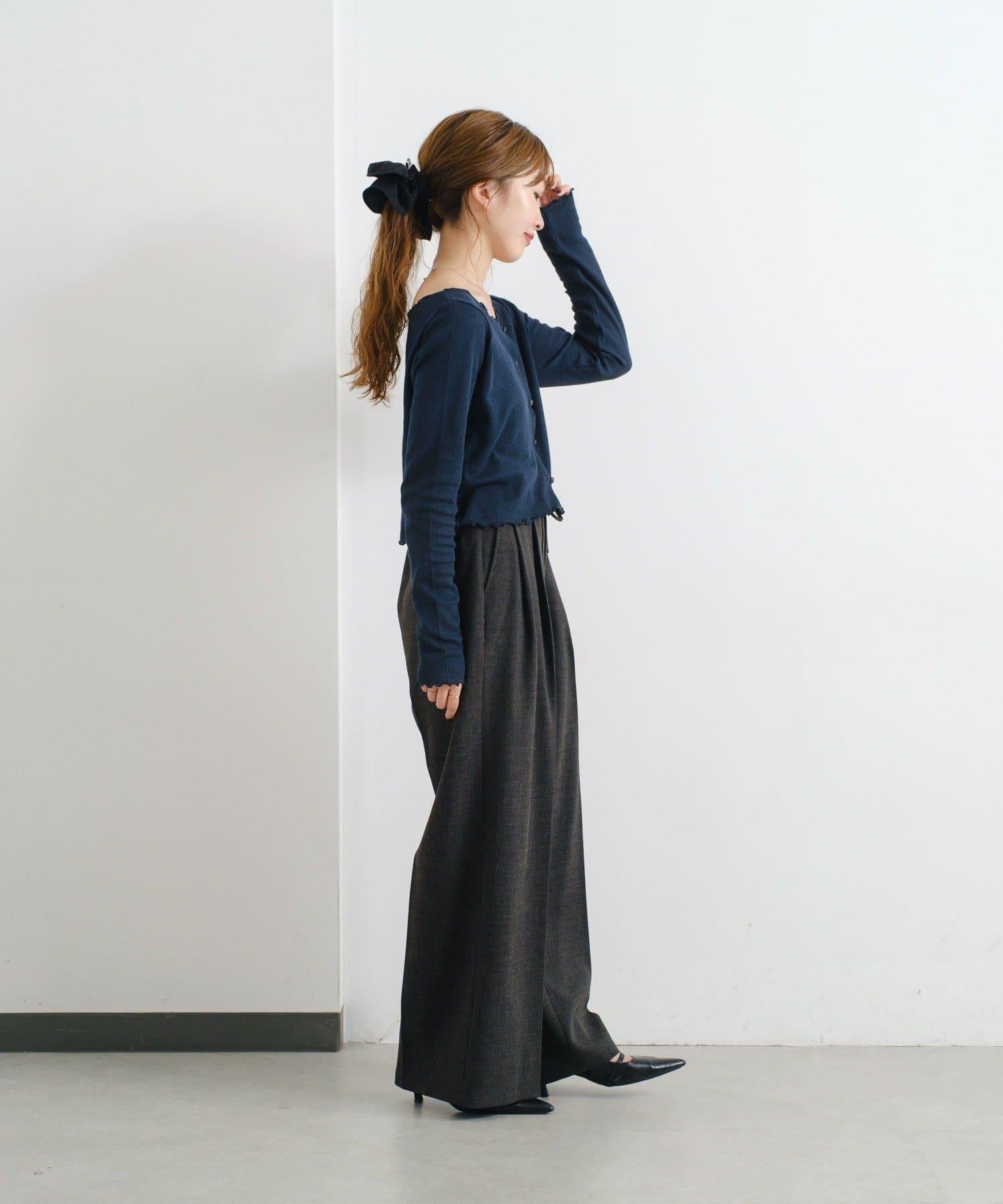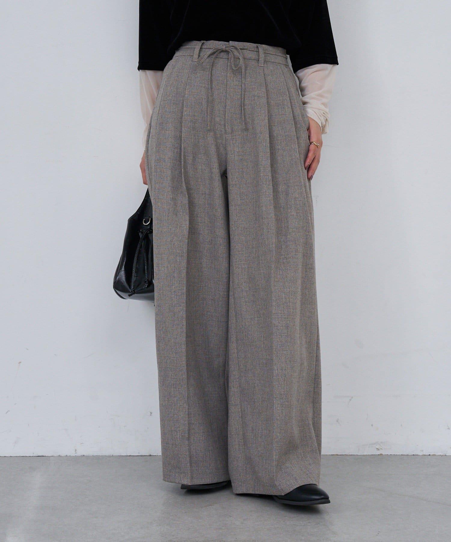 輕鬆休閒褲,腰部緞帶寬鬆整齊。