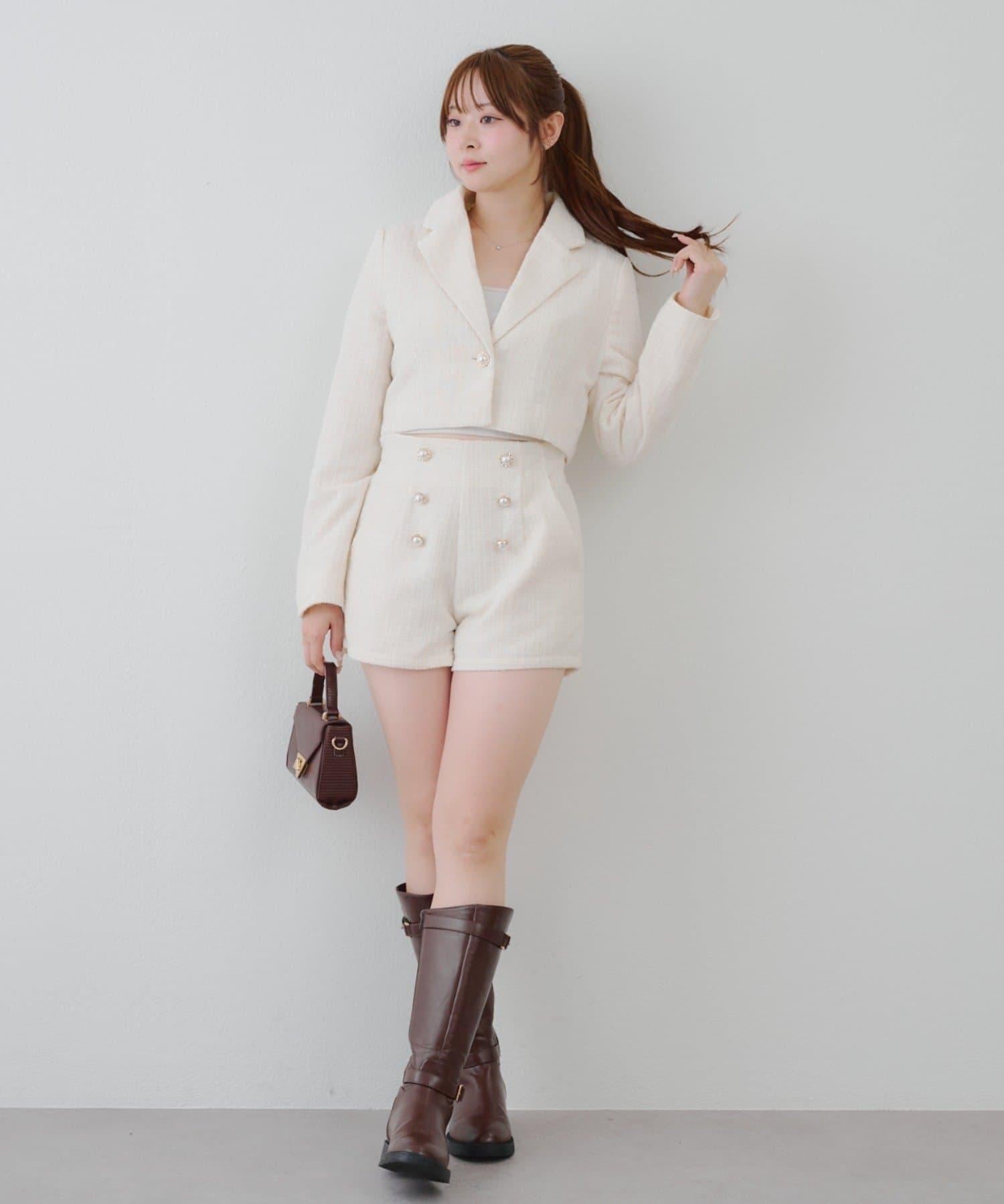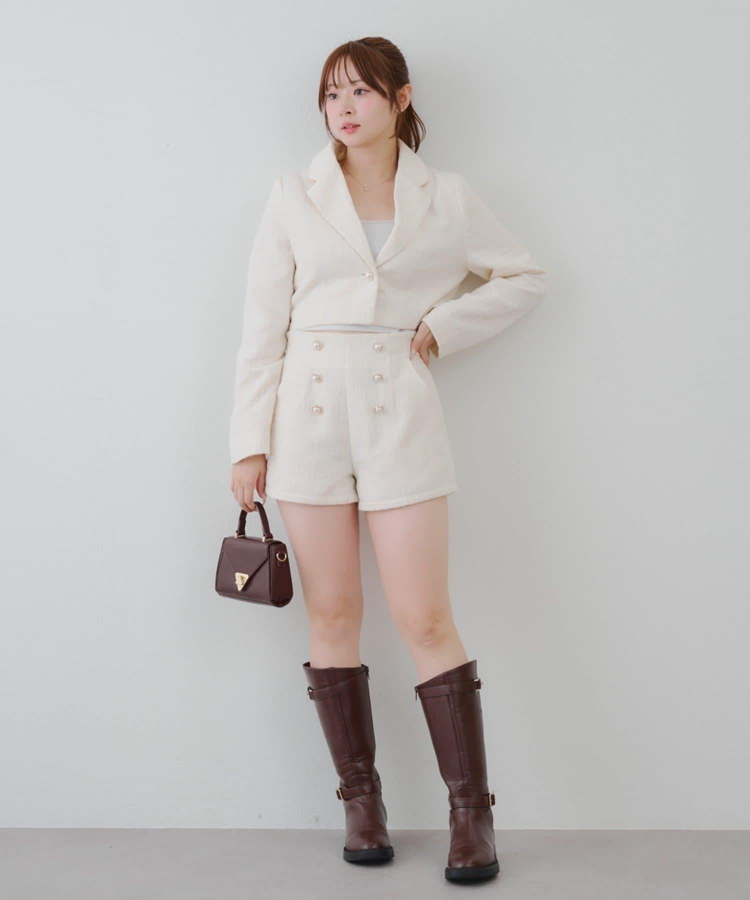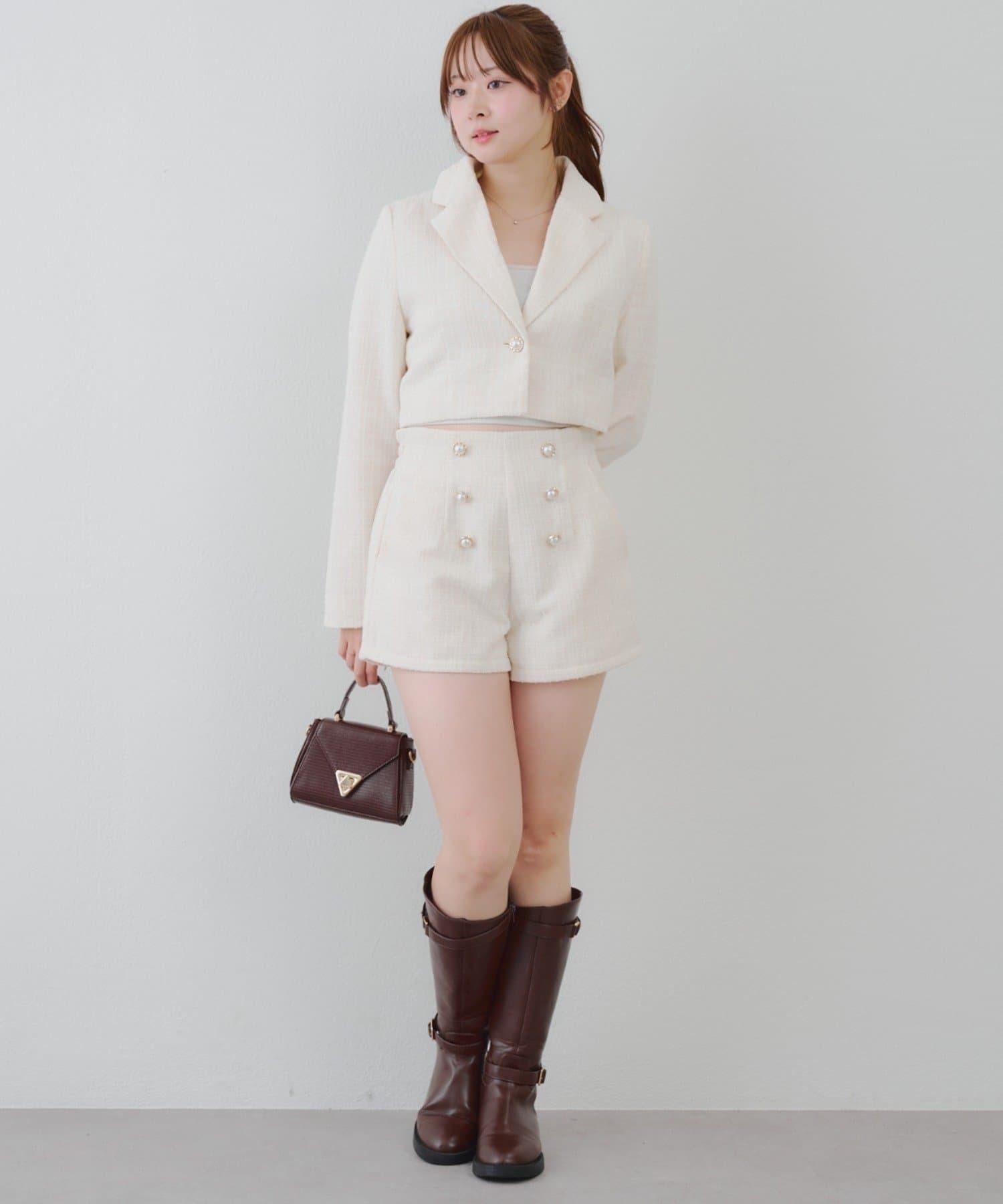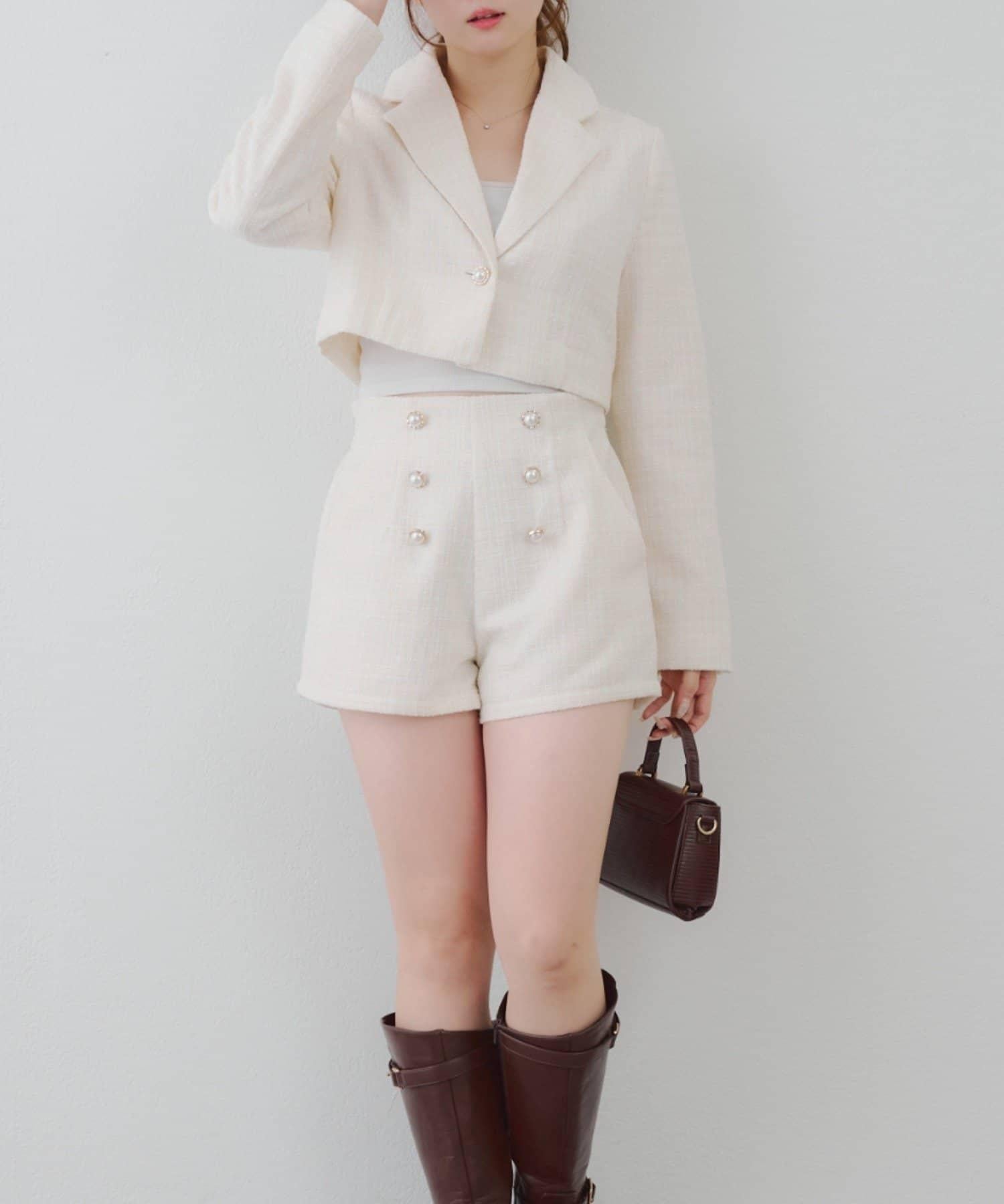 金色紐扣斜紋軟呢短褲 編號:0852020330