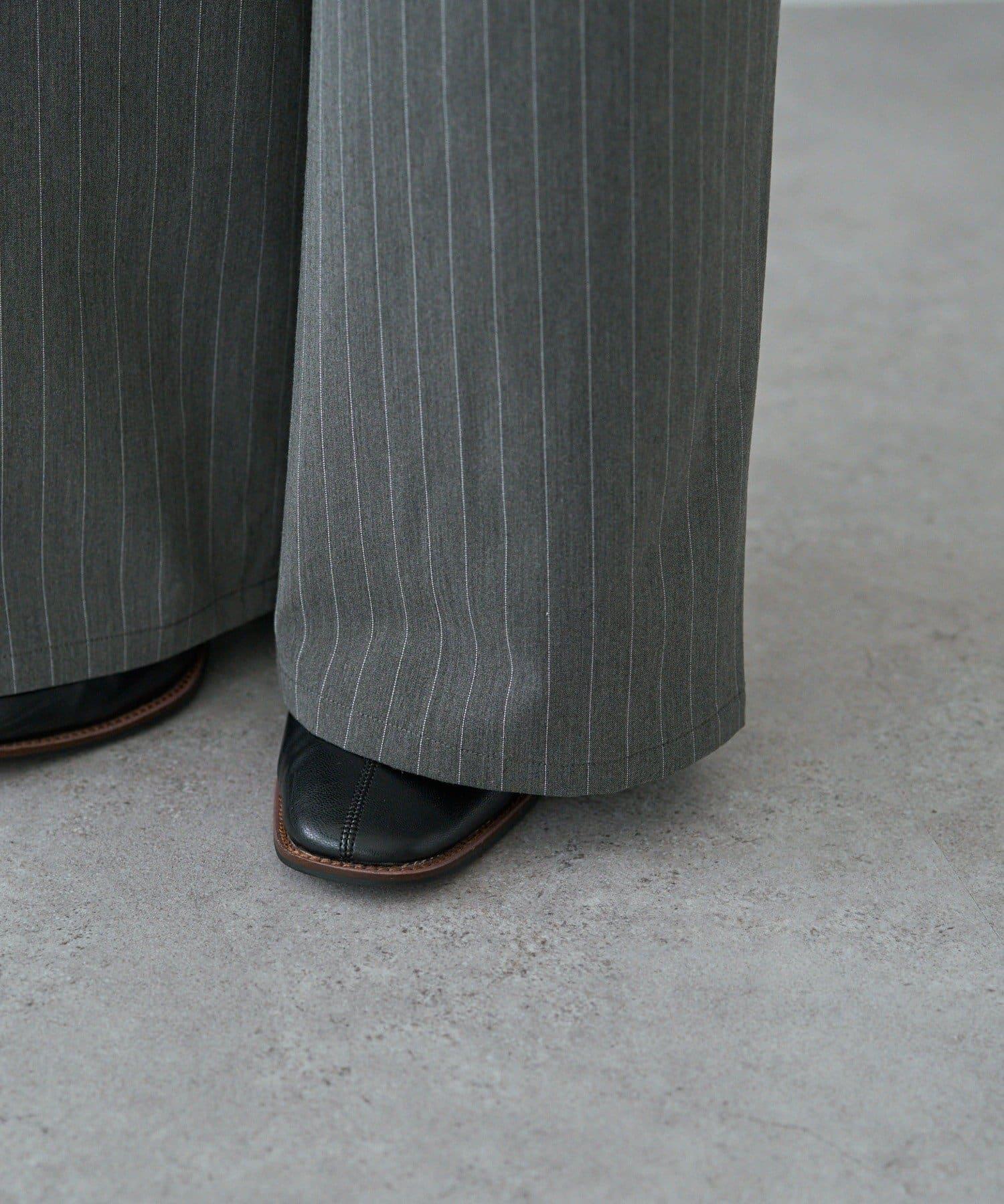 輕柔的 V 形胸甲勾勒出女性化的線條,為偏向男裝的設計增添了柔和的印象。