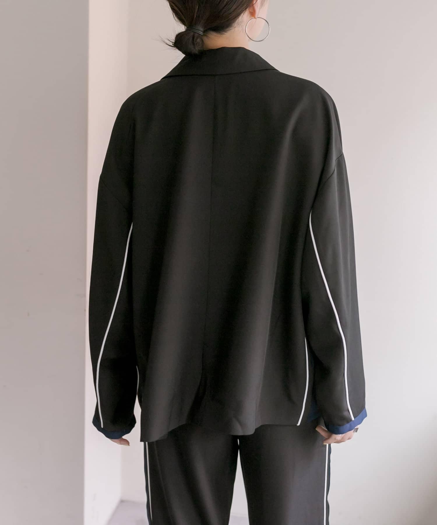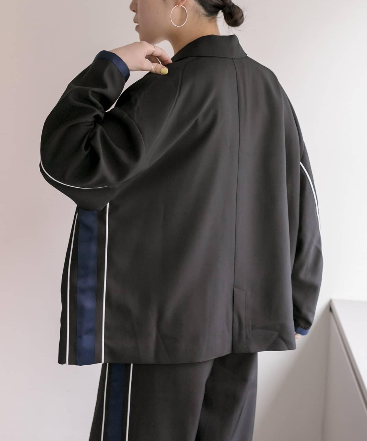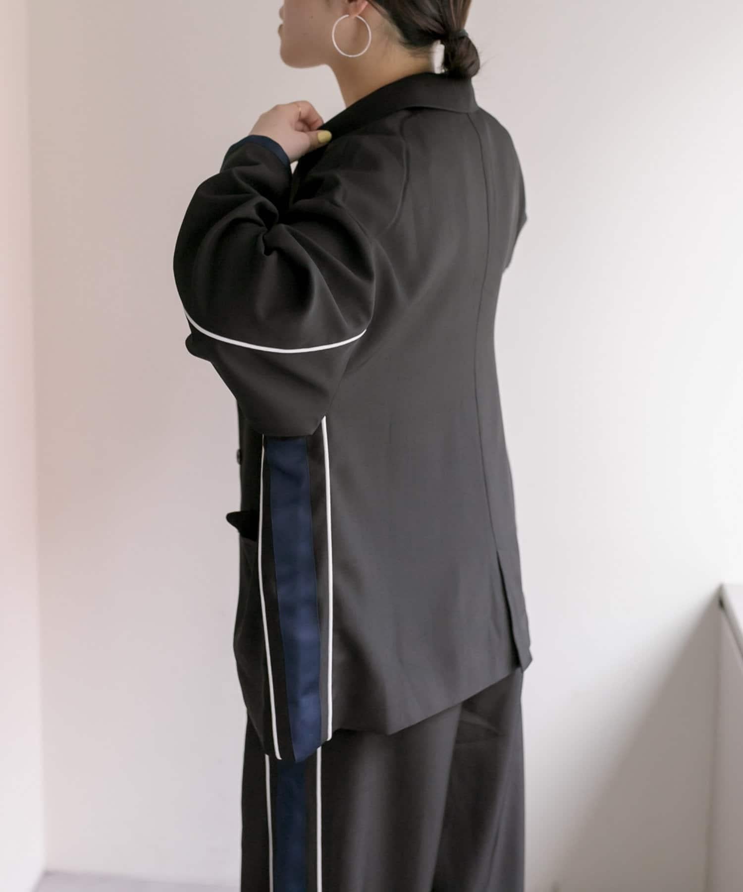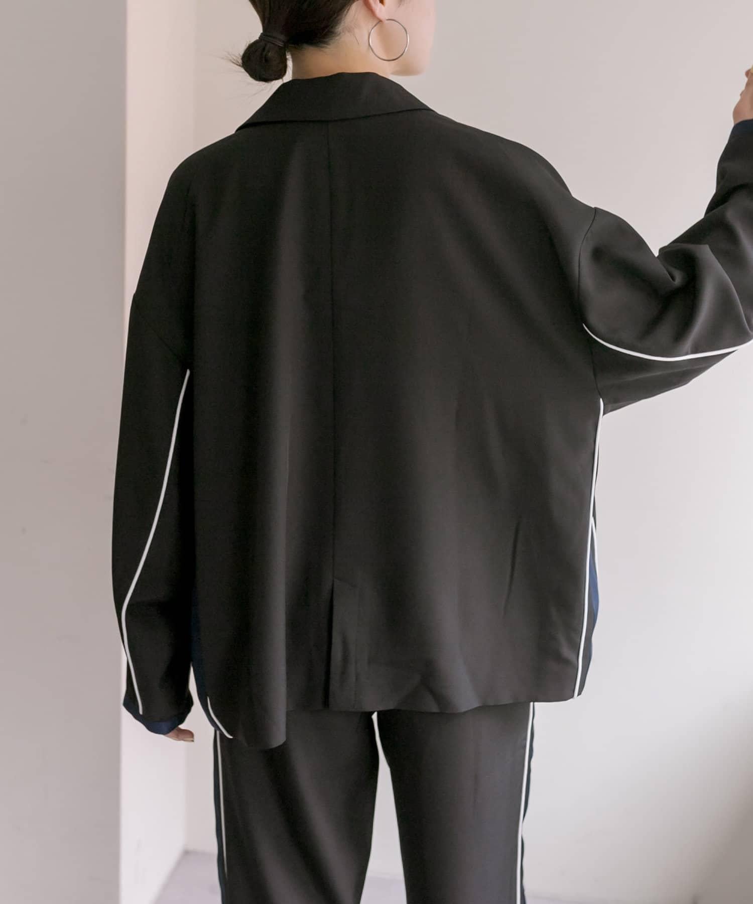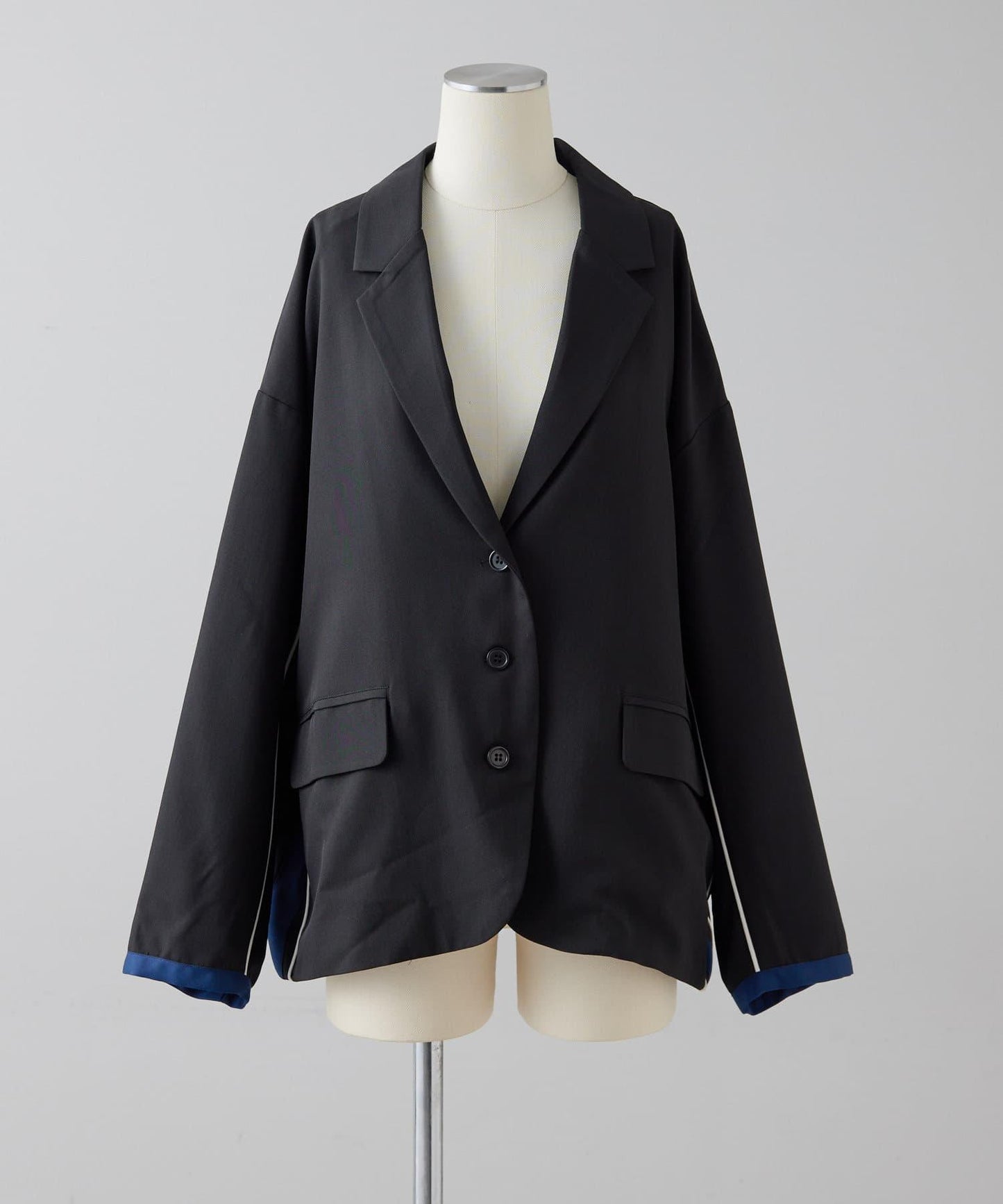這款夾克的設計將寬大的線條與纖細的線條相結合。