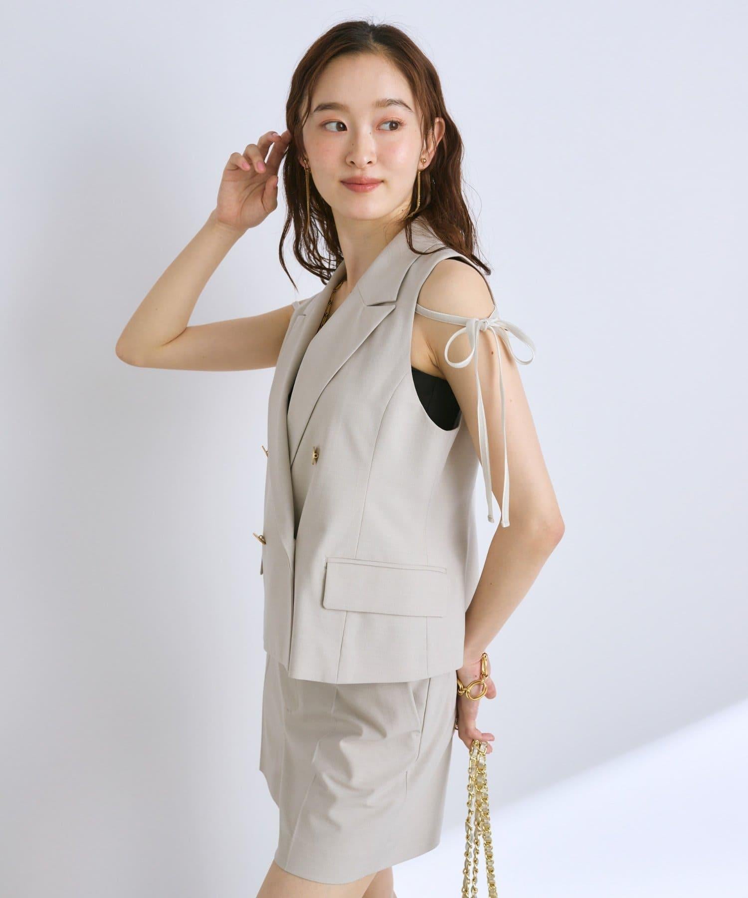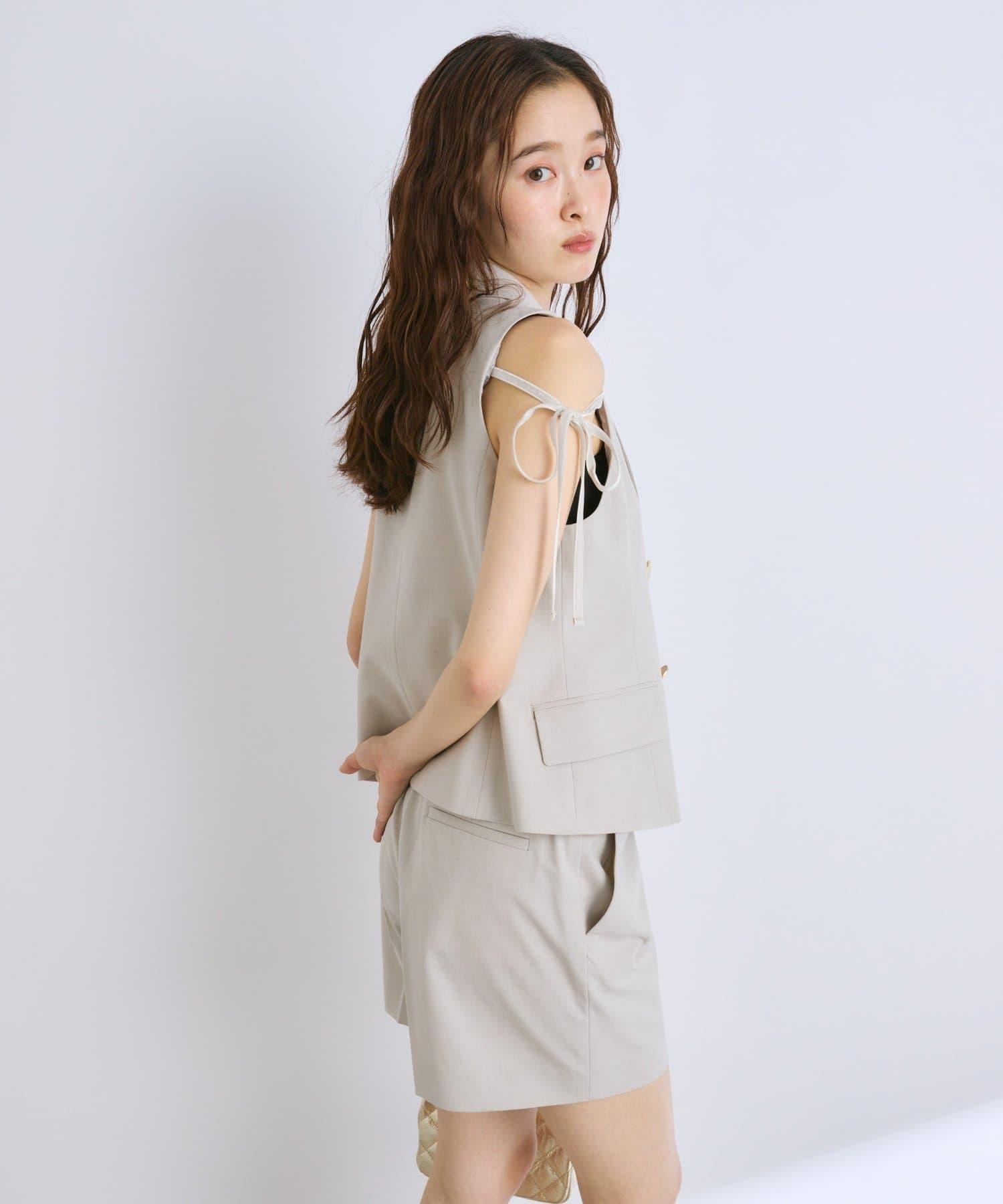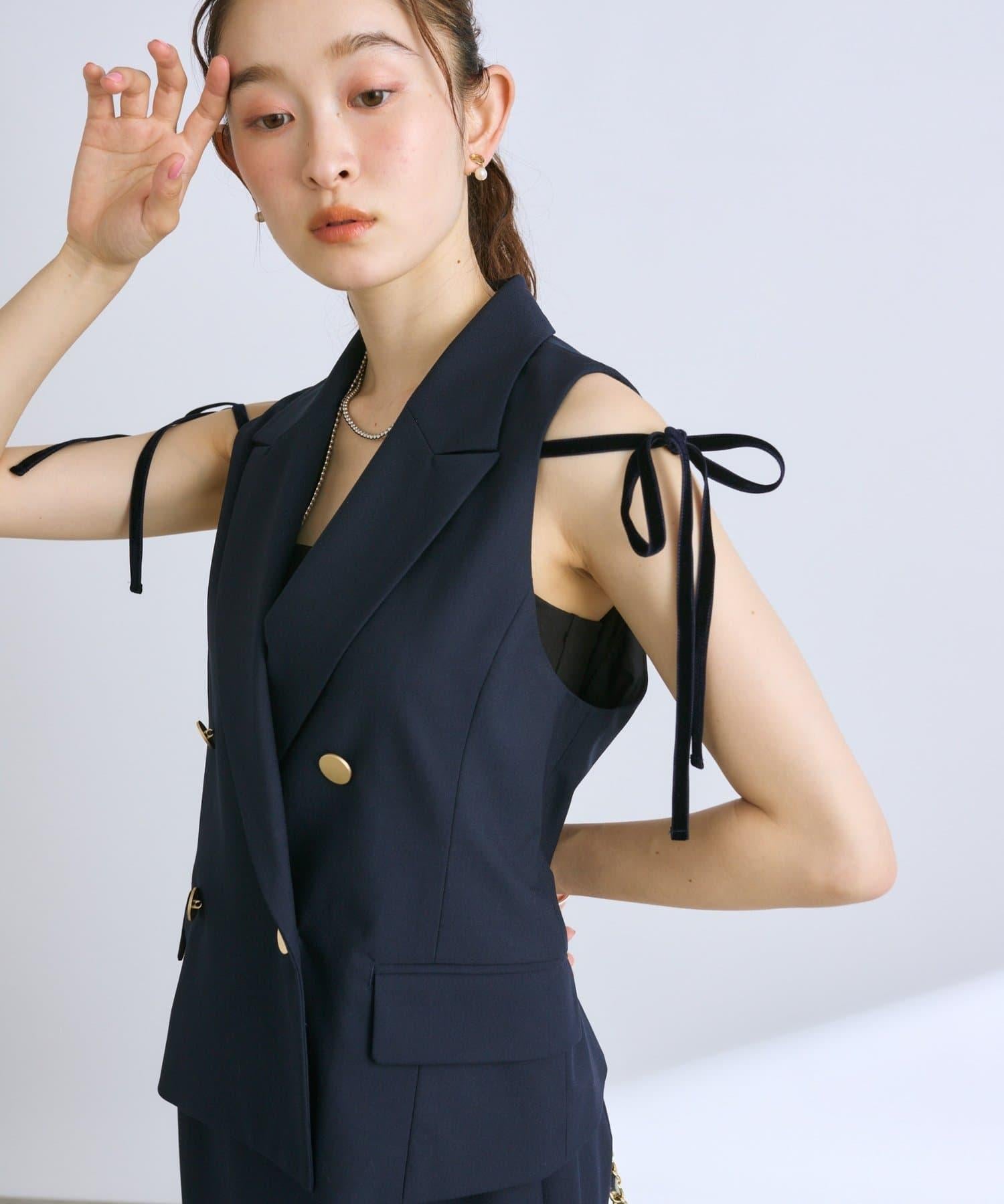 兩肩的絲帶起到了微妙的點綴作用、