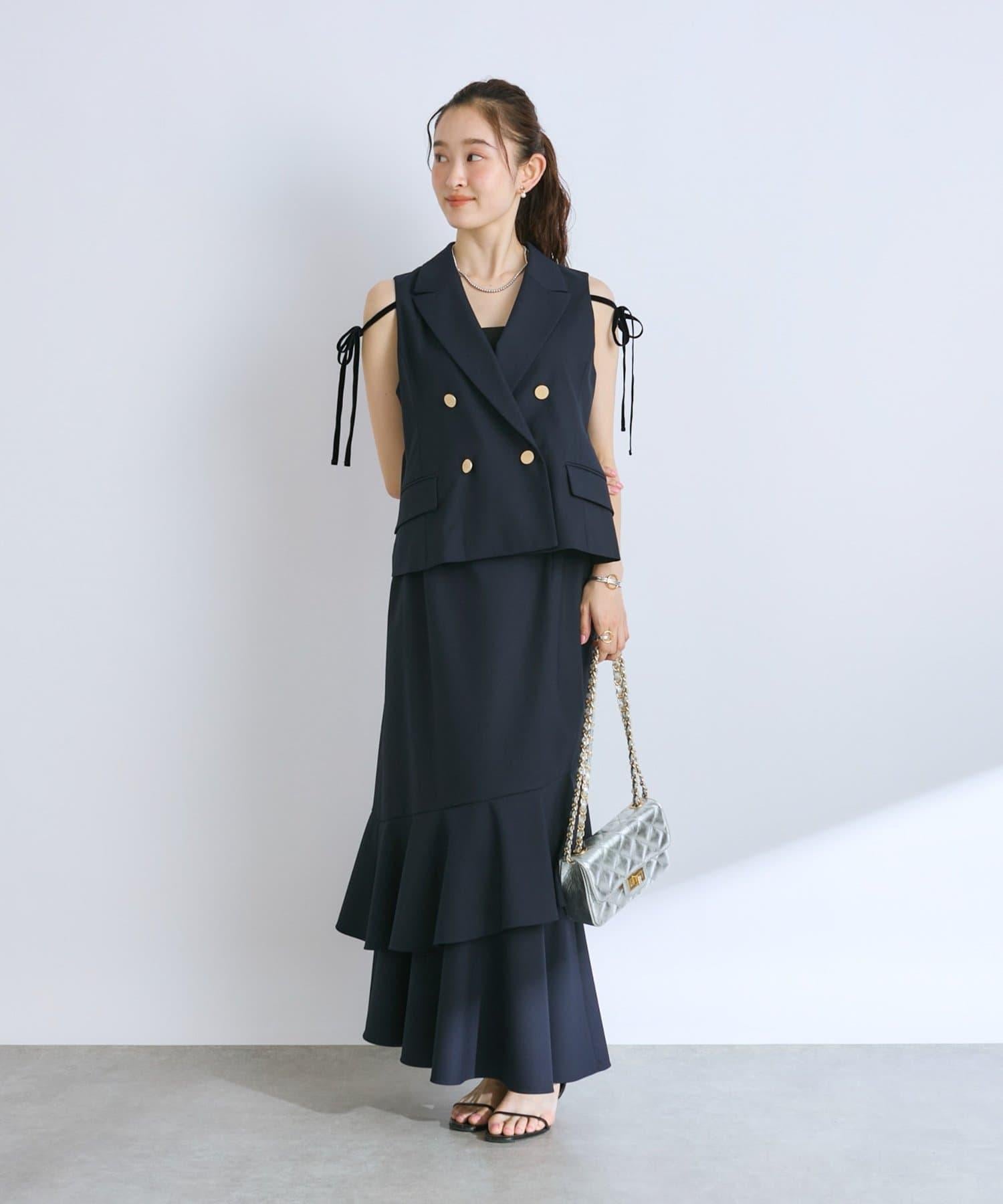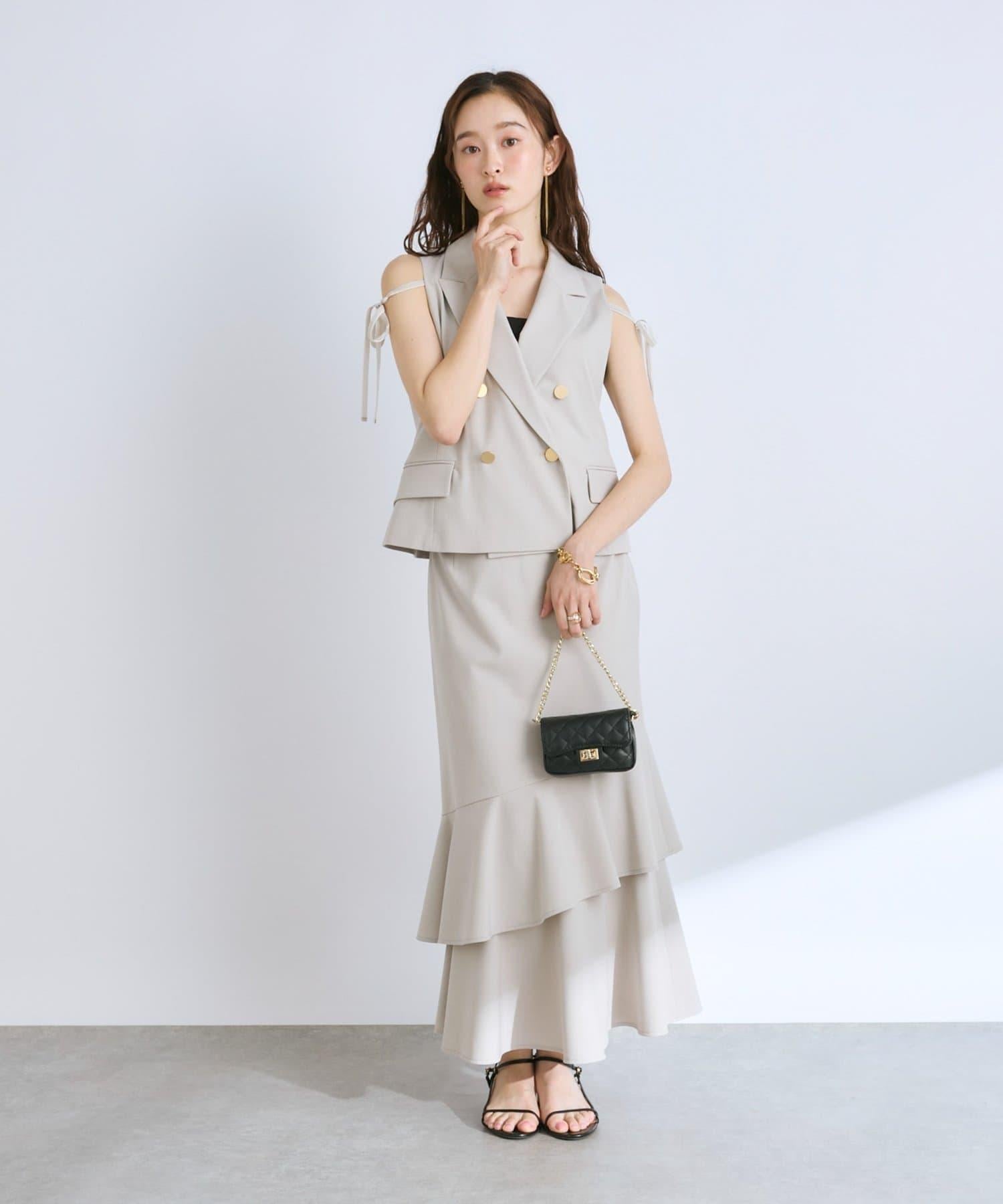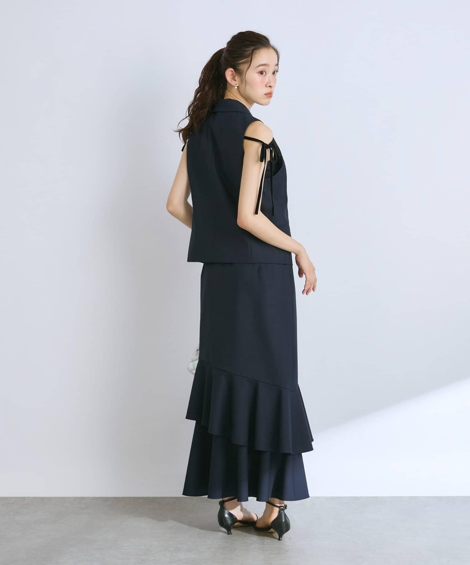 兩肩的絲帶起到了微妙的點綴作用、