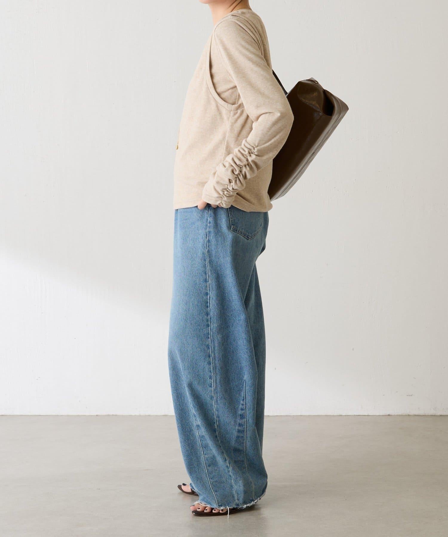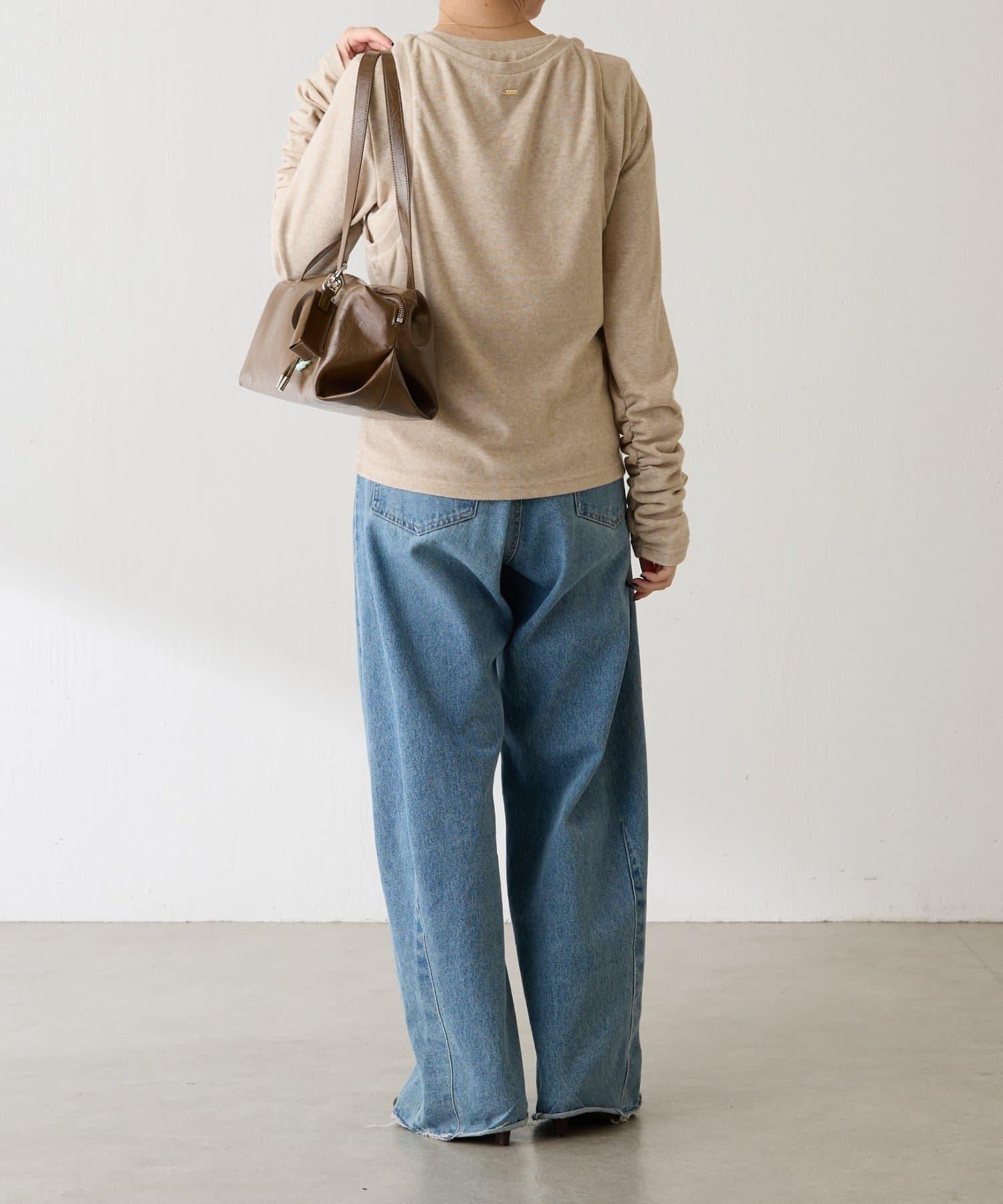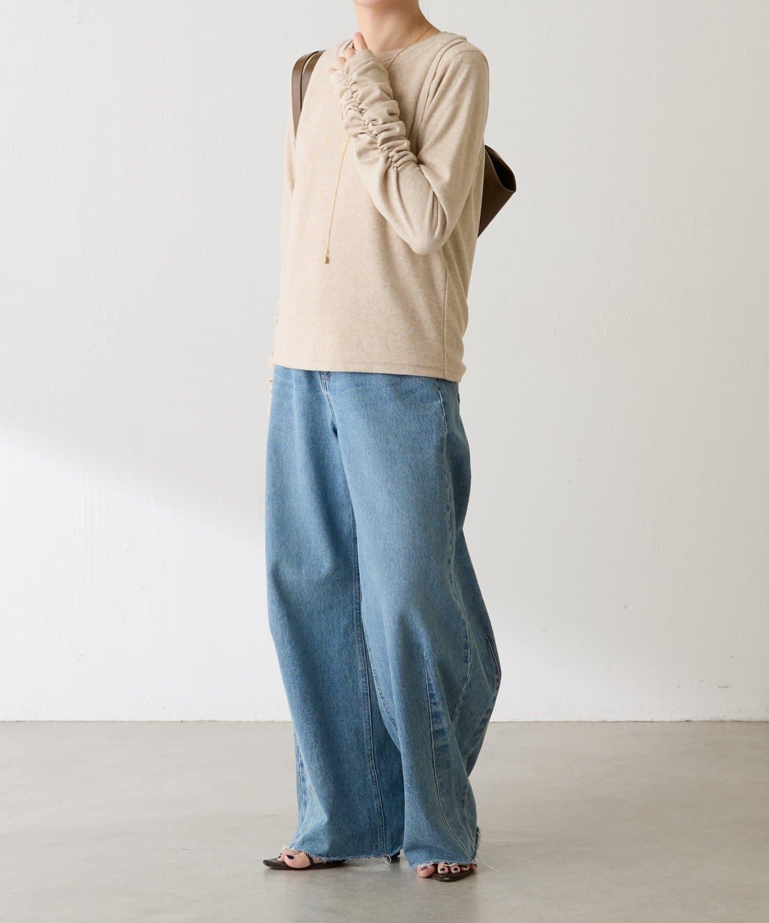 長袖 T 恤的袖子很長,袖口有鑲邊,疊起來很可愛。
