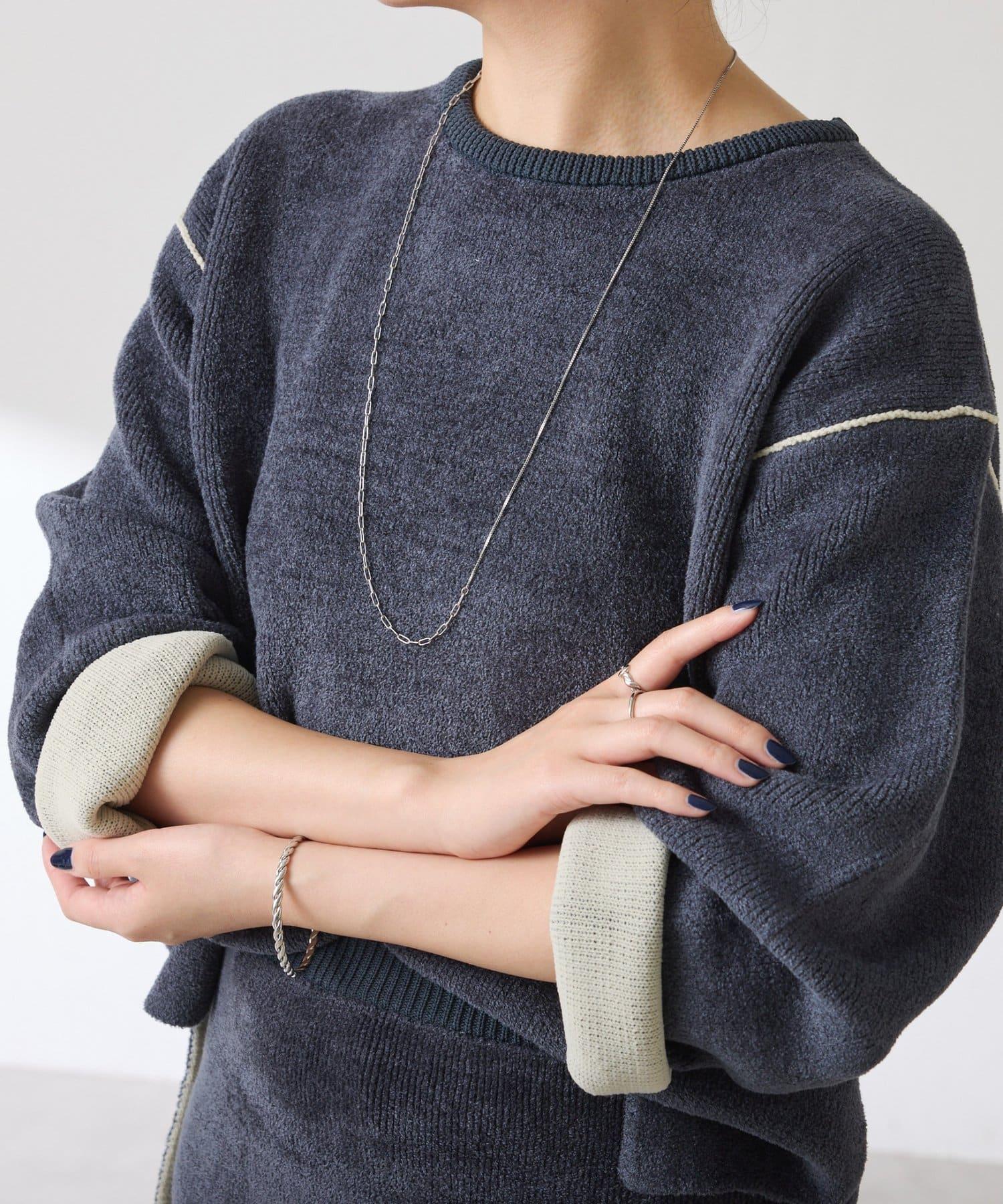 針織衫採用了雙層編織,給人一種彈性十足的感覺,而且不會勾勒出身體的曲線。