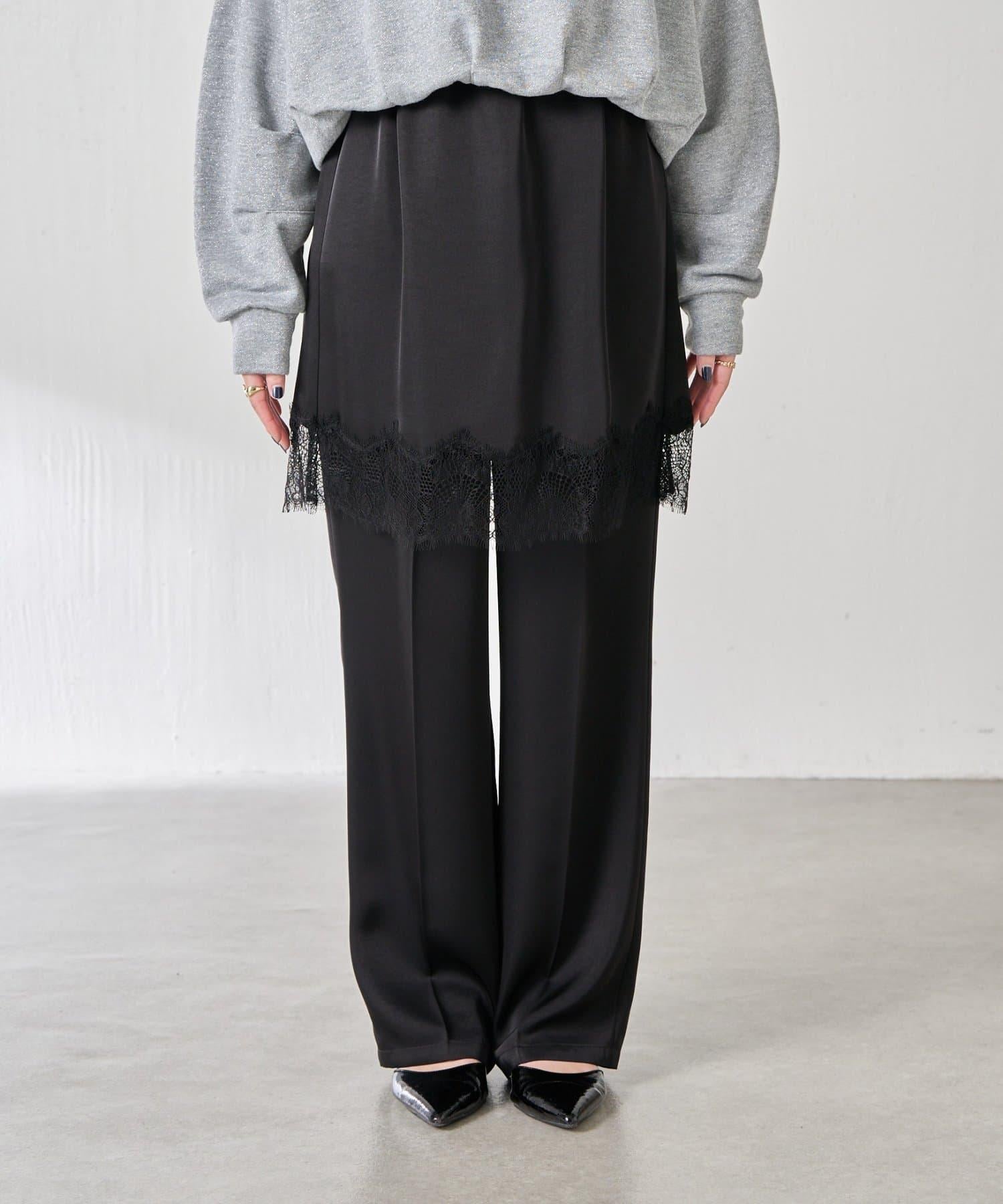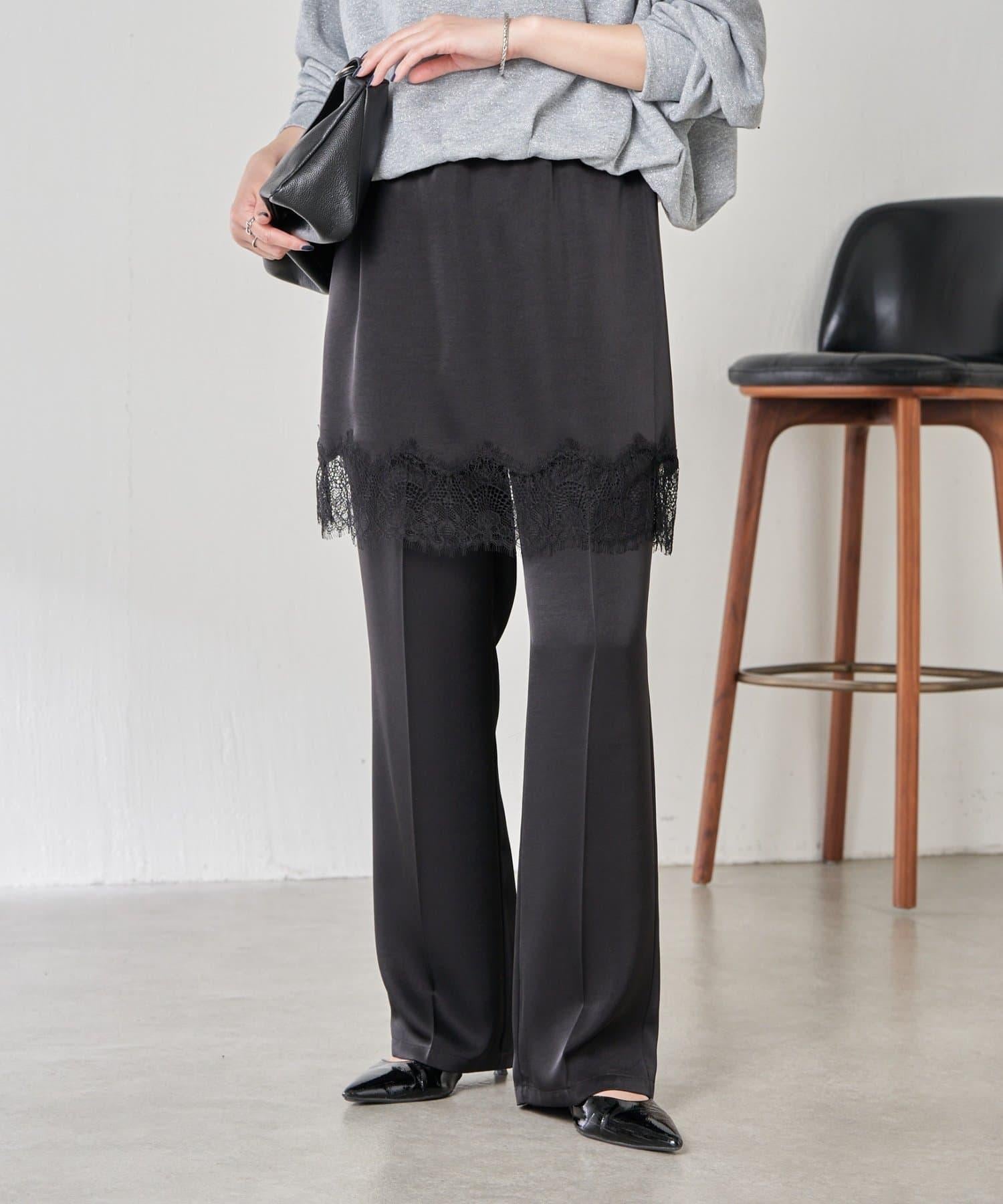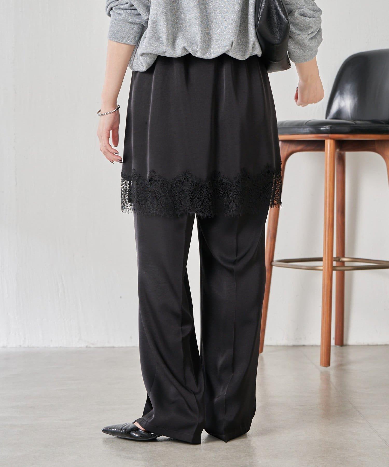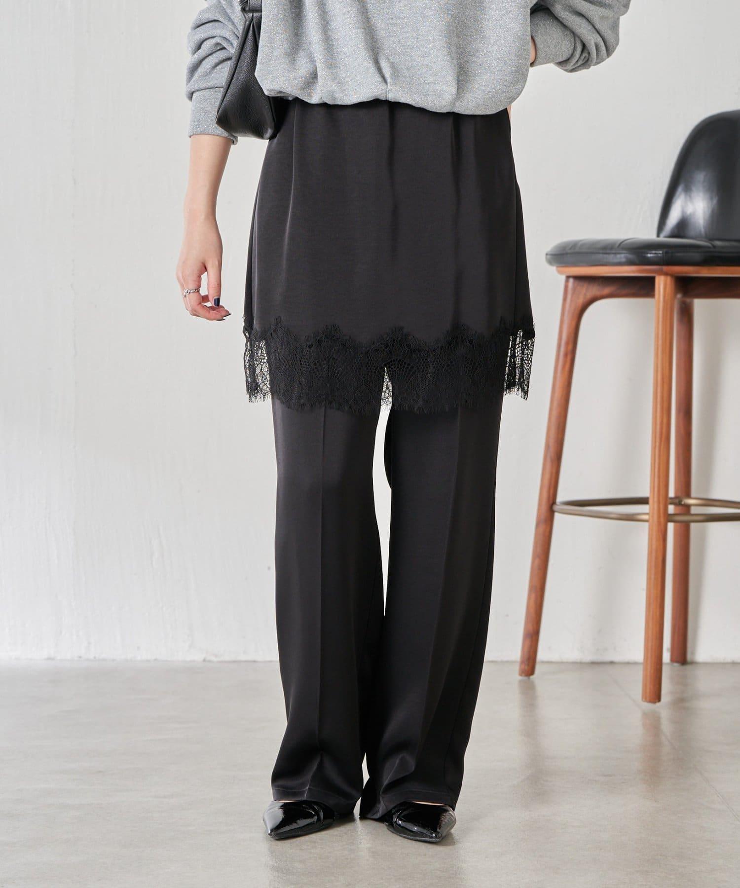 預約商品【套裝商品】緞面蕾絲疊穿長褲/疊穿