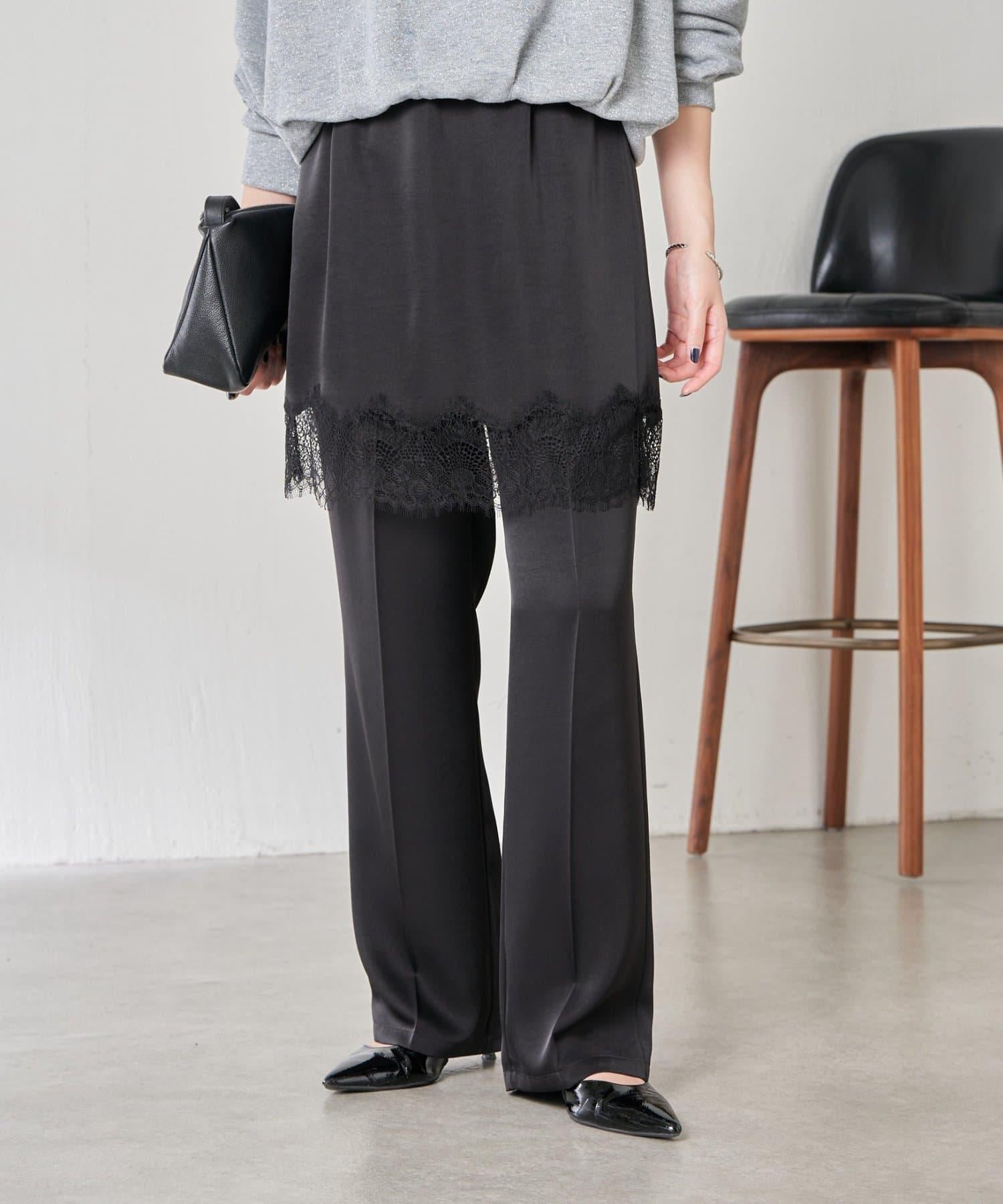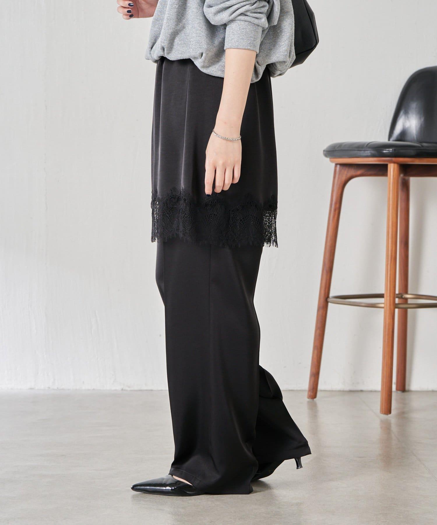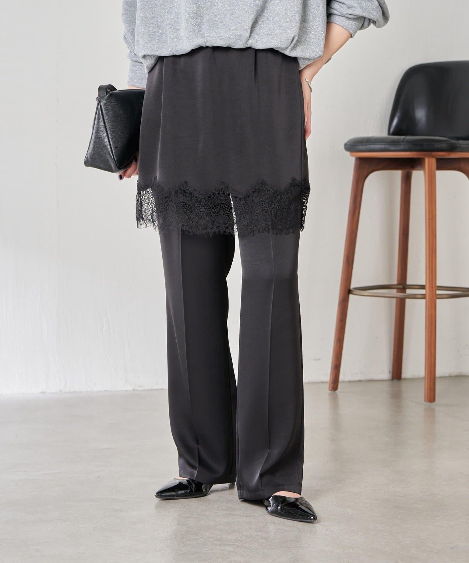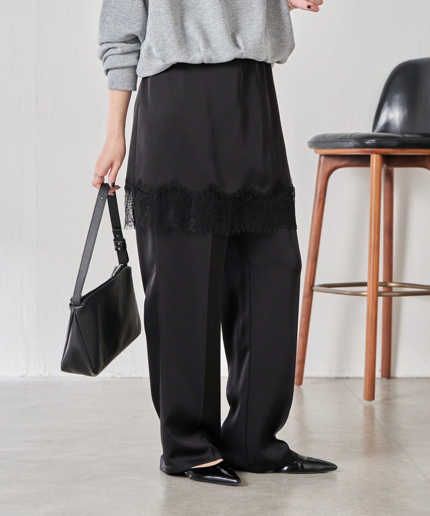 預約商品【套裝商品】緞面蕾絲疊穿長褲/疊穿