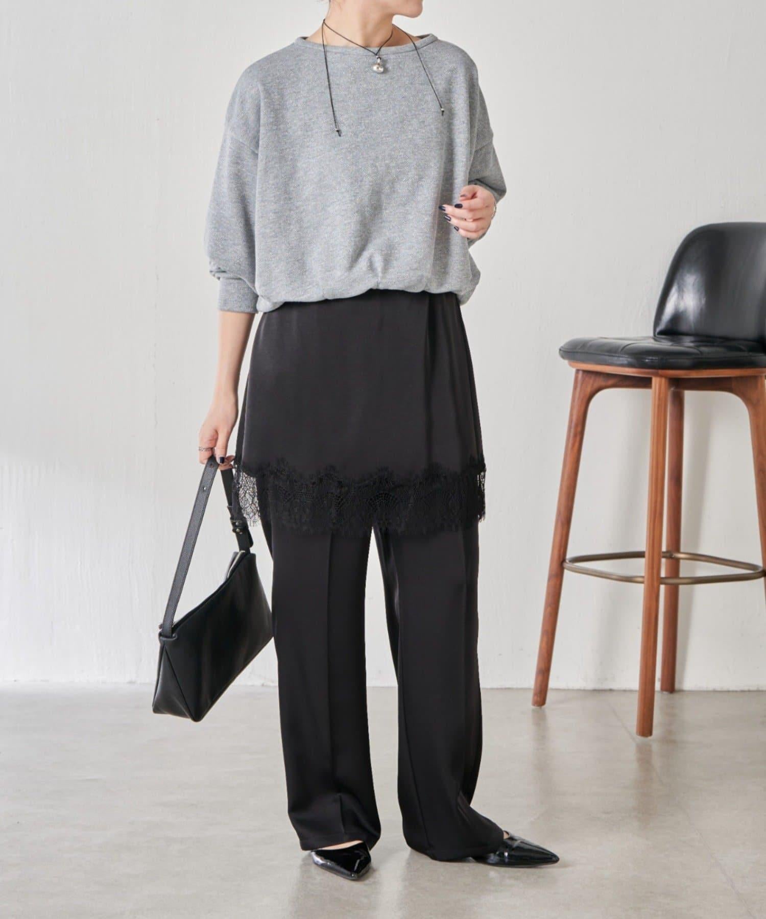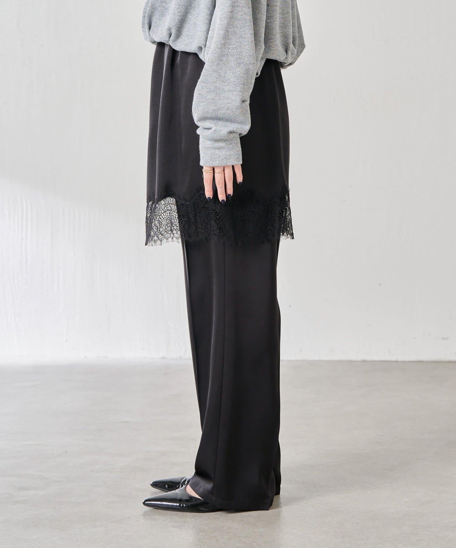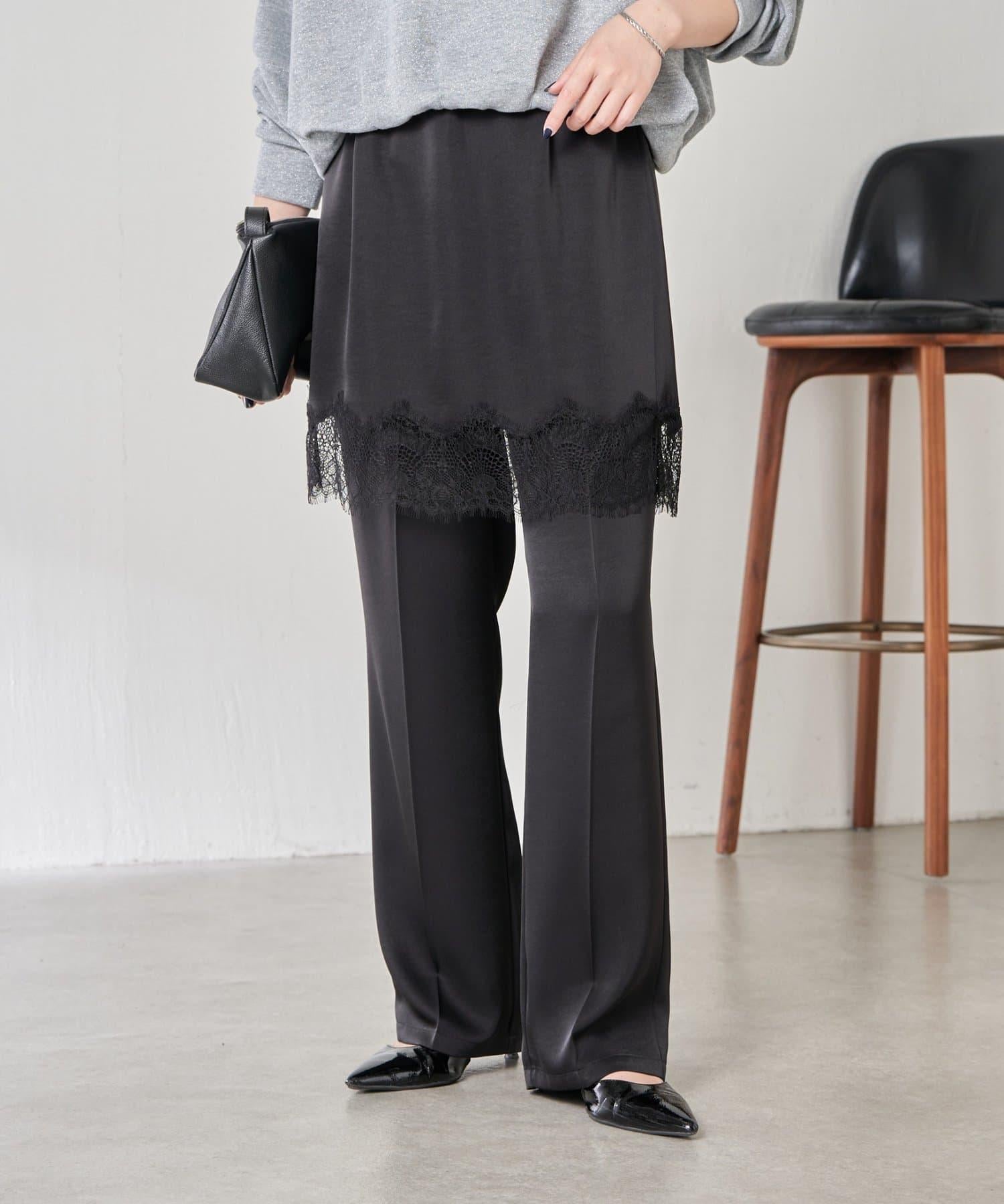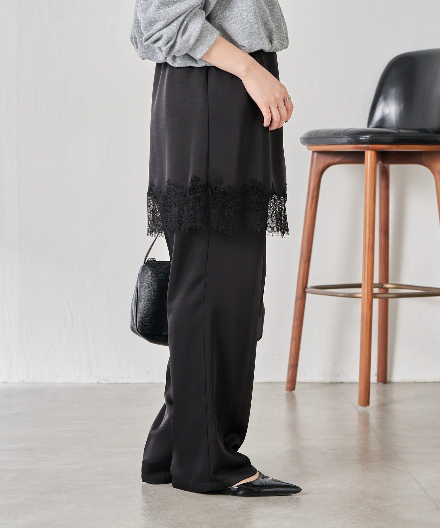 預約商品【套裝商品】緞面蕾絲疊穿長褲/疊穿