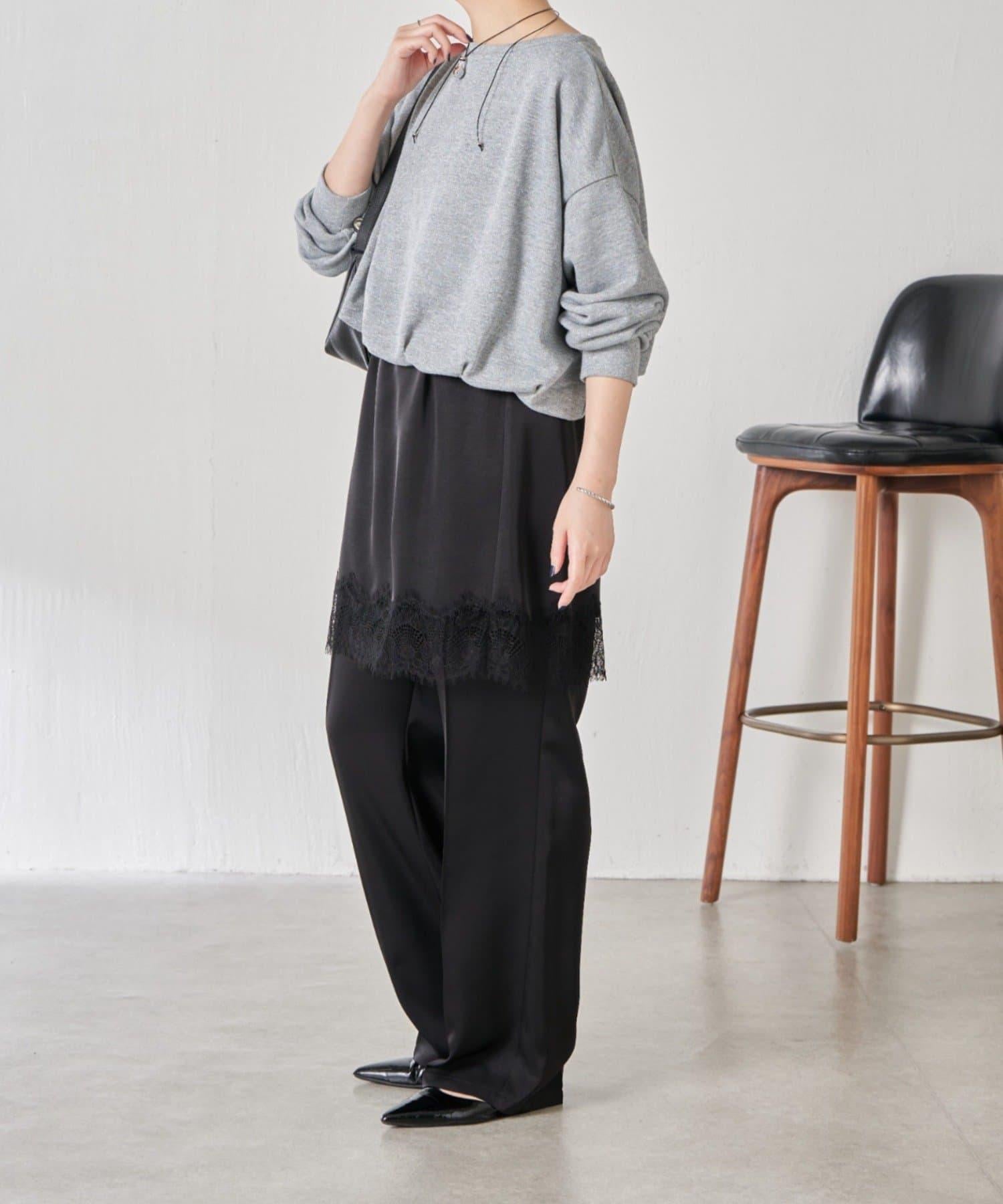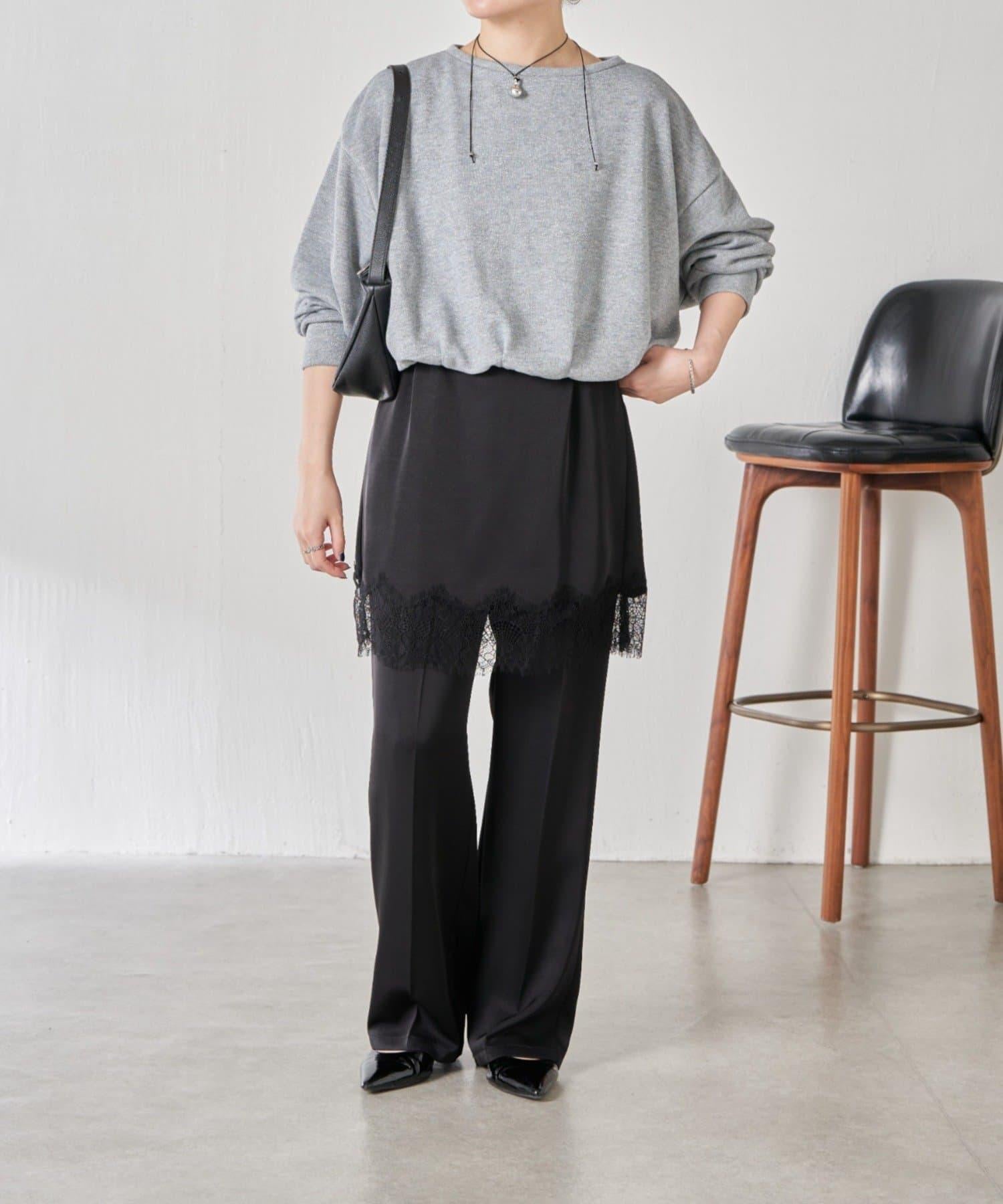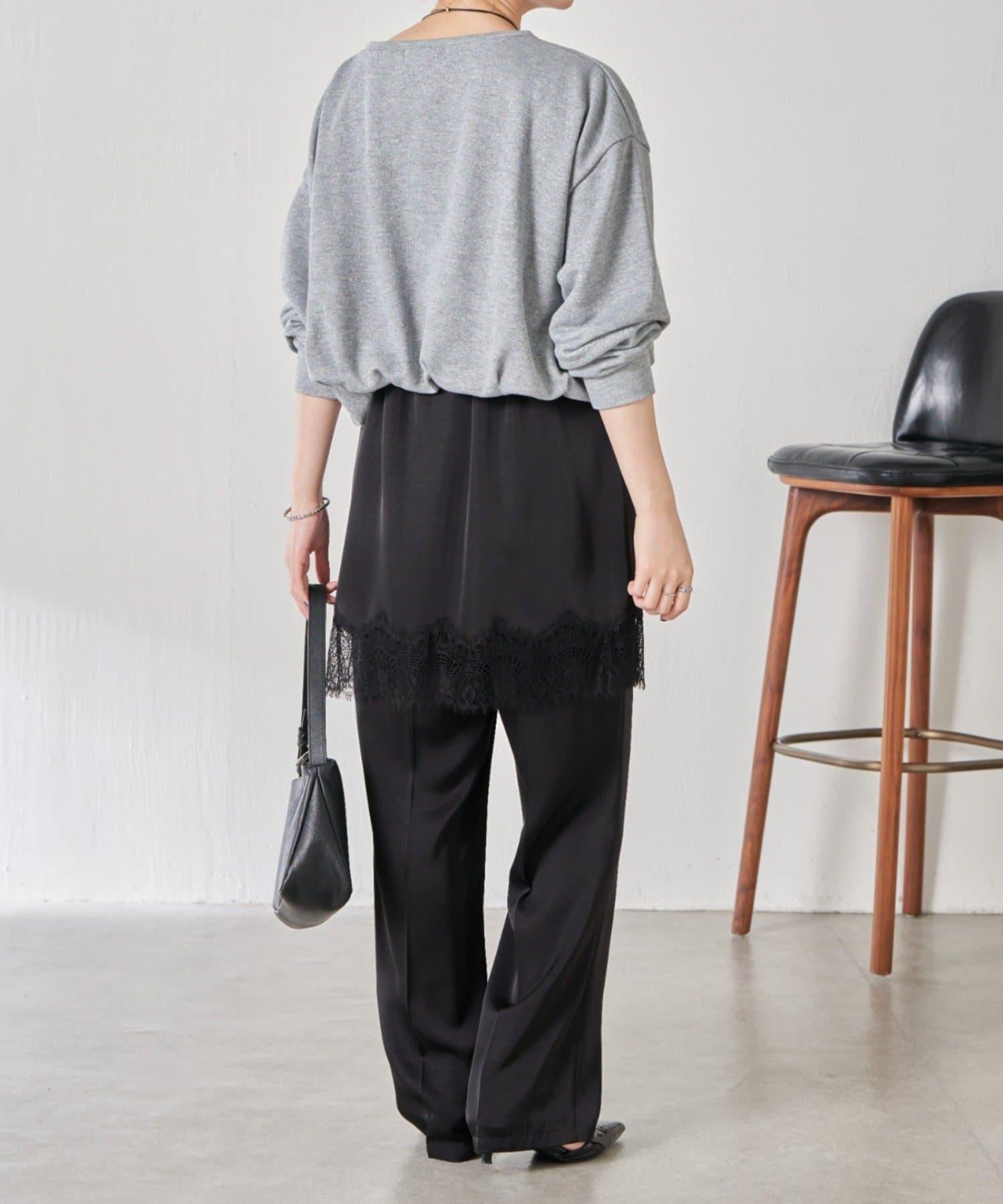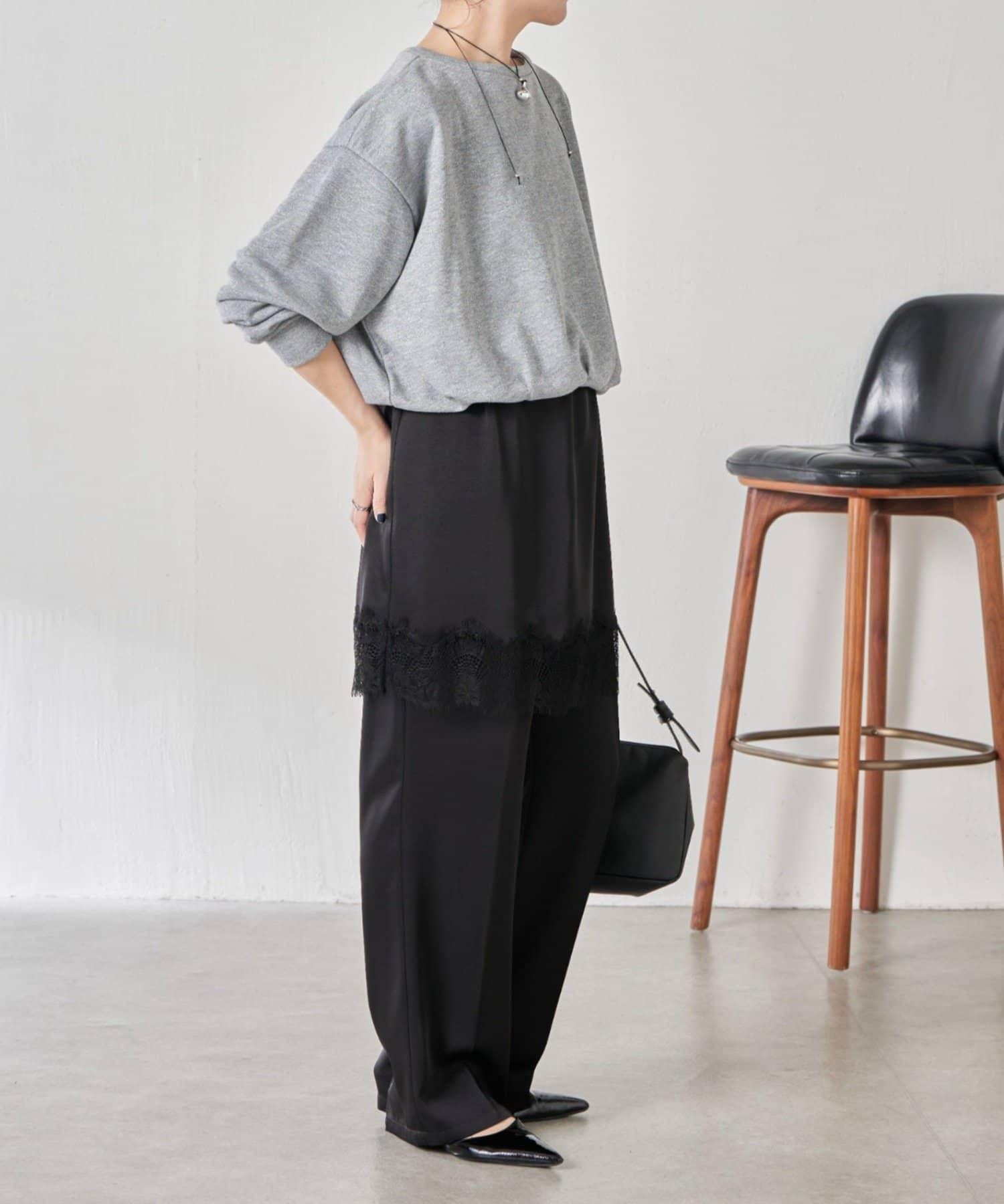 預約商品【套裝商品】緞面蕾絲疊穿長褲/疊穿