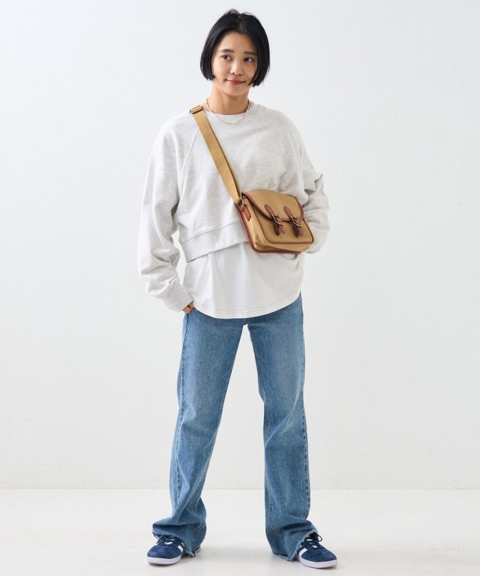 運動衫的長度較短,雖然是基本款設計,但很容易平衡搭配造型,不會過於繁瑣。