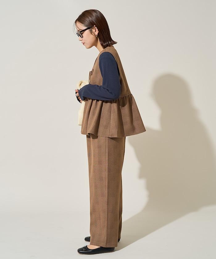 由於可以根據搭配的內搭調整季節感,因此是一款可以長期穿著的套裝。