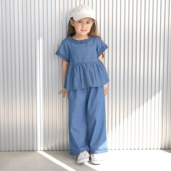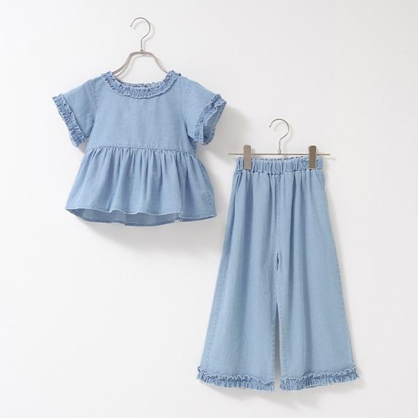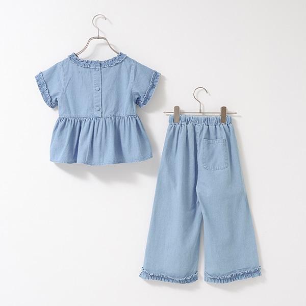 【套裝】荷葉邊襯衫&荷葉邊闊腿褲